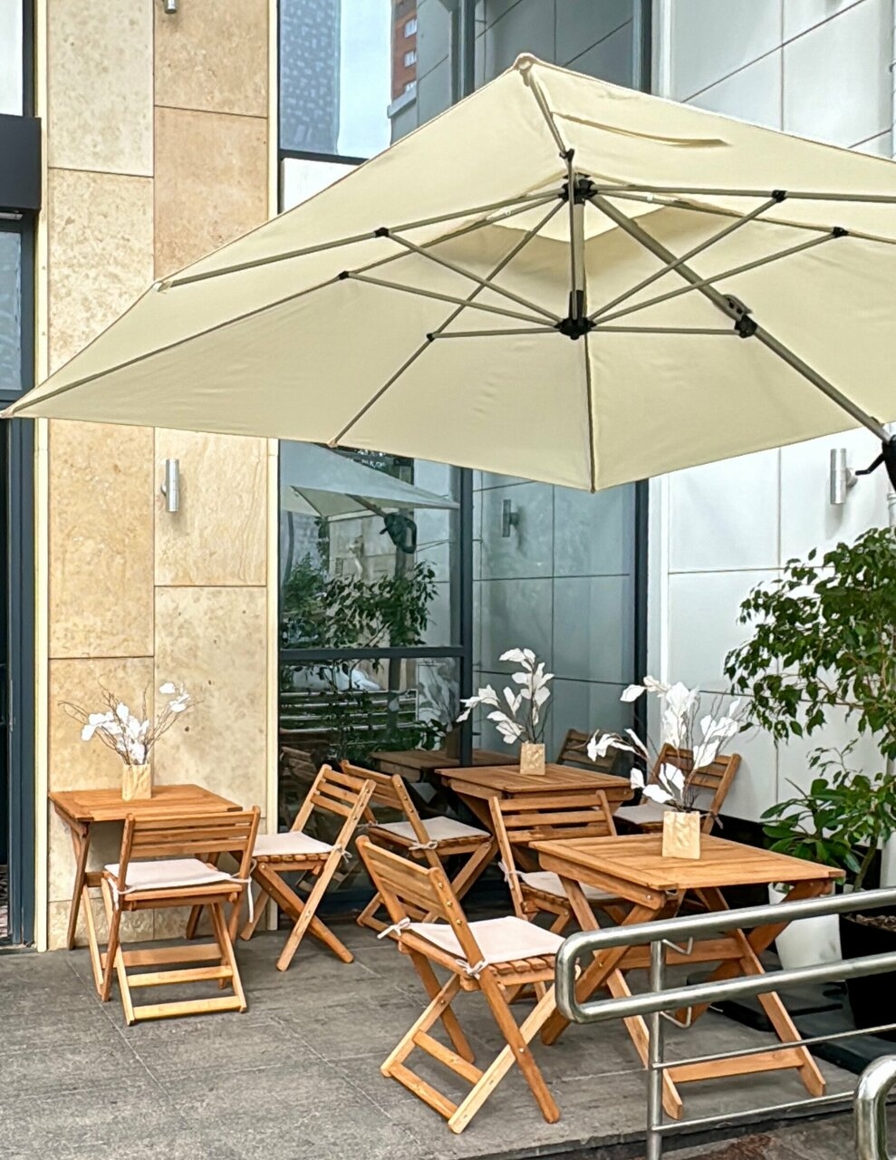 Еда и напитки. В меню — свежая выпечка: французские круассаны, ремесленный хлеб и торты собственного производства. Также представлены сбалансированные завтраки, мясные блюда с овощами-гриль, салаты с морепродуктами. Вечером подают немецкое пиво и сидр с закусками. Карта напитков включают классический кофе и авторские комбинации чаев с ягодами и травами.