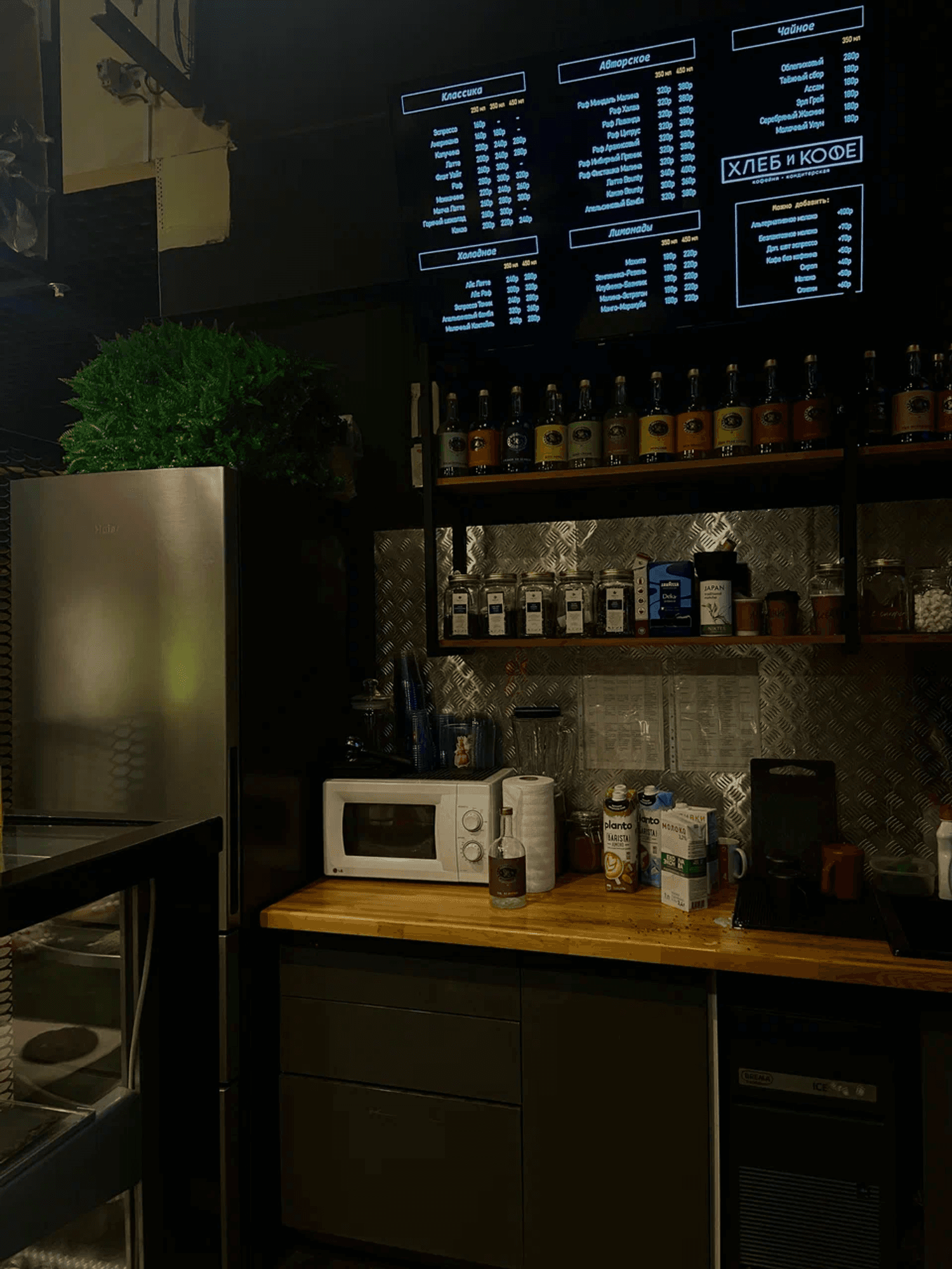 Еда и напитки. В меню — вся классика кофейных напитков: от насыщенного эспрессо до капучино и латте. К ним идеально подходит свежая выпечка собственного производства: душистый хлеб, сладкие и соленые булочки, которые можно взять с собой или насладиться на месте.