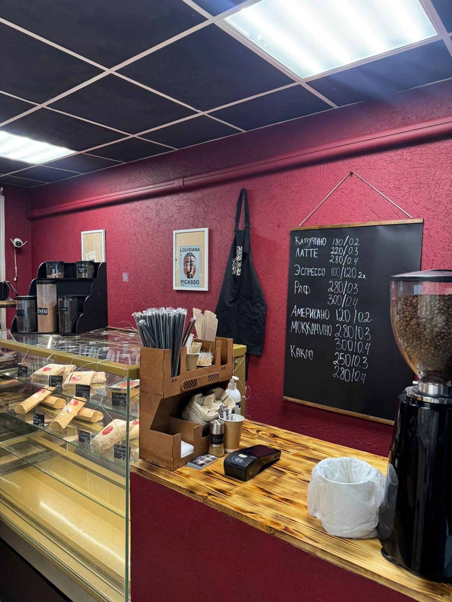 Еда и напитки. В меню — кофейная классика: эспрессо, капучино, латте, раф и американо, мокко. Из еды предлагают сэндвич с тунцом и ветчиной, блины с нутеллой, трубочки со сгущенкой, шоколадный или банановый пудинг и канеле с карамелью.