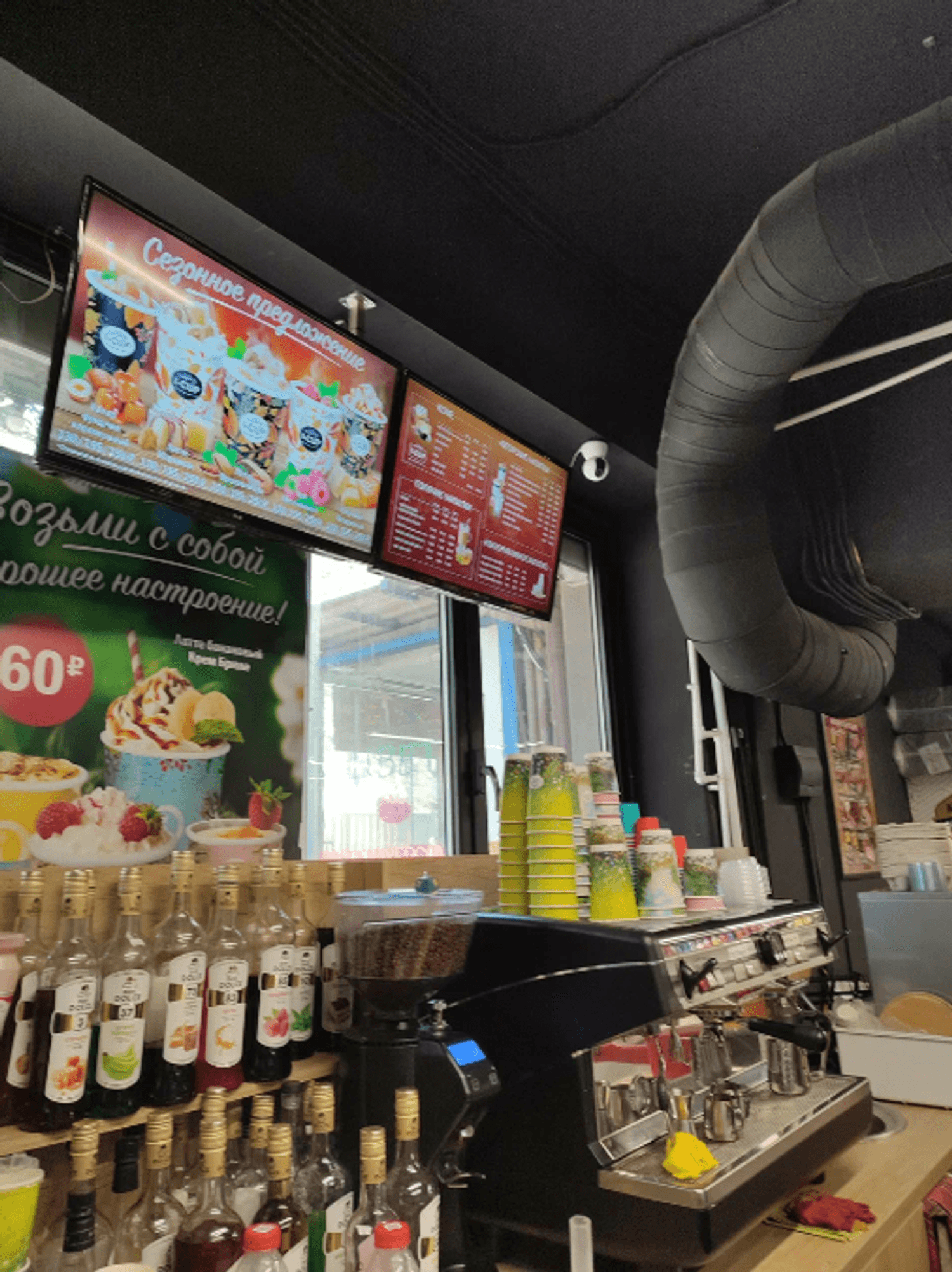 Еда и напитки. В меню — классический эспрессо, капучино, латте и варианты на альтернативном молоке. К напиткам предлагают свежую выпечку: круассаны, маффины и слойки.