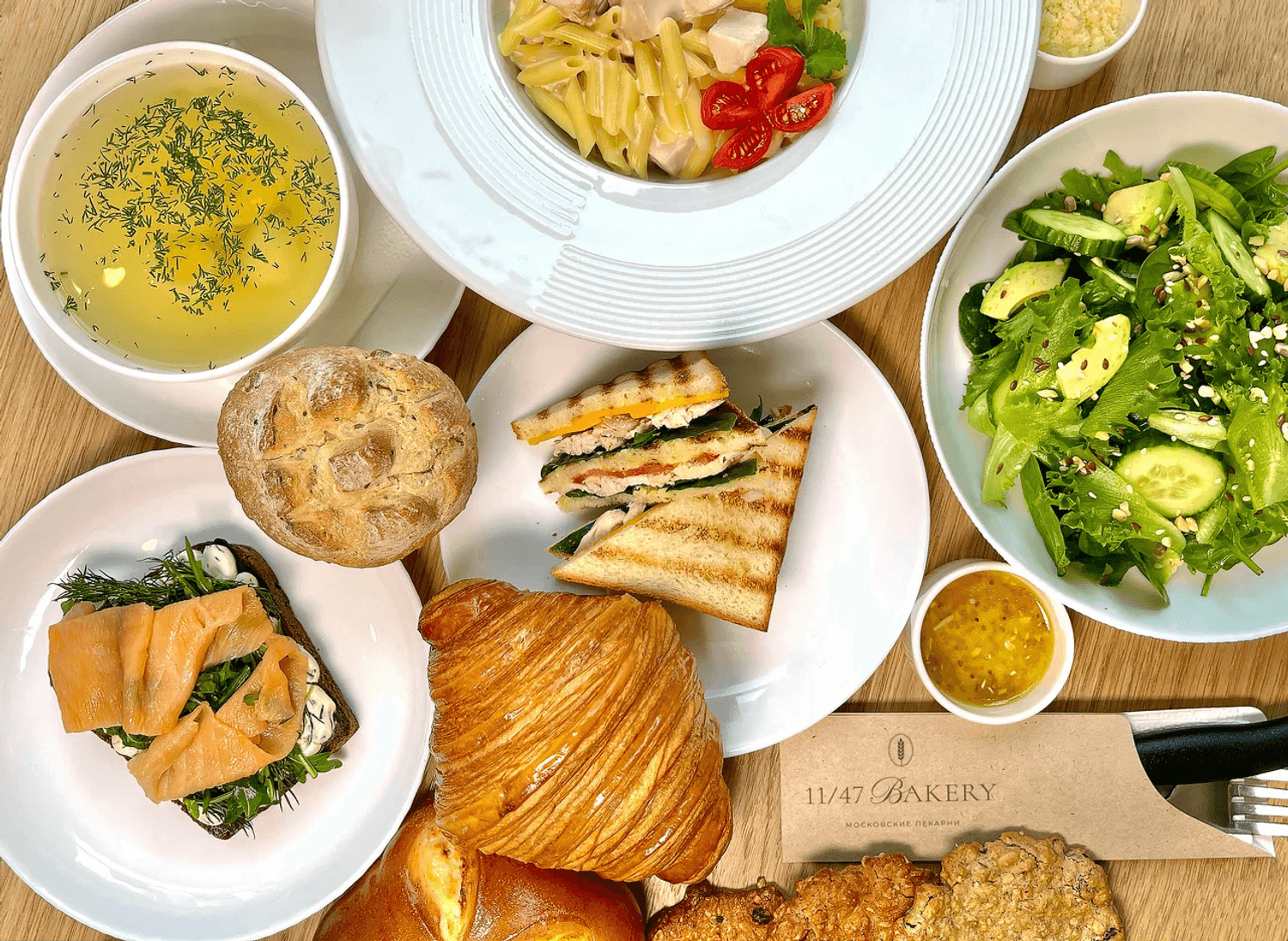 «11/47 Bakery» по адресу ул. Мосфильмовская, 88к2, стр. 7 — пекарня с завтраками и разнообразием сэндвичей.