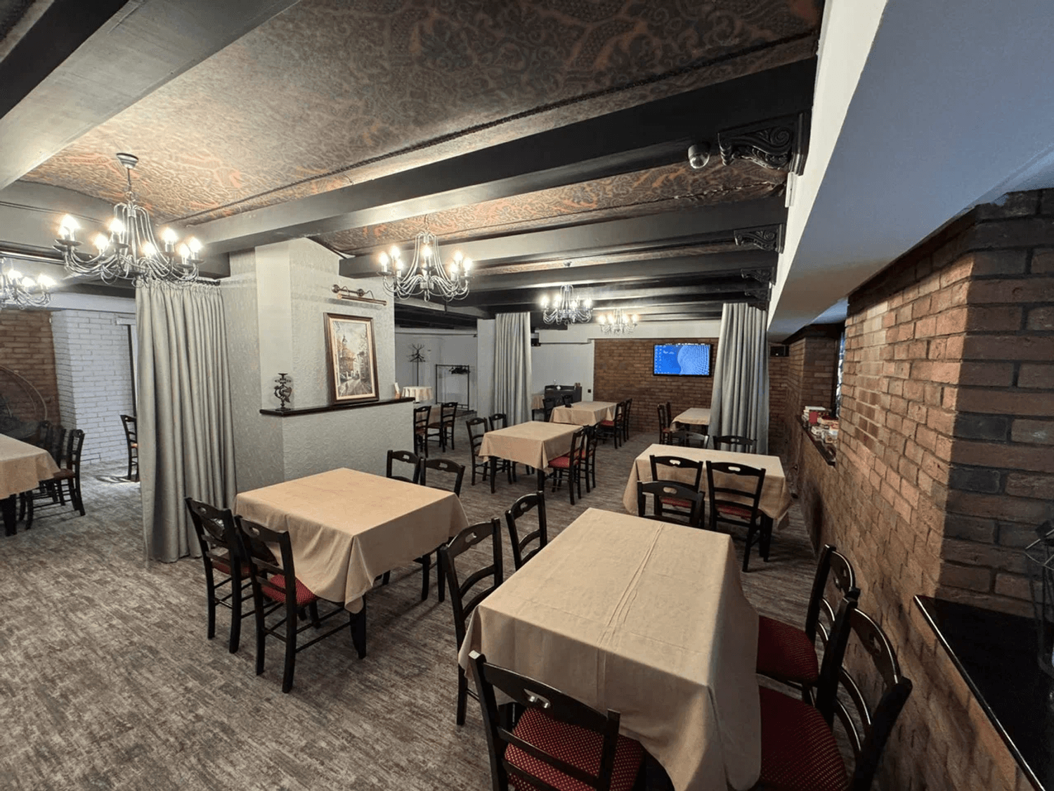 Атмосфера. Интерьер выполнен в спокойных оттенках, с мягким освещением, создающим атмосферу уюта. Пространство разделено на несколько залов, что позволяет выбрать место в зависимости от настроения — для романтического ужина или веселого вечера с друзьями. Кстати, здесь можно сыграть в настольные игры или «Мафию».