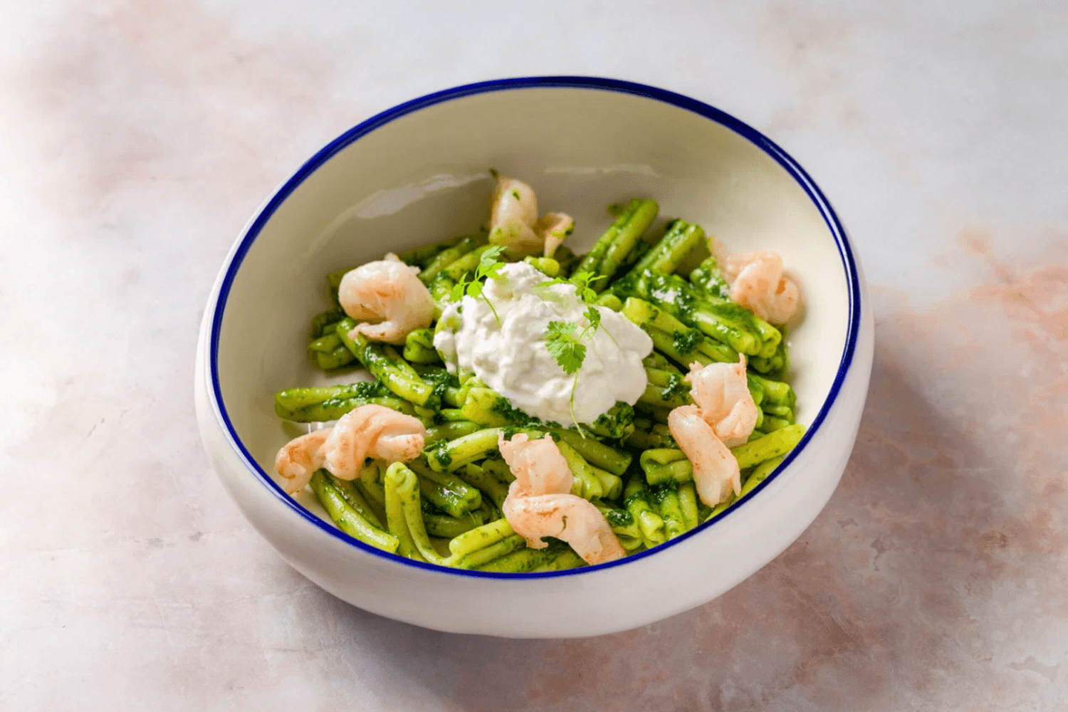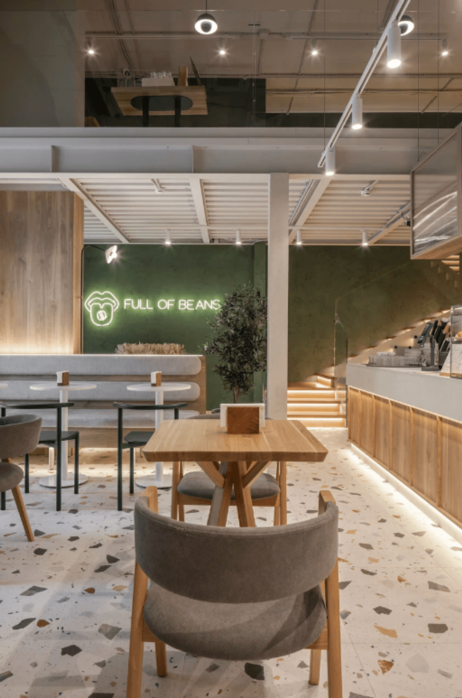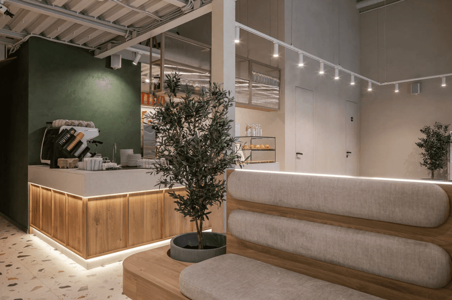 Еда и напитки. В меню — блюда на весь день: завтраки в виде кабачковых оладьев с икрой и страчателлой, вафлей с креветками и рисовой каши с чиа, шоколадом и бананом. Также предлагают пасту с креветками в сливочном соусе с песто и куриная грудка с соусом умами. На десерт заказывают панкейки: с горячим шоколадом и клубникой или английским соусом и свежими ягодами.
