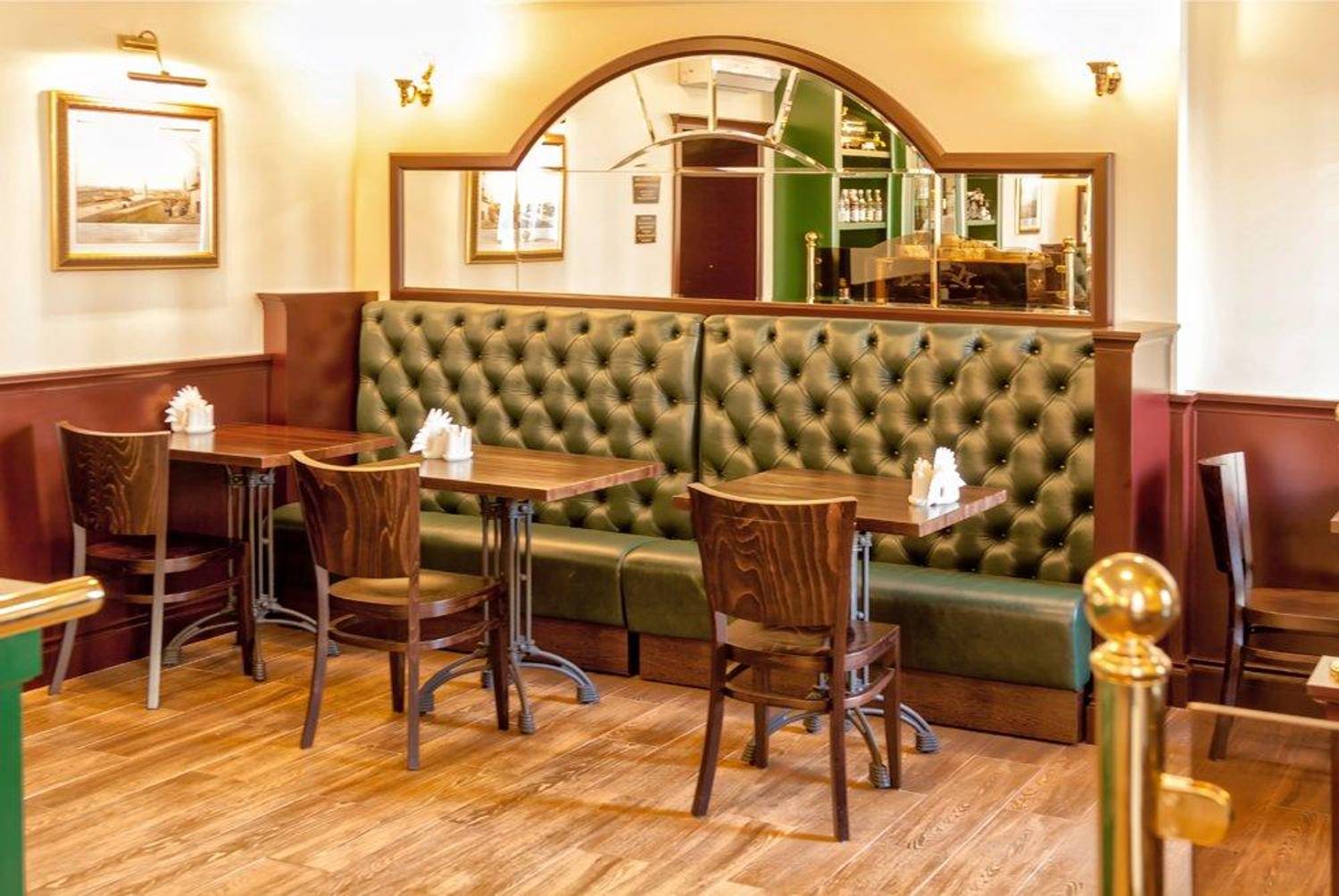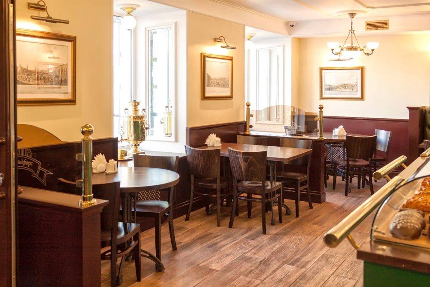 Атмосфера. Здесь воссоздали атмосферу XX века: венские стулья, ретро-буфеты, матовые стеклянные элементы и черно-белые фотографии на стенах создают камерную обстановку. В центре внимания — портрет генерала Линдфорса.