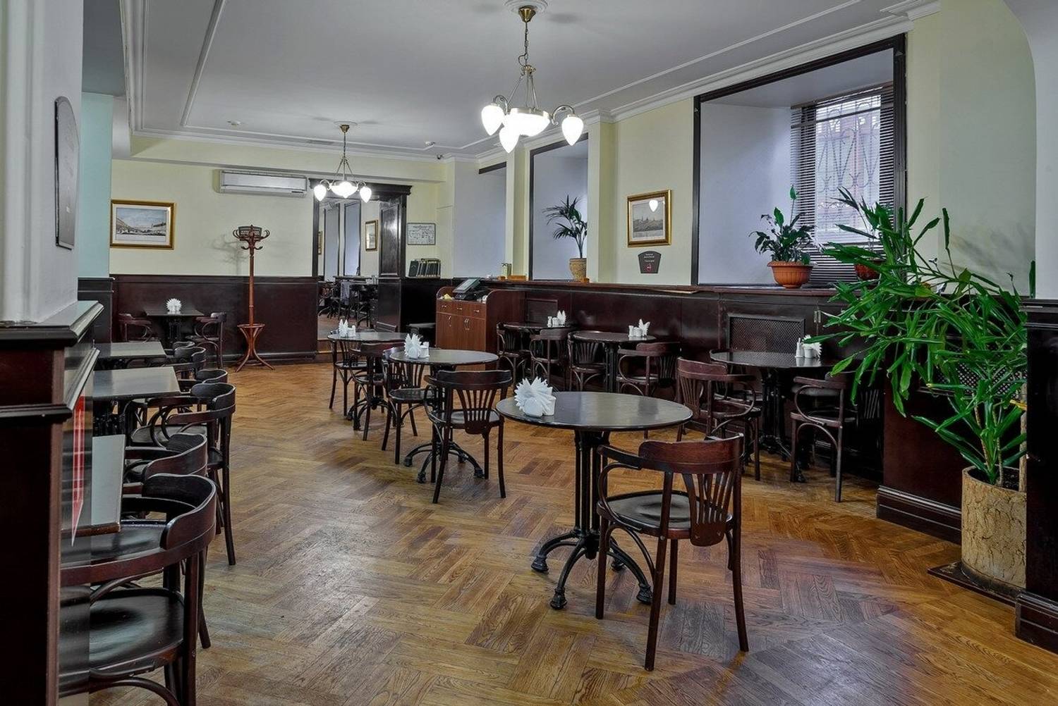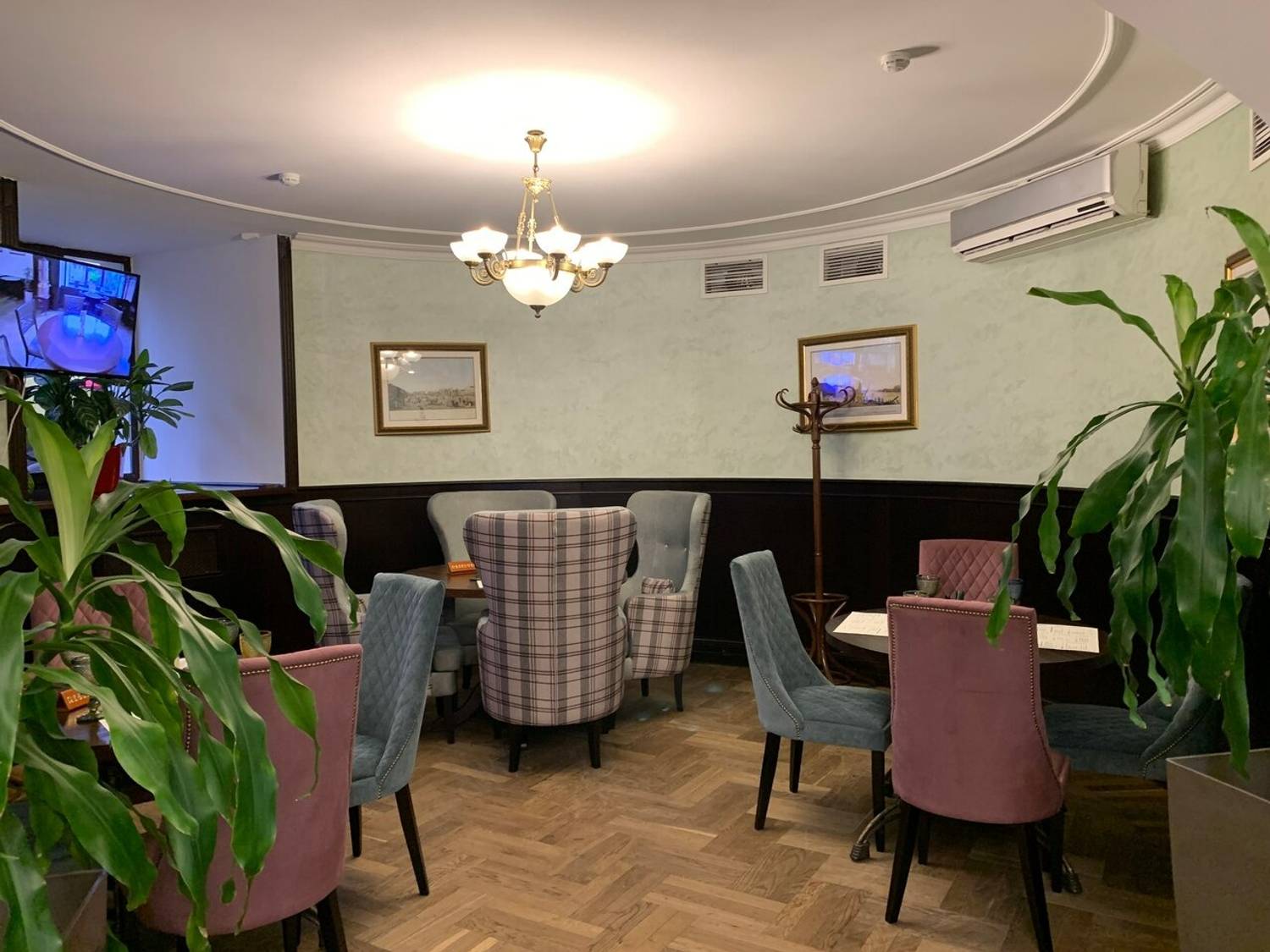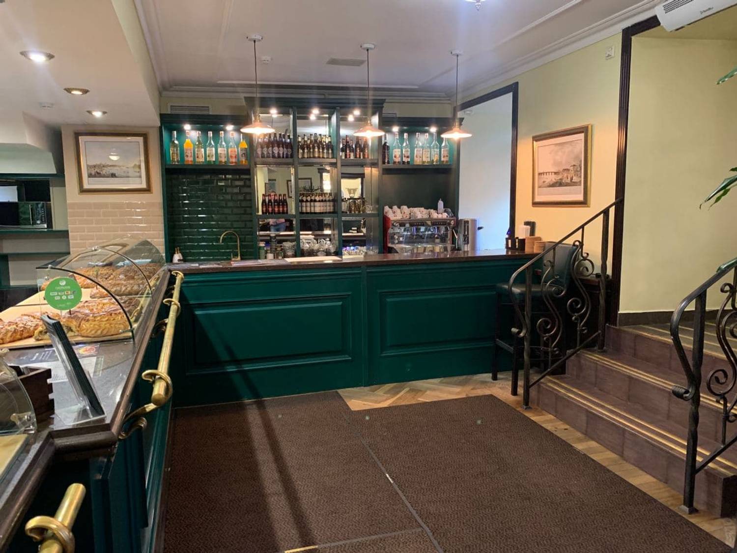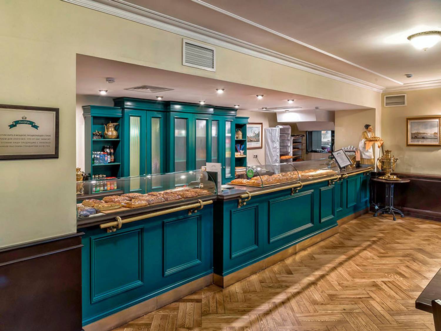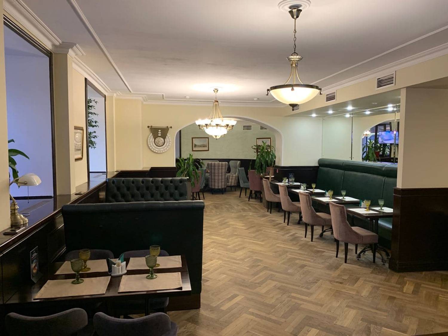 Атмосфера. Зал напоминает открытку из прошлого: ретро-буфеты, венские стулья и матовое стекло. Центром композиции становится портрет генерала Линдфорса, окружённый чёрно-белыми фотографиями в деревянных рамах. Изумрудная барная стойка и небольшая лестница, ведущая в обеденную зону, добавляют пространству характерный шарм.