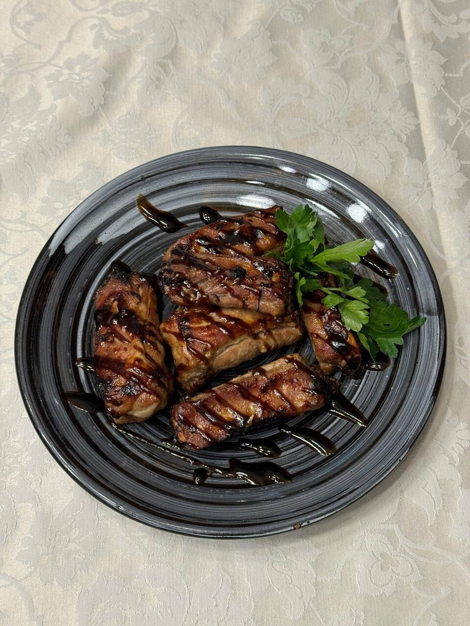 Еда и напитки. В меню — блюда грузинской (шашлыки), русской (пельмени) и европейской (бургеры, пицца) кухни. Доступны бизнес-ланчи, а в бар предлагают классические коктейли, вино и пиво.