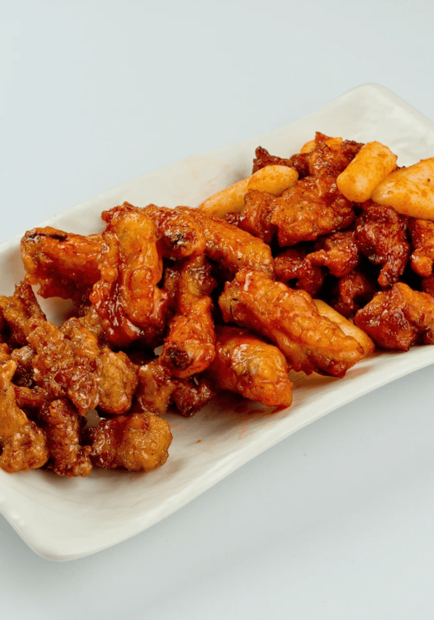 Еда и напитки. В меню — шашлычок с токпокки и сыром, ориджин дог, свободный корн-дог, чизу рамен, онигири с тунцом, чикен поп-корн, кимпаб с тунцом. Также стоит попробовать фруктовый сандо с клубникой и мандарином или клубникой и бананом. Среди напитков выбор баблти: жженая карамель, латте тегуанинь, клубника-банан, алоэ, матча латте.