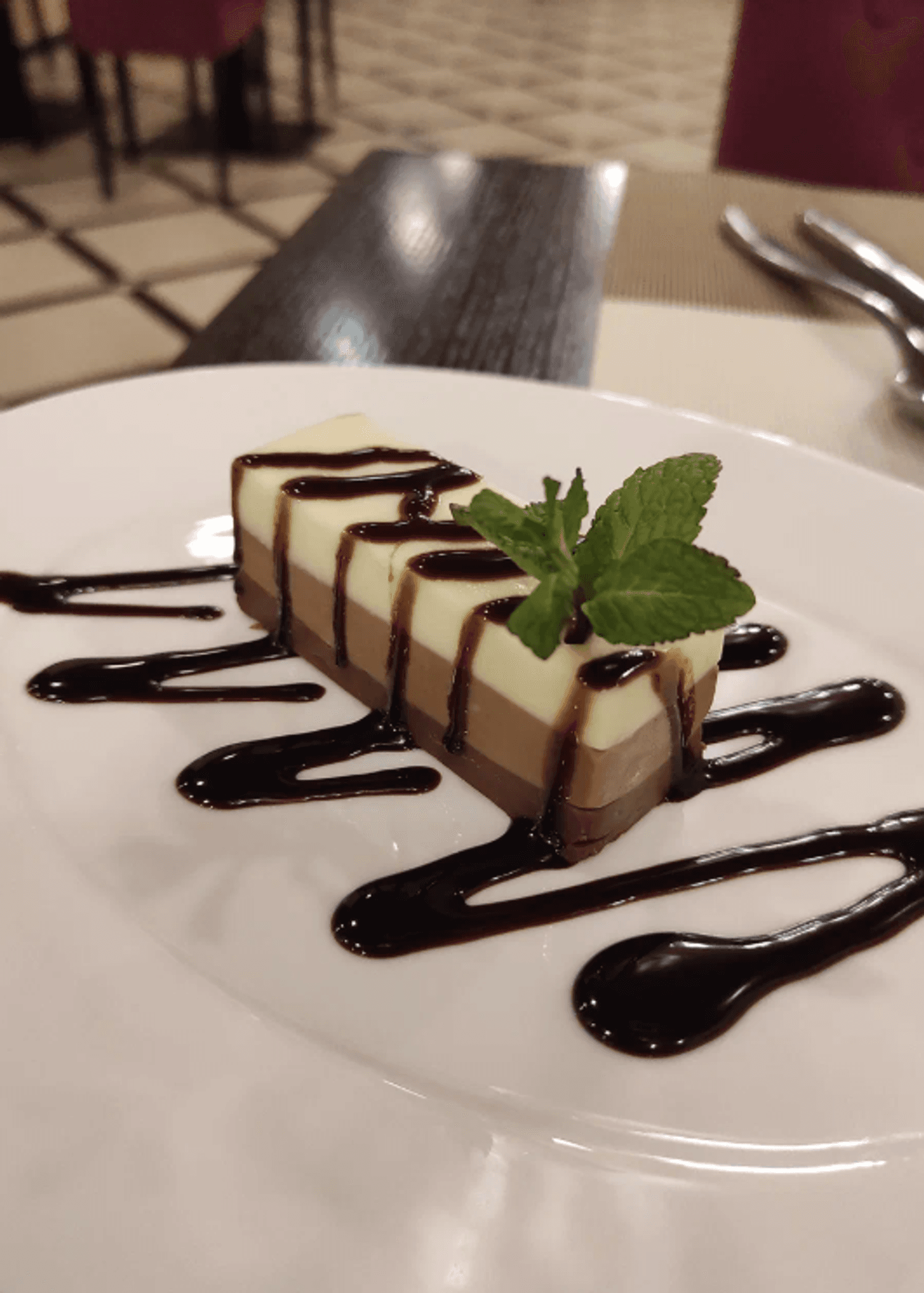 Еда и напитки. В меню — классические европейские блюда: салаты, горячее и позиции с гриля. В будни доступны бизнес-ланчи, а кухня в основном делает упор на узнаваемые сочетания продуктов без излишней сложности.