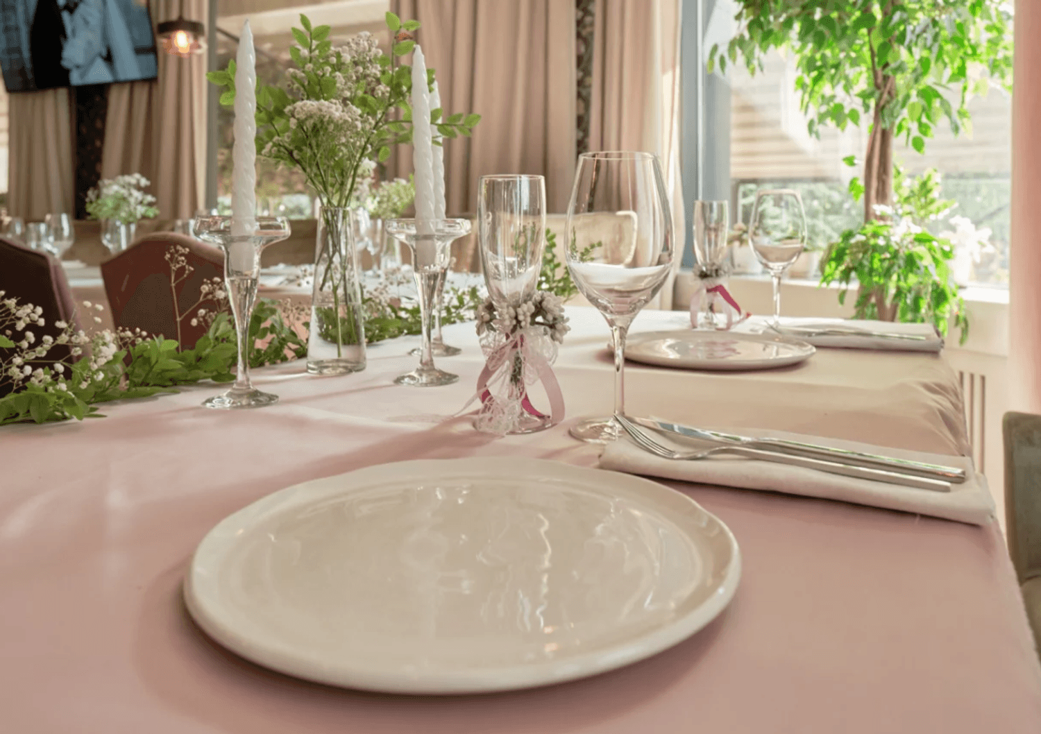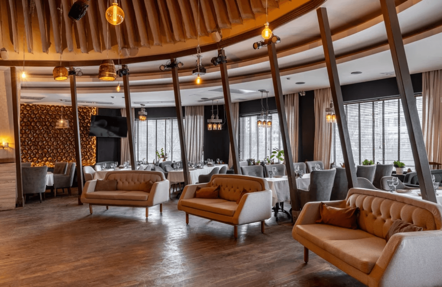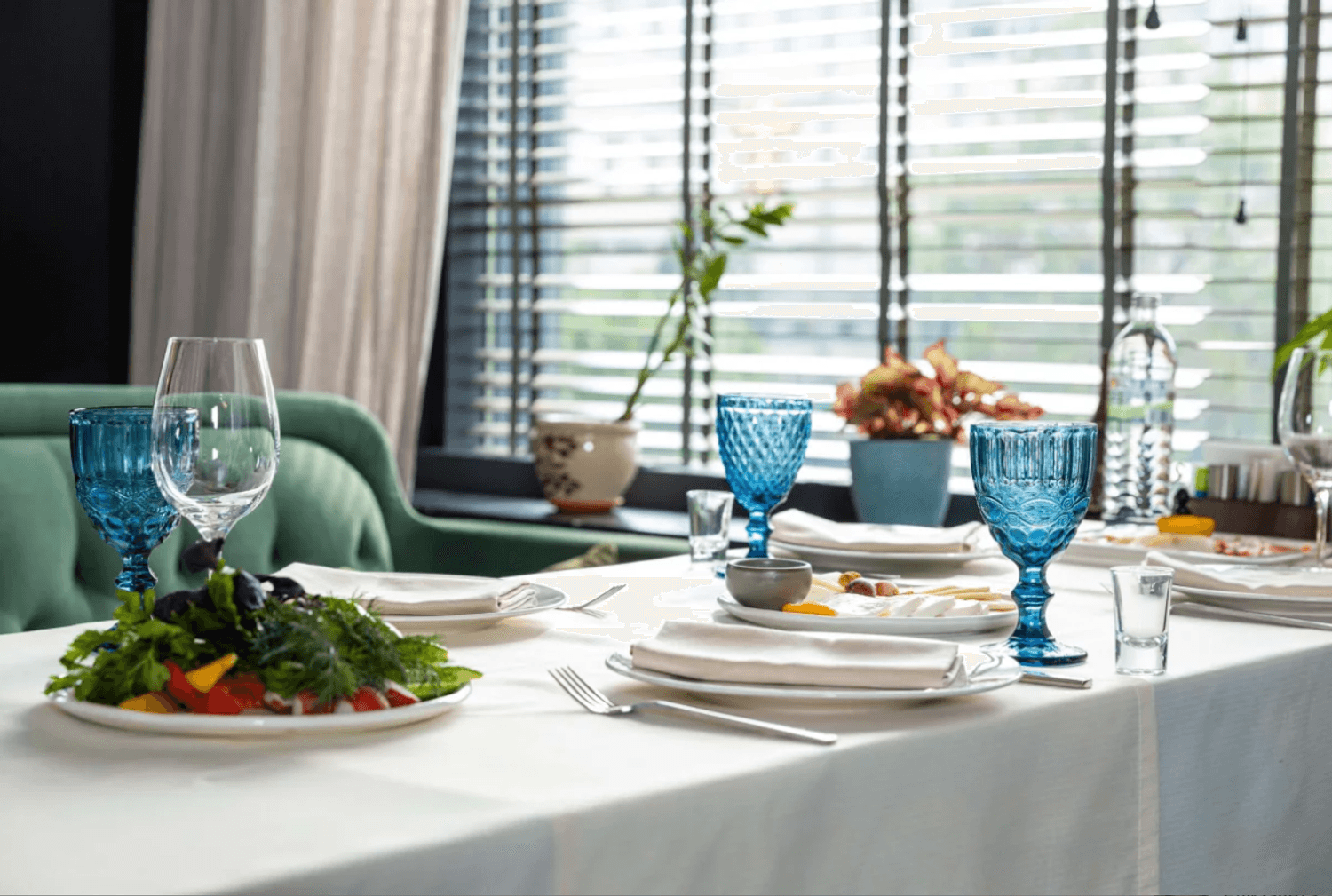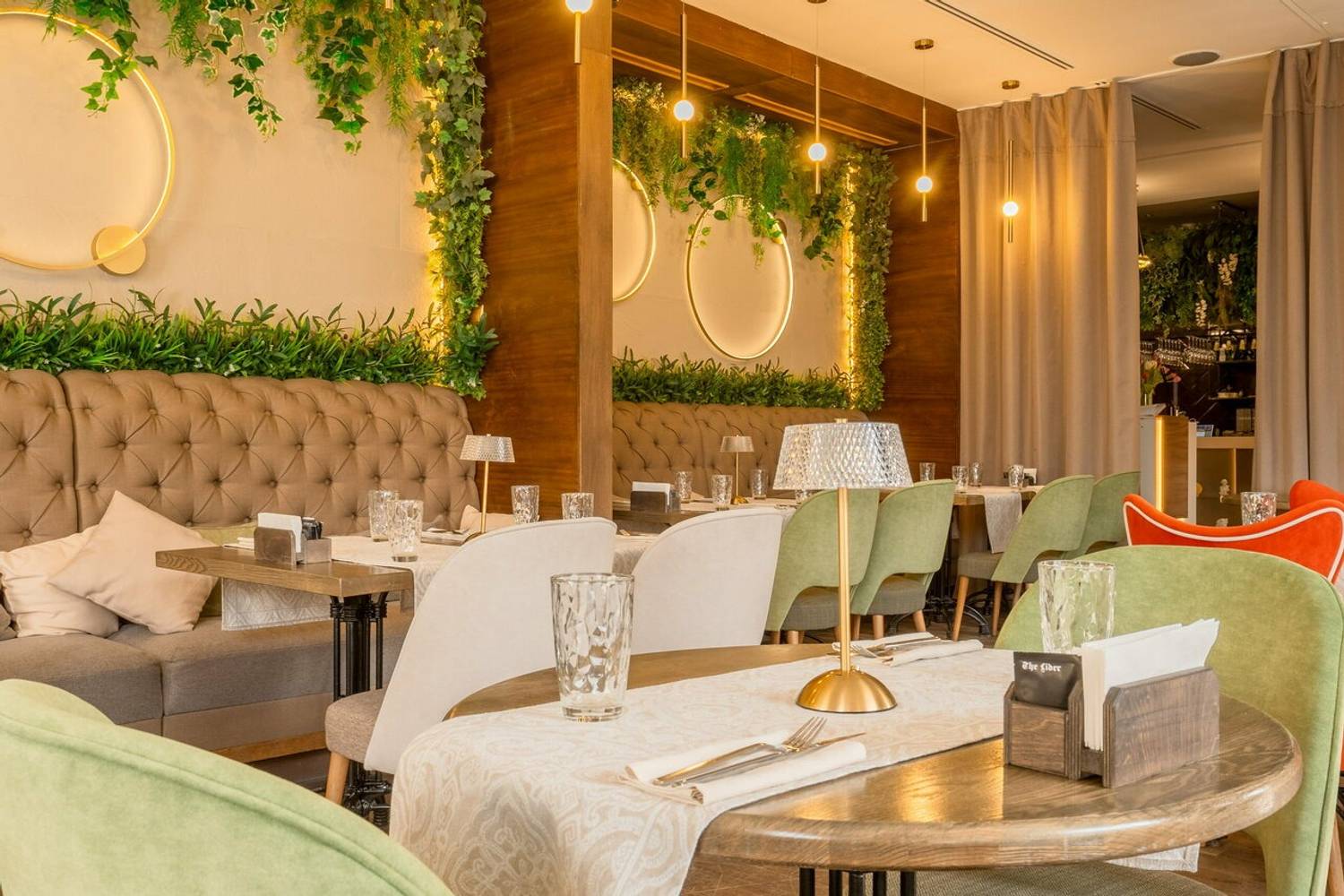 Атмосфера. Первый зал встречает светлым, воздушным интерьером с большими окнами и живыми растениями — здесь легко почувствовать себя в уютном итальянском кафе. Второй зал просторнее, с выразительными элементами грузинского стиля, необычным потолком и небольшой сценой. В теплое время года открывается летняя веранда. Ресторан подходит для разных событий: от камерных встреч до банкетов, свадеб и корпоративных мероприятий.