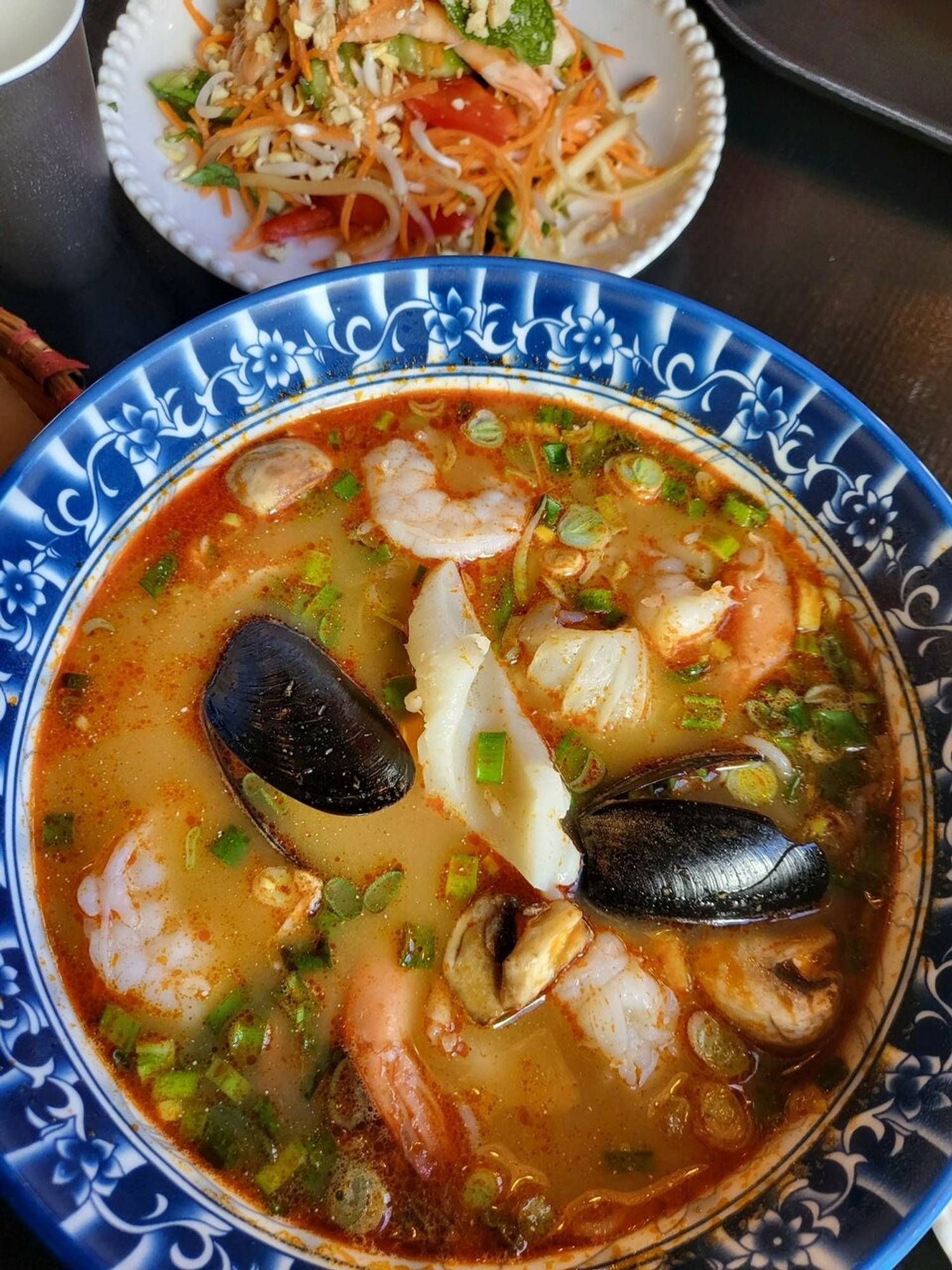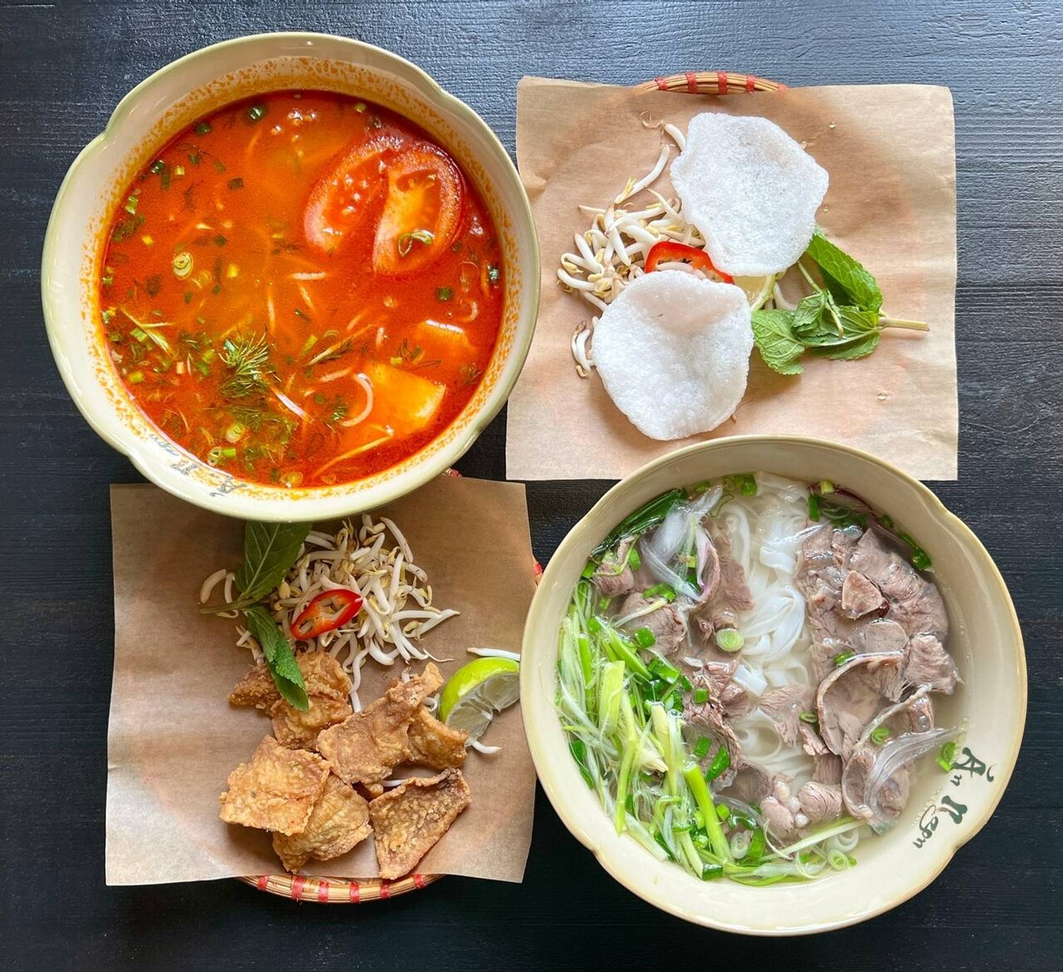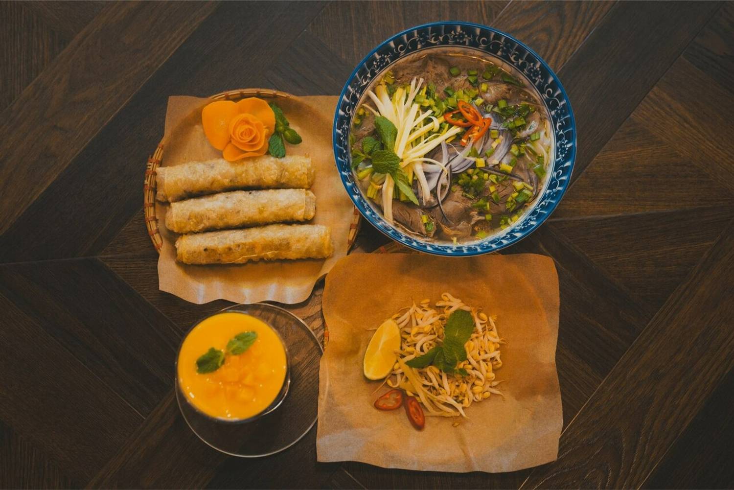 Еда и напитки. В меню — супы том ям, фо га, фо шот ванг, фо бо. Также из горячего готовят рис с морепродуктами, филе рыбы и курицей в кисло-сладком соусе. Из хрустящих закусок есть спринг-ролл с креветками и манго или курицей, креветки в кляре, булочка бань бао. Из напитков — манго шейк, манго-маракуйя, дракон шейк, вьет кофе и пиво.