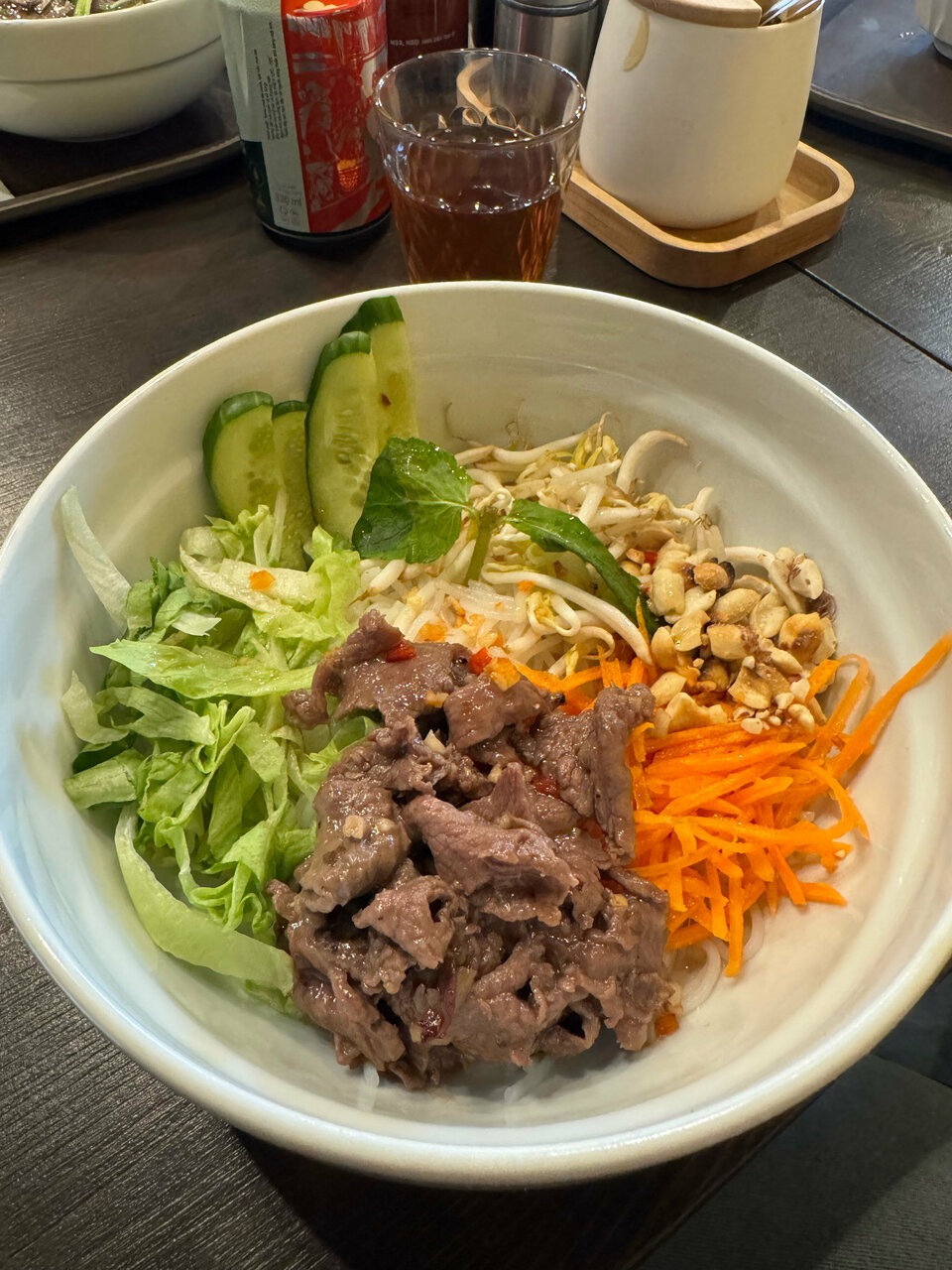 Еда и напитки. В меню — суп фо с разными начинками: с тушеной или обжаренной говядиной, курицей, морепродуктами. На обед готовят рис с курицей в кисло-сладком соусе или морепродуктами, филе рыбы. На закуску подают спринг-ролл с креветками и манго или курицей, креветки в кляре, воздушную булочку бань бао. Из напитков — манго шейк, манго-маракуйя, дракон шейк, вьет кофе и пиво.