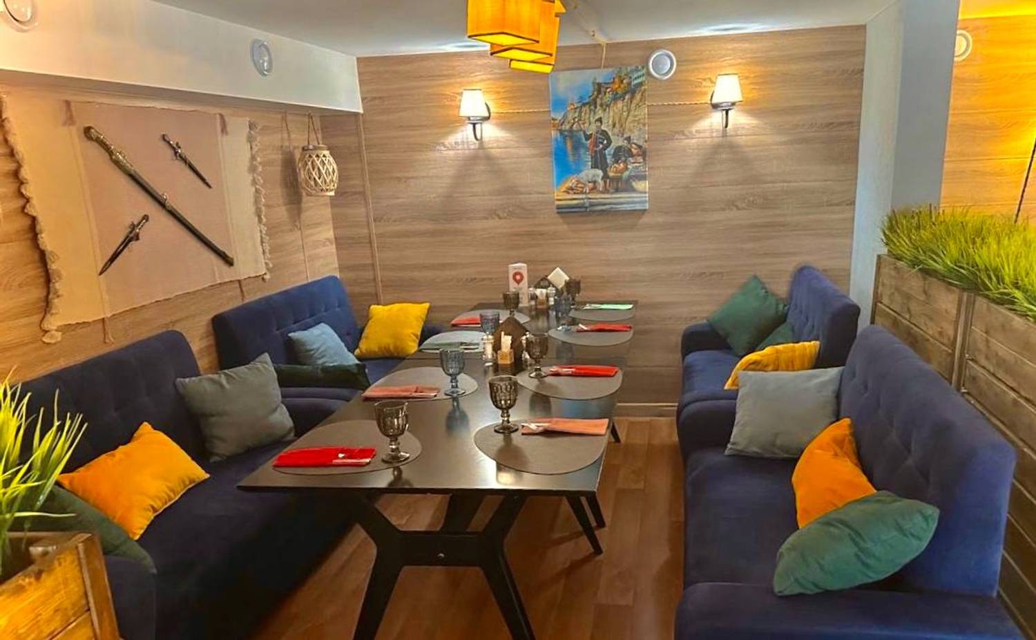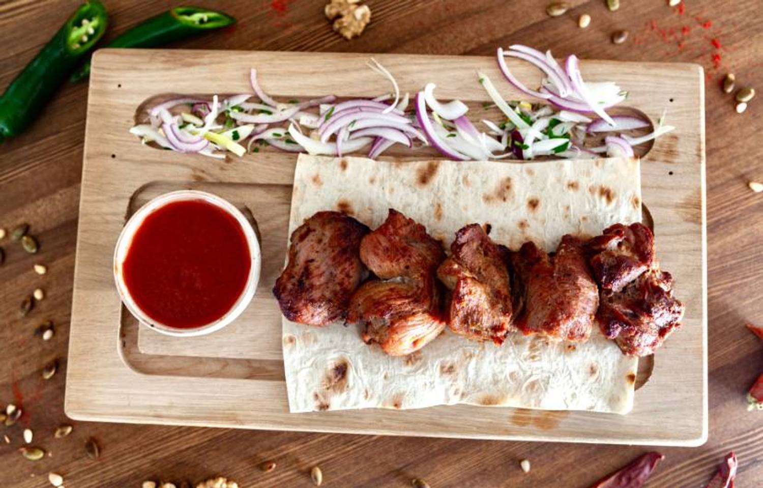 В меню — хинкали с разными начинками, хачапури в нескольких вариантах, чахохбили, сациви, харчо, оджахури, шашлыки и закуски вроде пхали и лобио. Есть как сытные блюда, так и легкие салаты, а на десерт — пахлава или чурчхела.