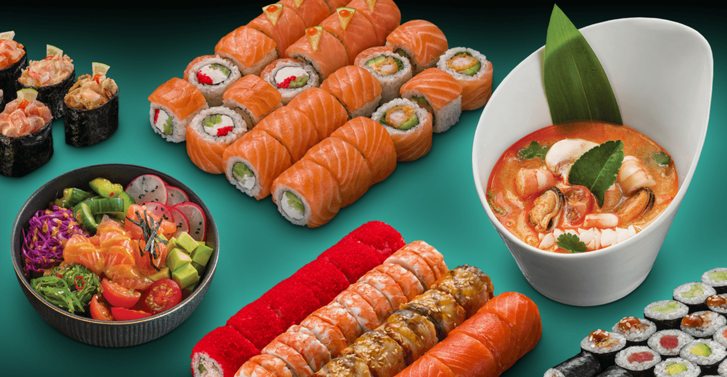 Еда и напитки. В меню представлены роллы (классические Калифорния и Филадельфия, а также авторские Абури и Блю Кюрасаю), паста и блюда на гриле. Работают форматы завтраков и бизнес-ланчей. Для детей предусмотрено специальное меню.