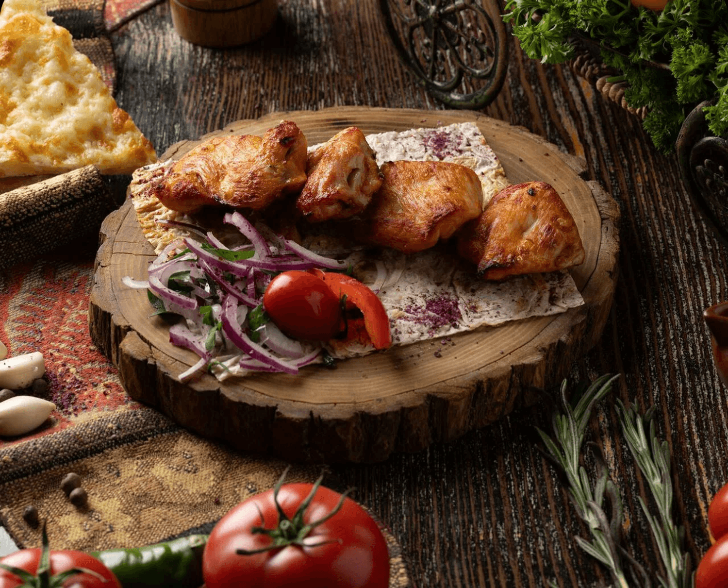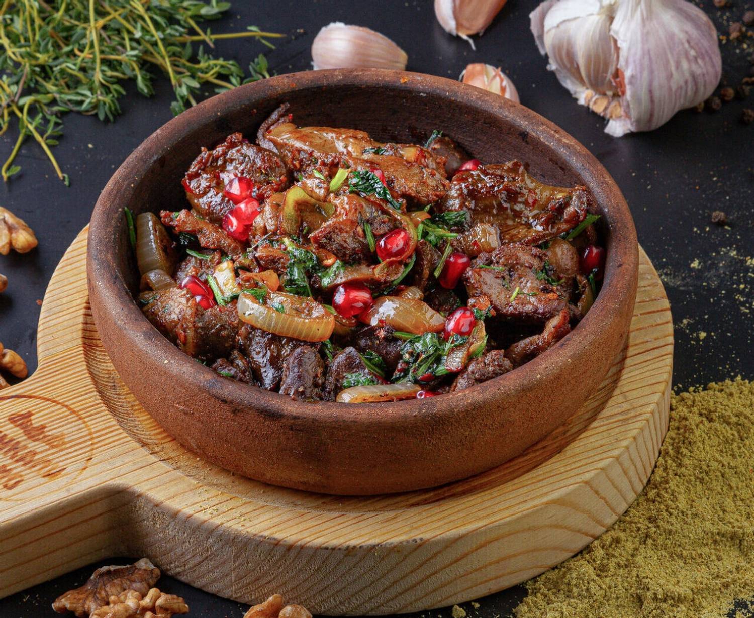 Еда и напитки. В меню представлены классические и авторские блюда Грузии: хинкали, хачапури, пхали, сациви, чкмерули и шашлыки. Из напитков предлагают домашнее вино, грузинские лимонады и коктейли.