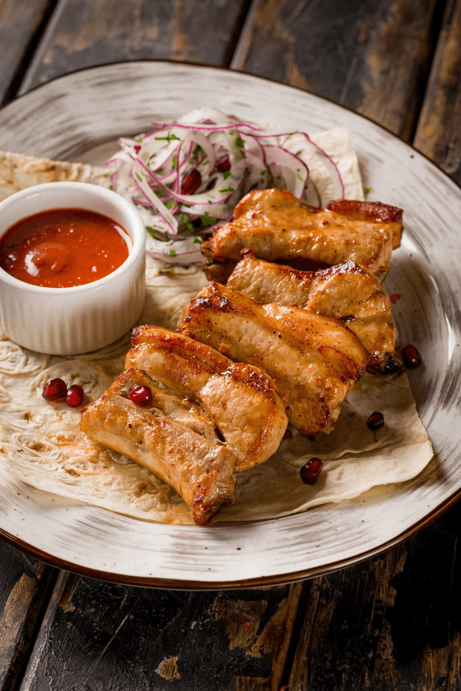 Еда и напитки. В меню представлены блюда грузинской и армянской кухни: хинкали, хачапури, долма, цыпленок табака, оджахури с телятиной и шашлыки. Особый акцент сделан на мясных специалитетах: среди них корейка ягненка и люля-кебаб. Винная карта включает подборку позиций по бокалам и бутылкам, идеально сочетающихся с основными блюдами.