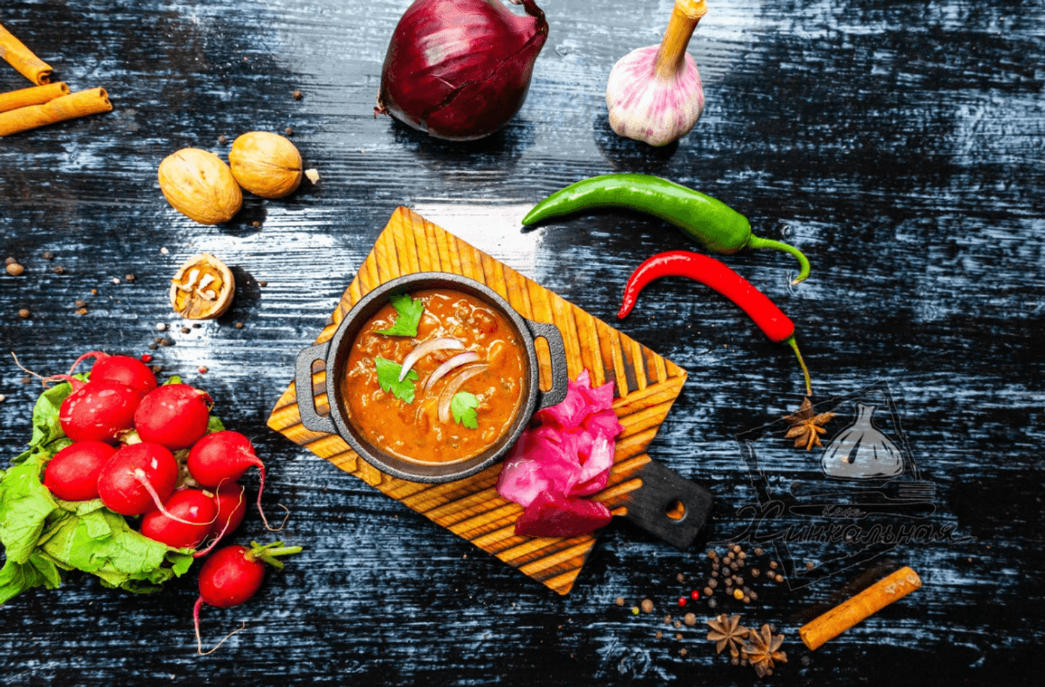 В меню собрали хинкали с различными начинками: от классической баранины до обжаренных вариантов. Готовят хачапури по-аджарски, по-имеретински и мегрельски, шашлыки и люля-кебаб на углях, мясные блюда с ароматными специями. Есть супы, сытные закуски и блюда на компанию.