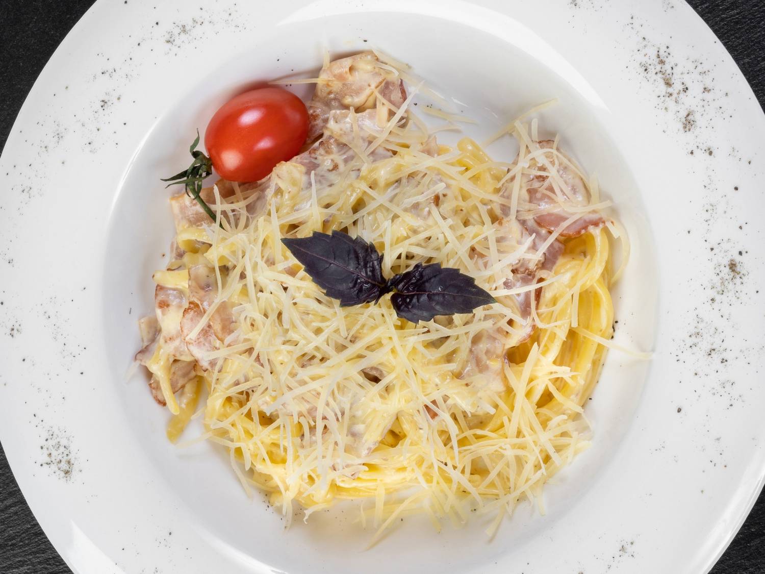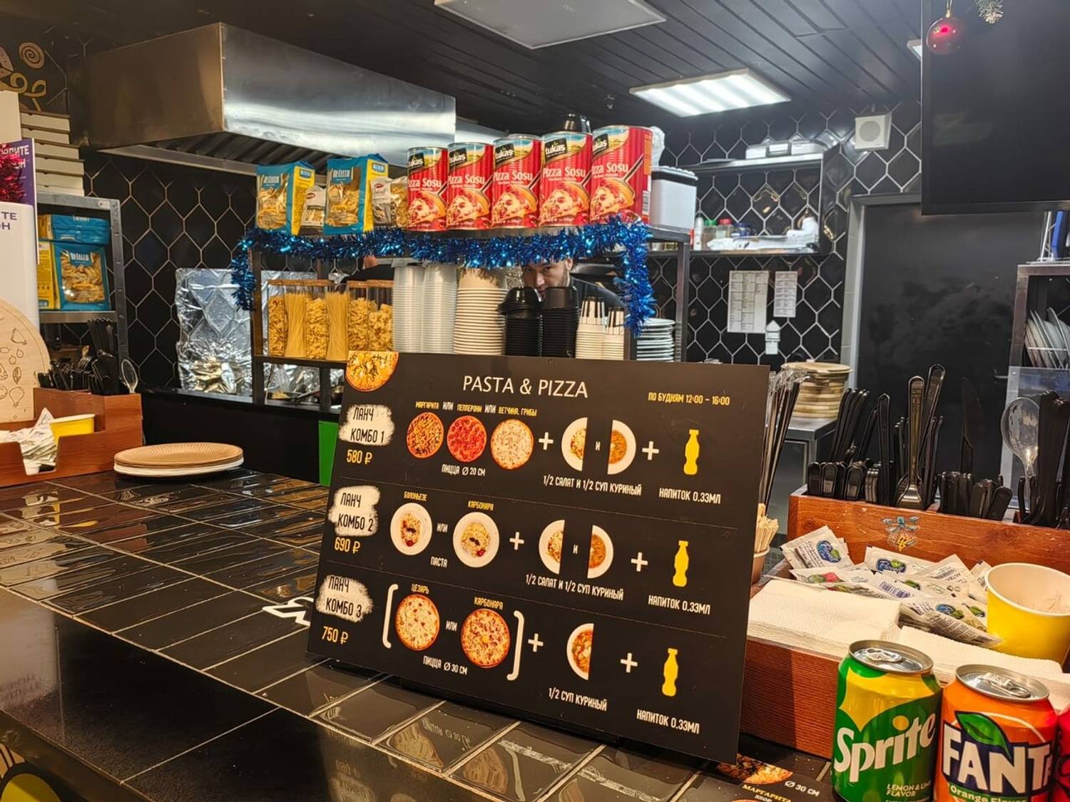 Еда и напитки. В меню — пицца на тонком тесте: от классической «Маргариты» до авторской с грушей и горгонзолой. Также готовят пасту карбонара, равиоли со шпинатом и тыквенный суп-пюре. В будни действуют бизнес-ланчи, есть детское меню.