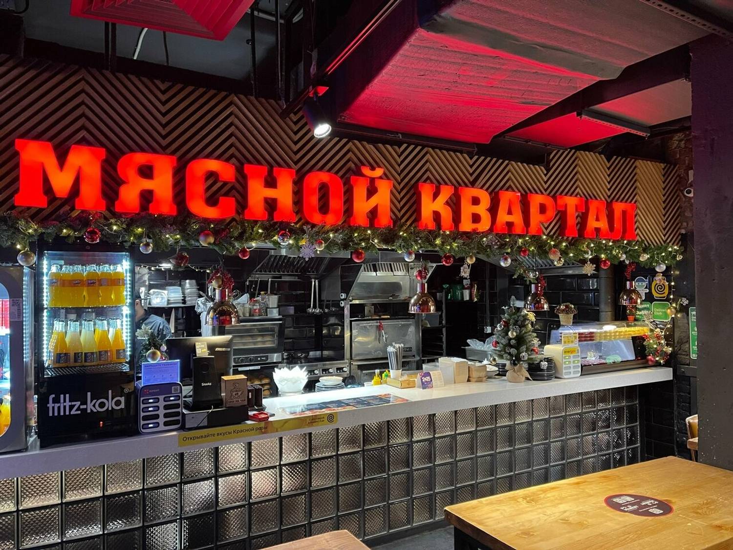 «Мясной квартал» по адресу ул. Тимура Фрунзе, 11, стр. 13 — корнер мясной кухни с авторскими бургерами в фудмолле «Красная роза».