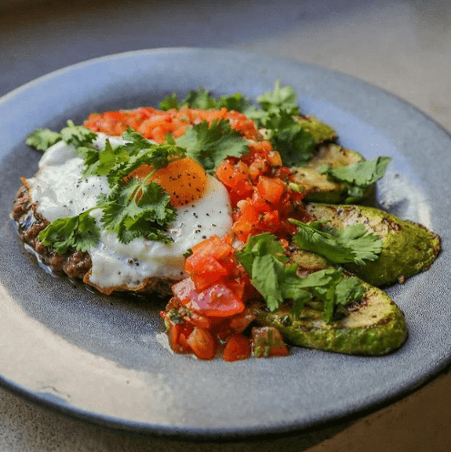 Еда и напитки. В меню — бургер с манговым чатни, рукколой и страчателлой, спайси авокадо, блю чиз. На гриле готовят свиные ребра в соусе сладкий чили, кебаб говядина и корейка ягненка. Из соусов есть сырный чеддер, горчичный и трюфельный.