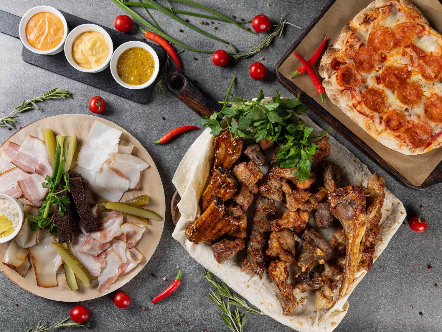 Еда и напитки. В меню — блюда европейской, азиатской и кавказской кухни: пицца, шашлык, том ям и другие популярные позиции. В барной карте представлены разнообразные сорта рома и виски, настойки и несколько винных позиций.