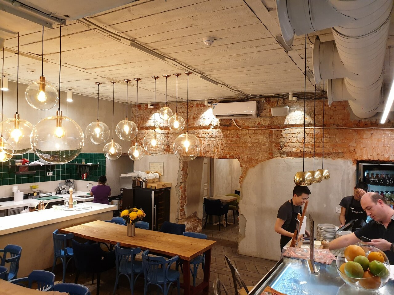Еда и напитки. В меню — фирменная римская пицца на столетней закваске с хрустящей корочкой. Также готовят пиццу с лососем и фенхелем, мидии в соусе наполи, гаспаччо с малиной, пенне арабиата со страчателлой, ригатони карбонара по-римски с панчеттой.
