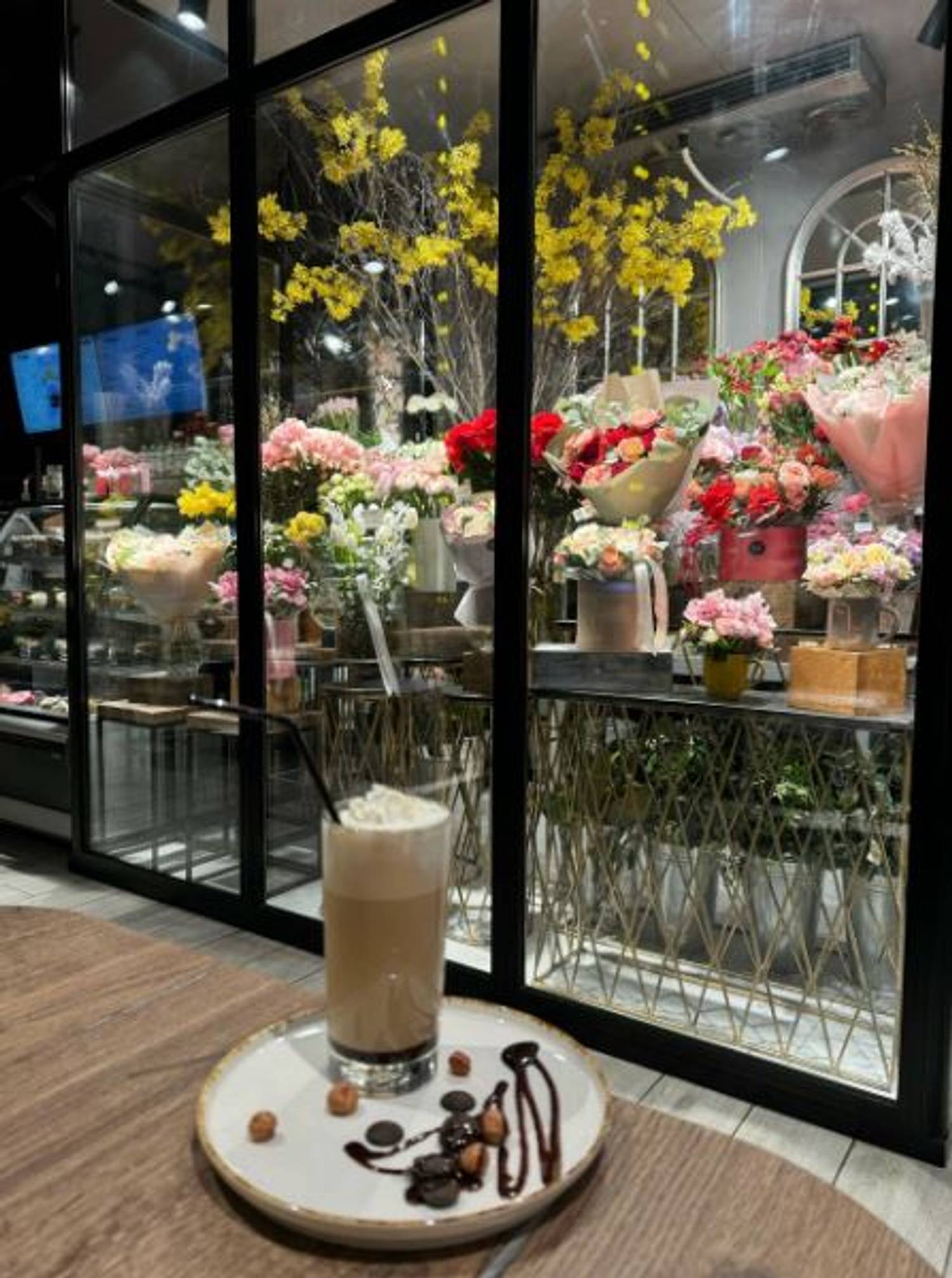 Барная карта включает ароматный зерновой кофе, чай, лимонады. В кафе расположен небольшой цветочный бутик, где можно насладиться композициями из живых растений.