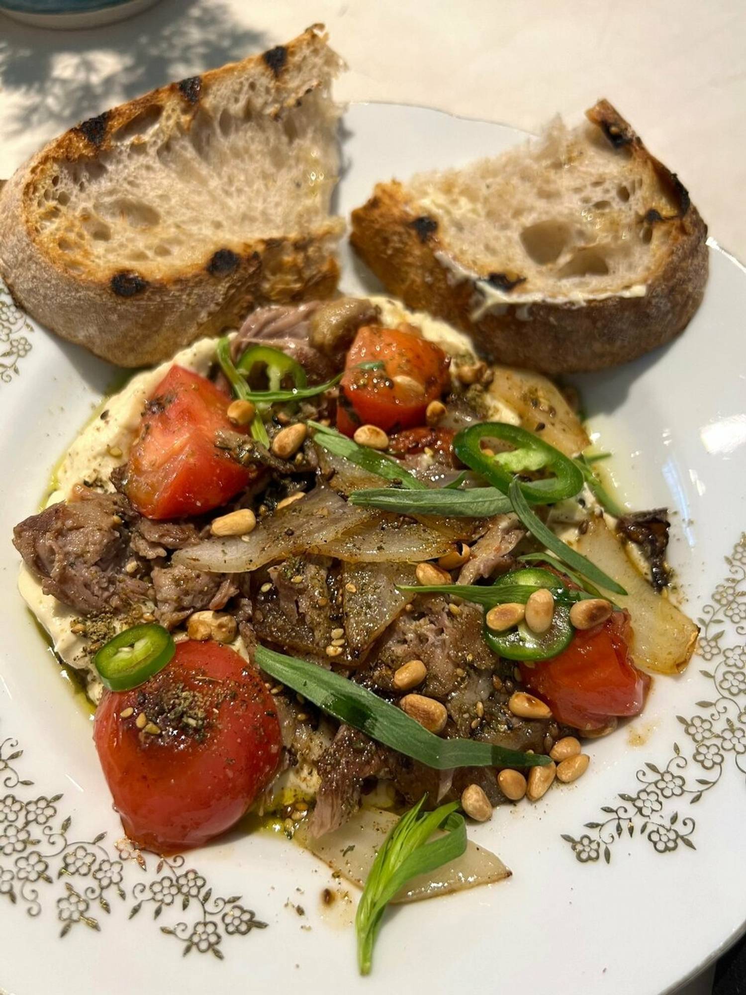 Атмосфера. Здесь вас ждет тот самый хаотичный шарм израильского города: длинные столы, за которыми знакомятся незнакомцы, открытая кухня с дразнящими арфоматами и приглушенный гул голосов, точно на бульваре Ротшильда в пятницу вечером.