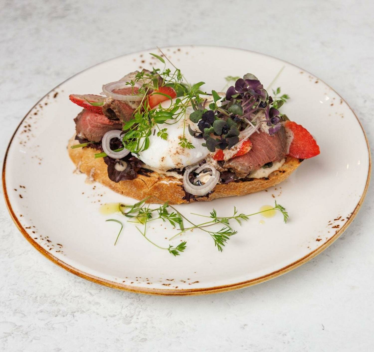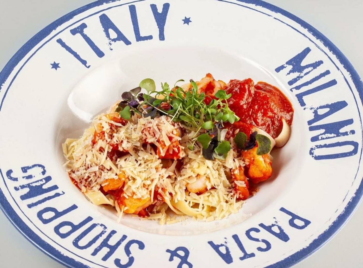 Еда и напитки. В меню — около 10 вариантов римской пиццы на тонком тесте: капричоза, квадро формаджи, груша-горгонзола и парма руккола. Также готовят лазанью, фетучини с грибами и вялеными томатами и дорадо на гриле. Из напитков — вина по бокалам: виньо верде, шардоне, мерло, просекко, коктейли на основе просекко, пиво, сидр и вермут.
