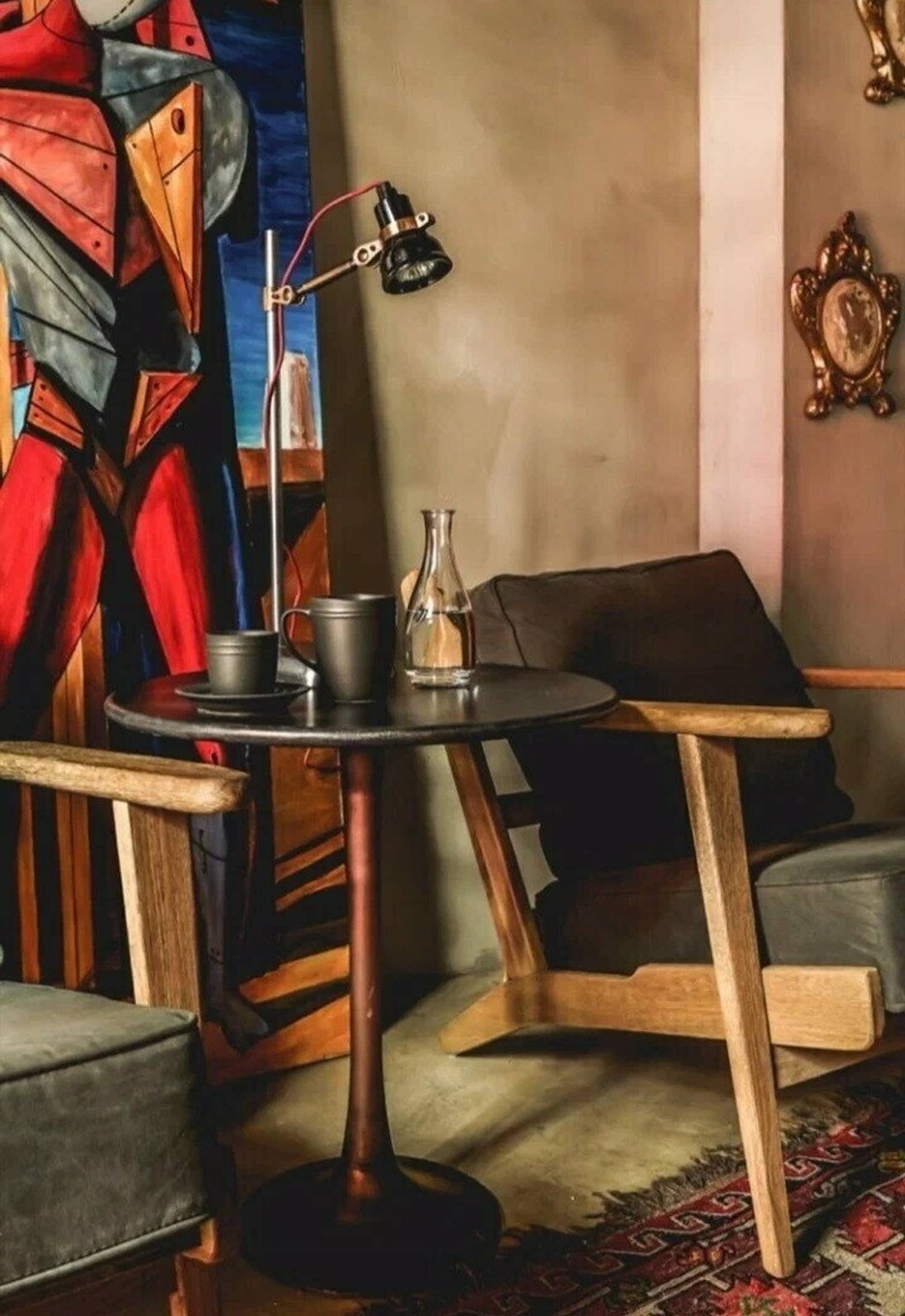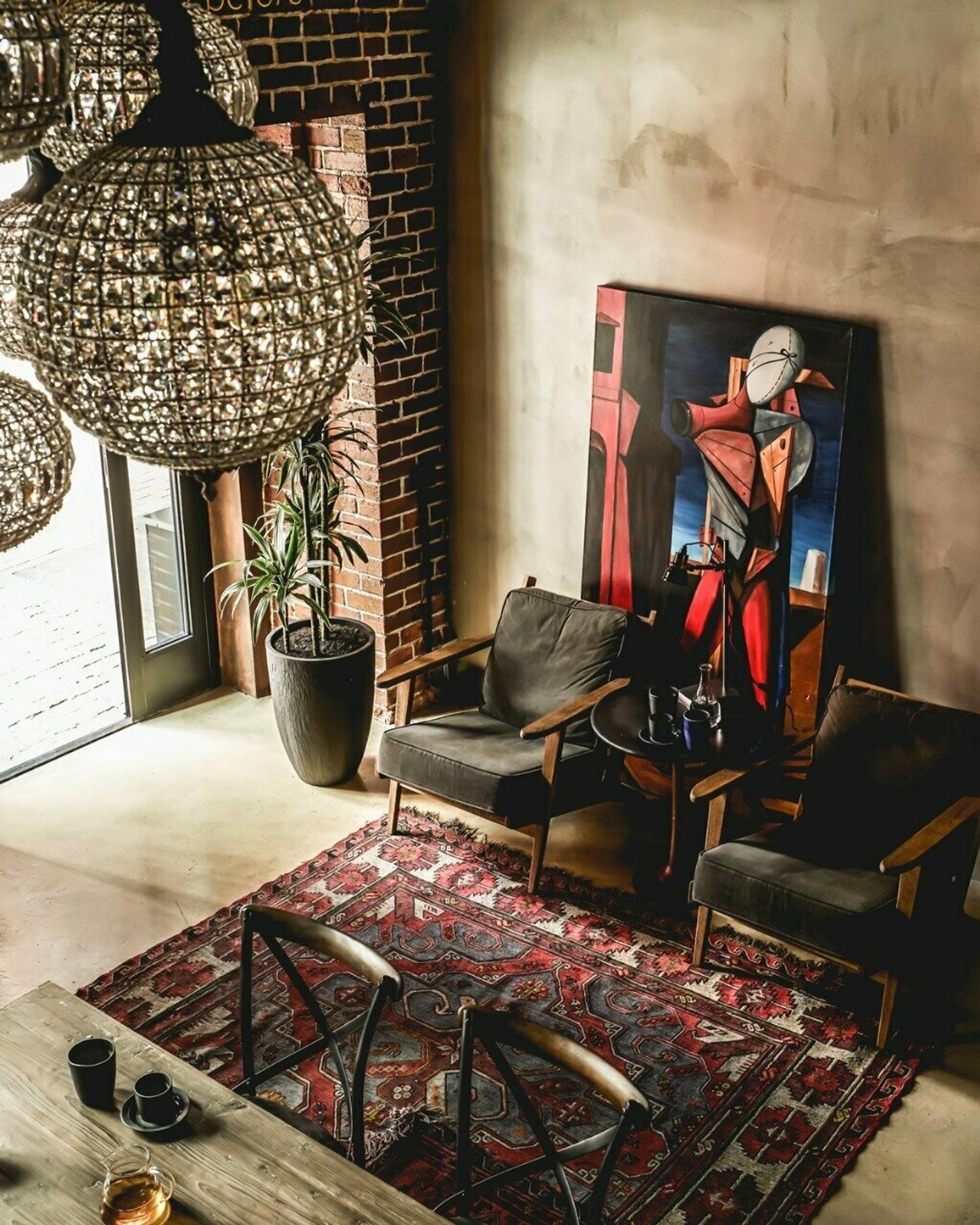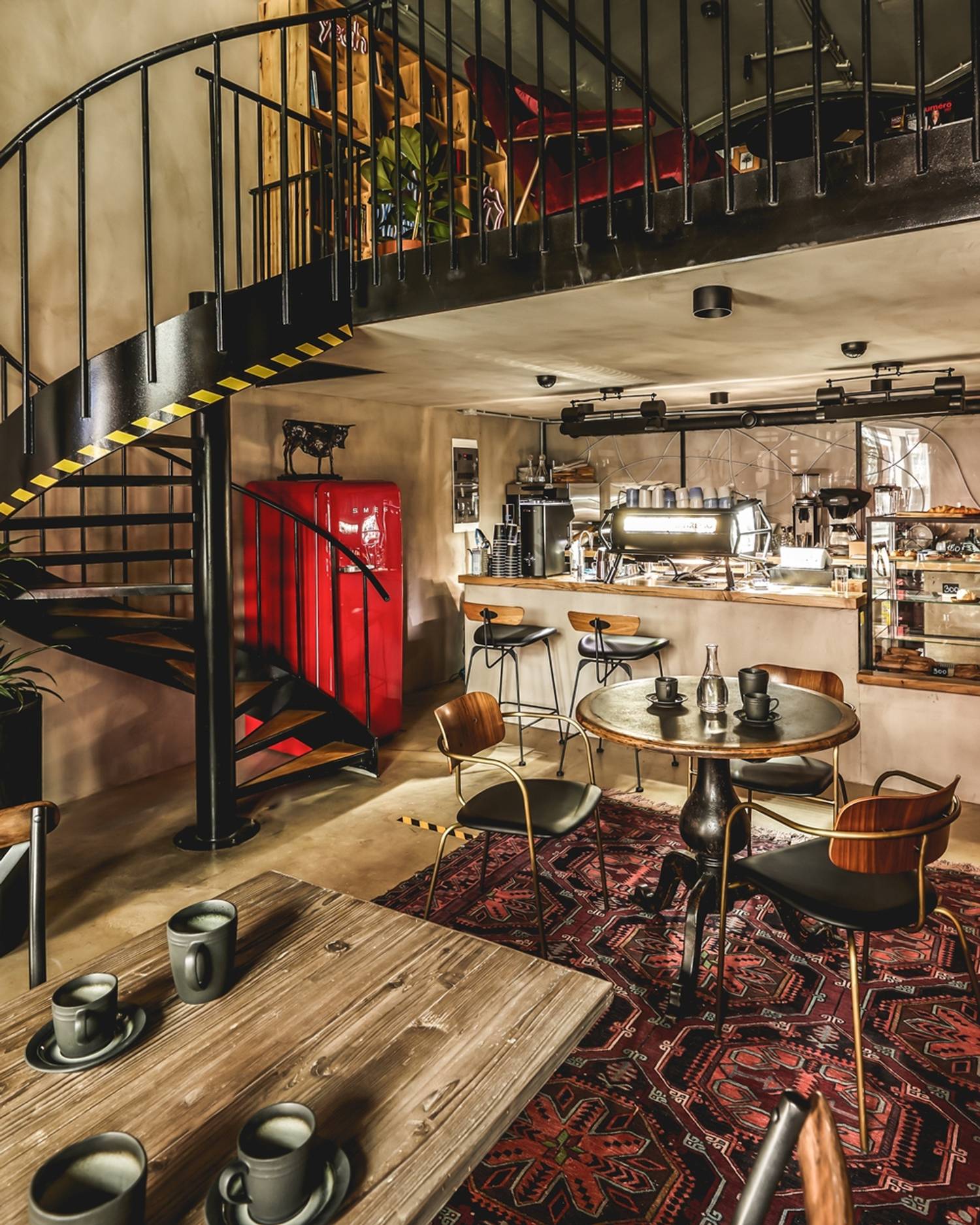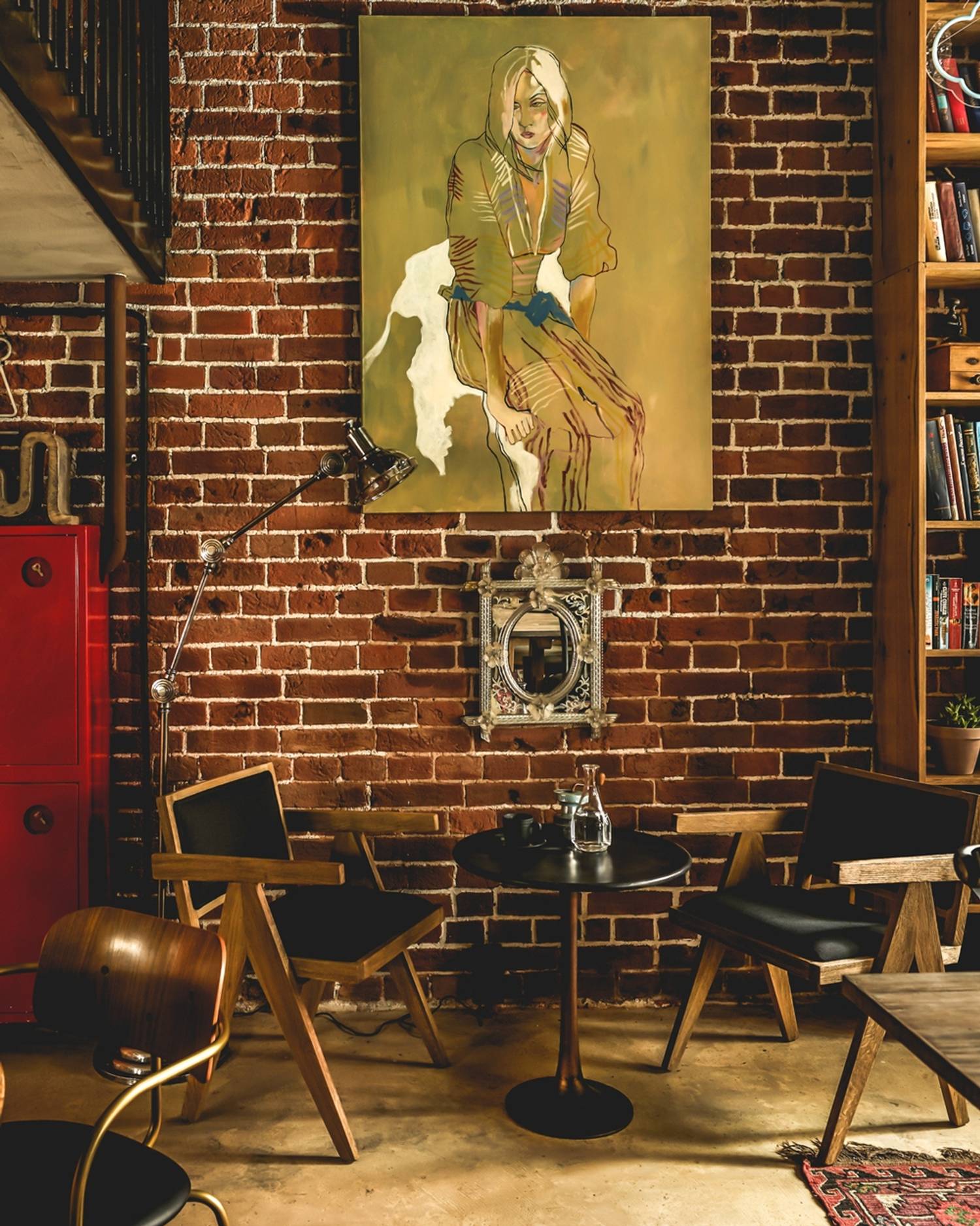 Атмосфера. Интерьер выполнен в стиле лофт с элементами гранжа: кирпичные стены, неоновые вставки, советские кресла и книжные полки, деревянная мебель и детали из грубого металла. ПЗдесь проходят кинопоказы, лекции, выставки, клубы по интересам, мастер-классы и вечеринки. На втором этаже — шоурум дизайнерской одежды I’MM.