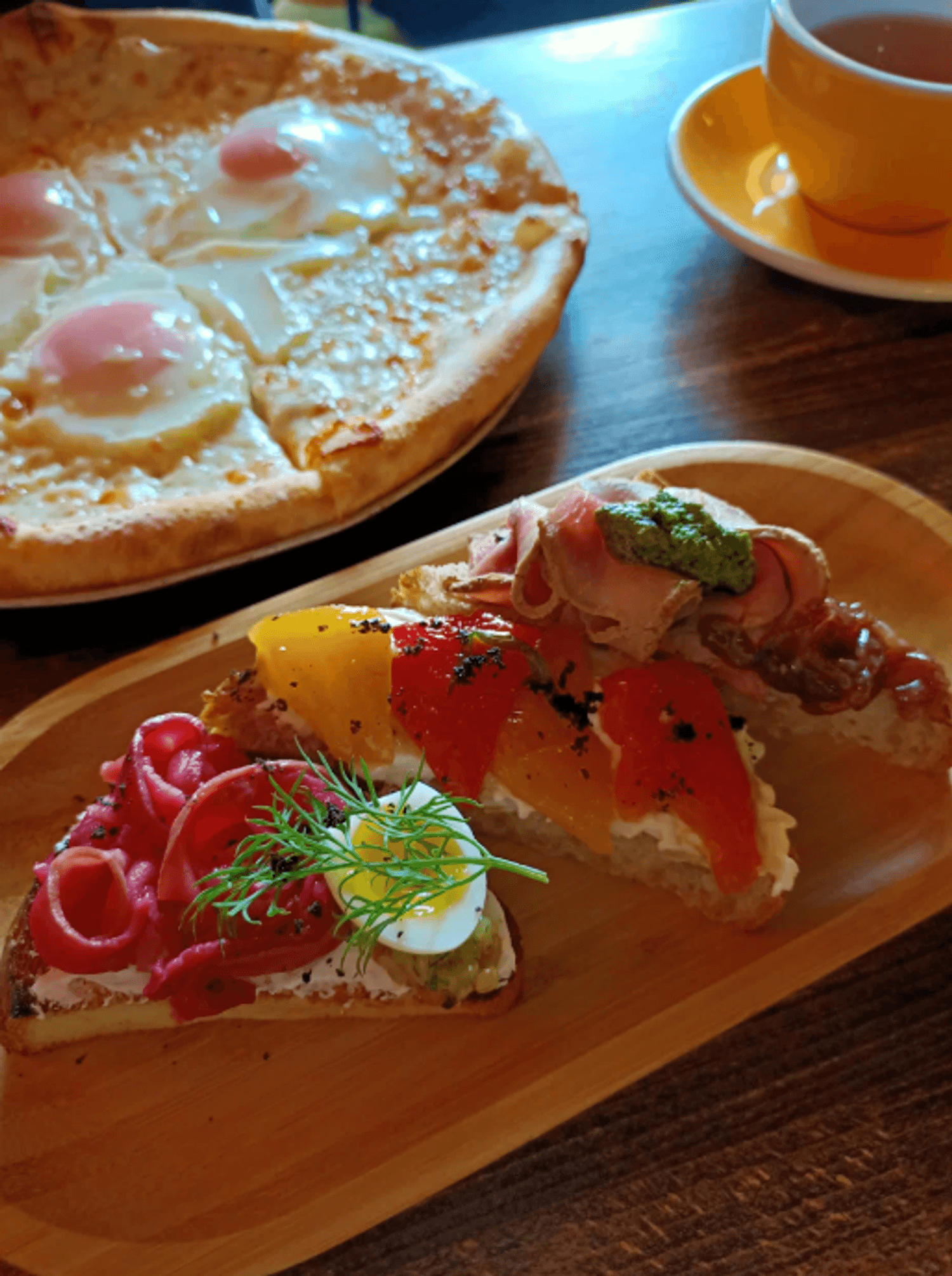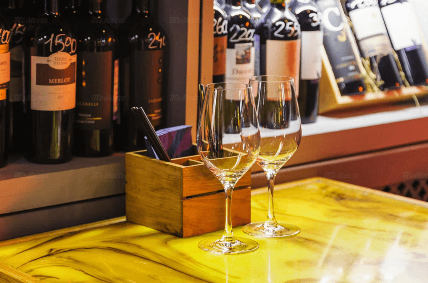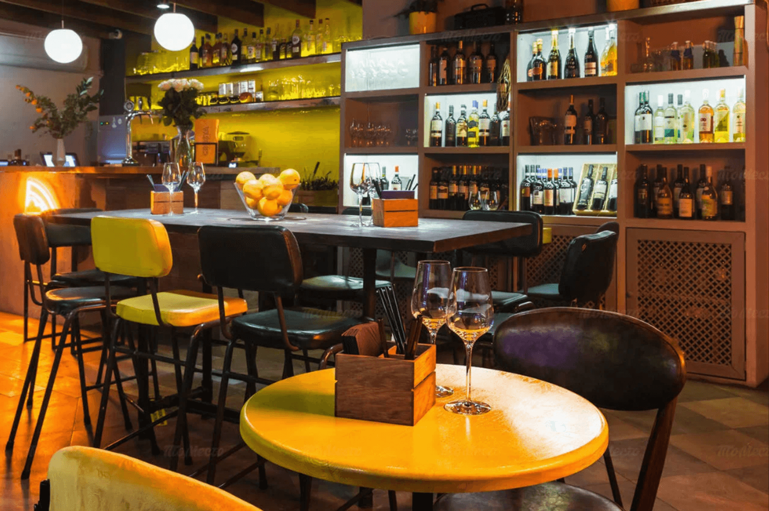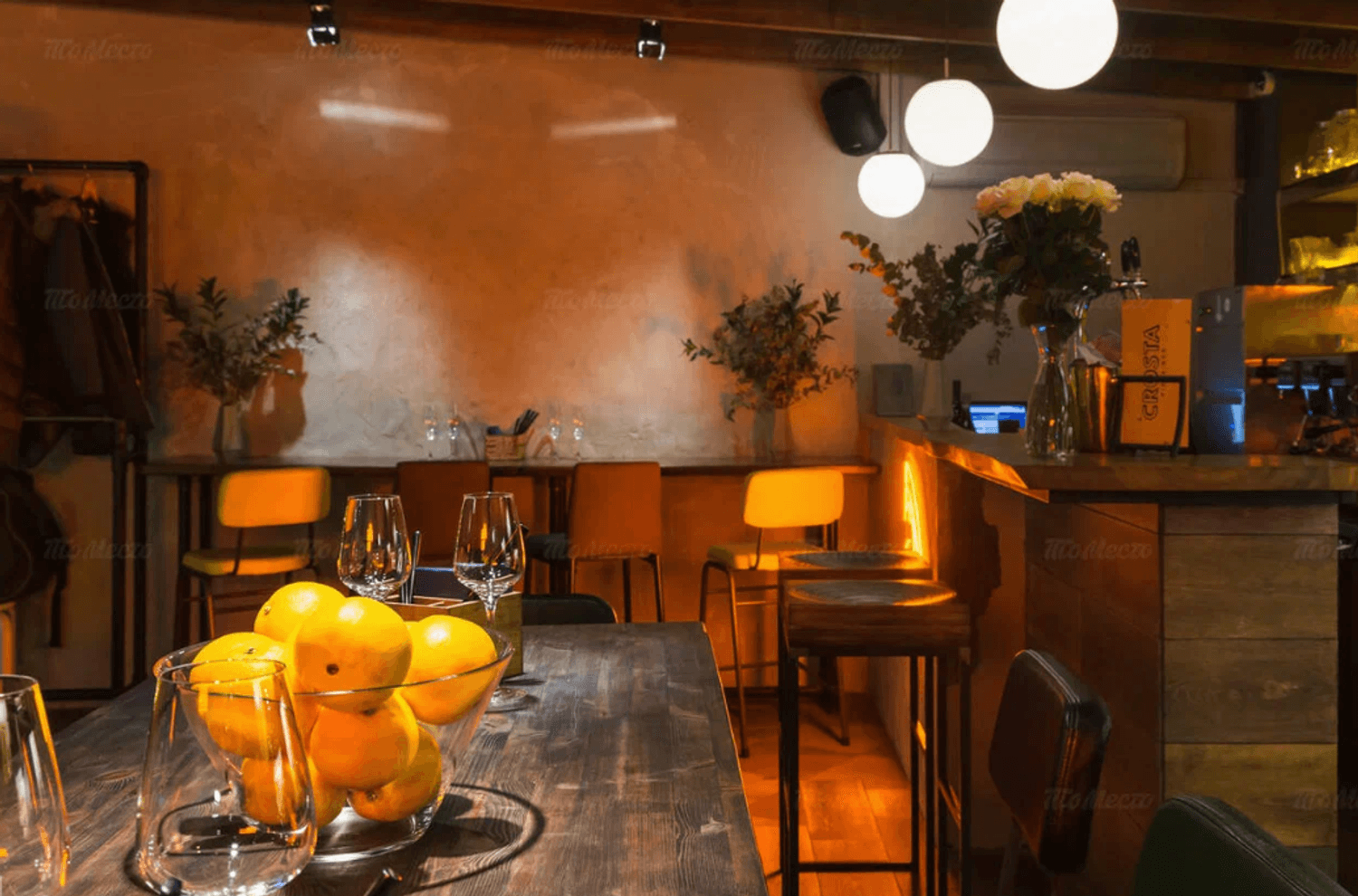 Еда и напитки. В меню — пицца с мортаделлой и страчателлой, паста Карбонара и фетуччини с лососем, а также закуски: тартар из говядины, сырное плато и хумус. На горячее подают филе миньон и дорадо. К блюдам можно заказать вина или авторские коктейли.