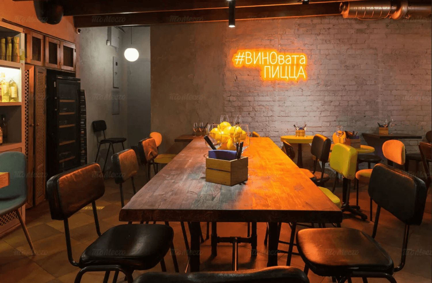 «Crosta» по адресу Комсомольский просп., 14/1к2 — бар с итальянской кухней и кинопоказами в атмосфере промышленного лофта.