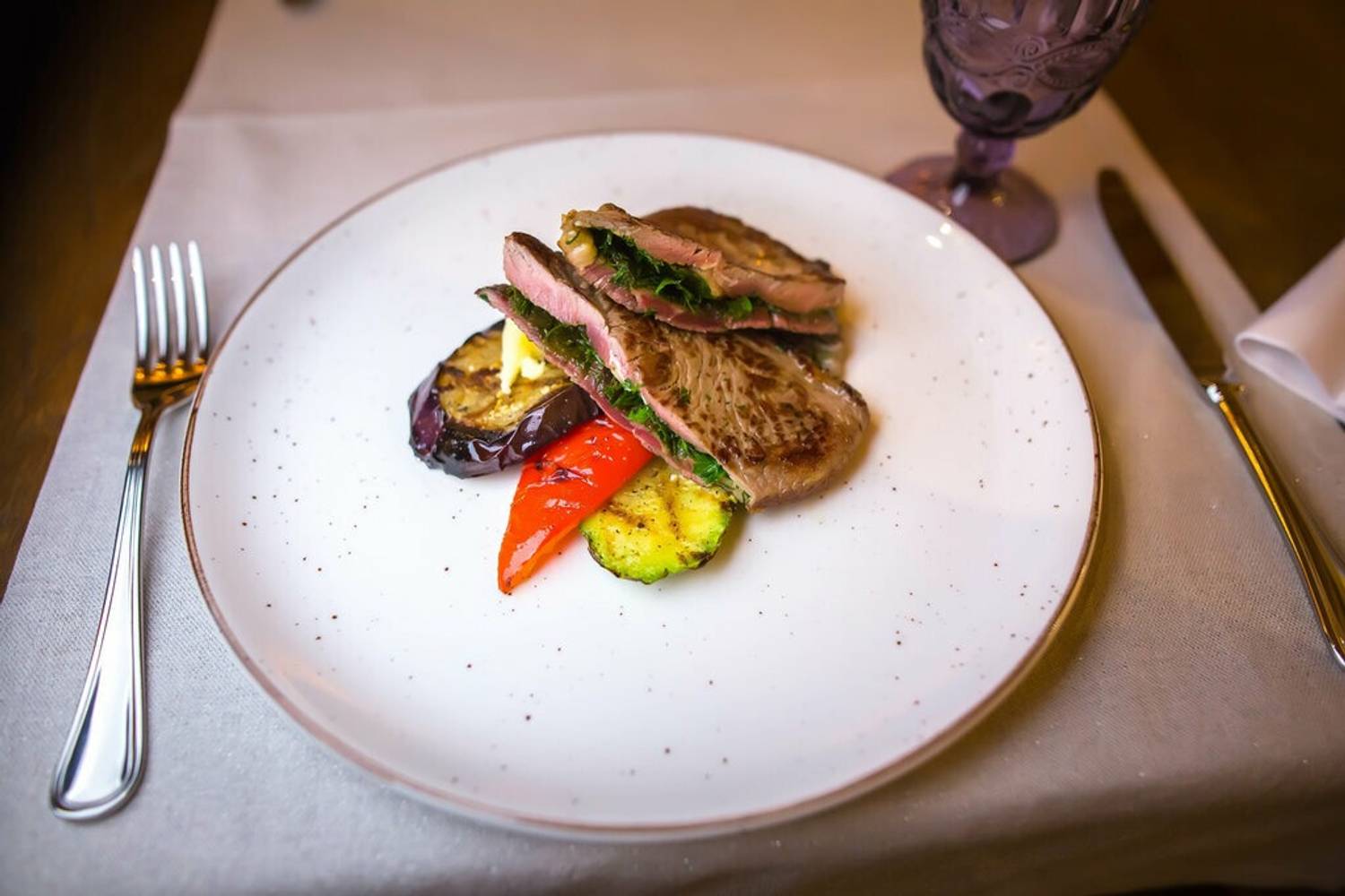 Еда и напитки. В меню — кавказские, европейские и русские блюда: уха по-царски, беф а-ля строганов с грибным соусом, харчо, карась в сметане и сливках с зеленым луком, стейк из лосося под соусом шампань.