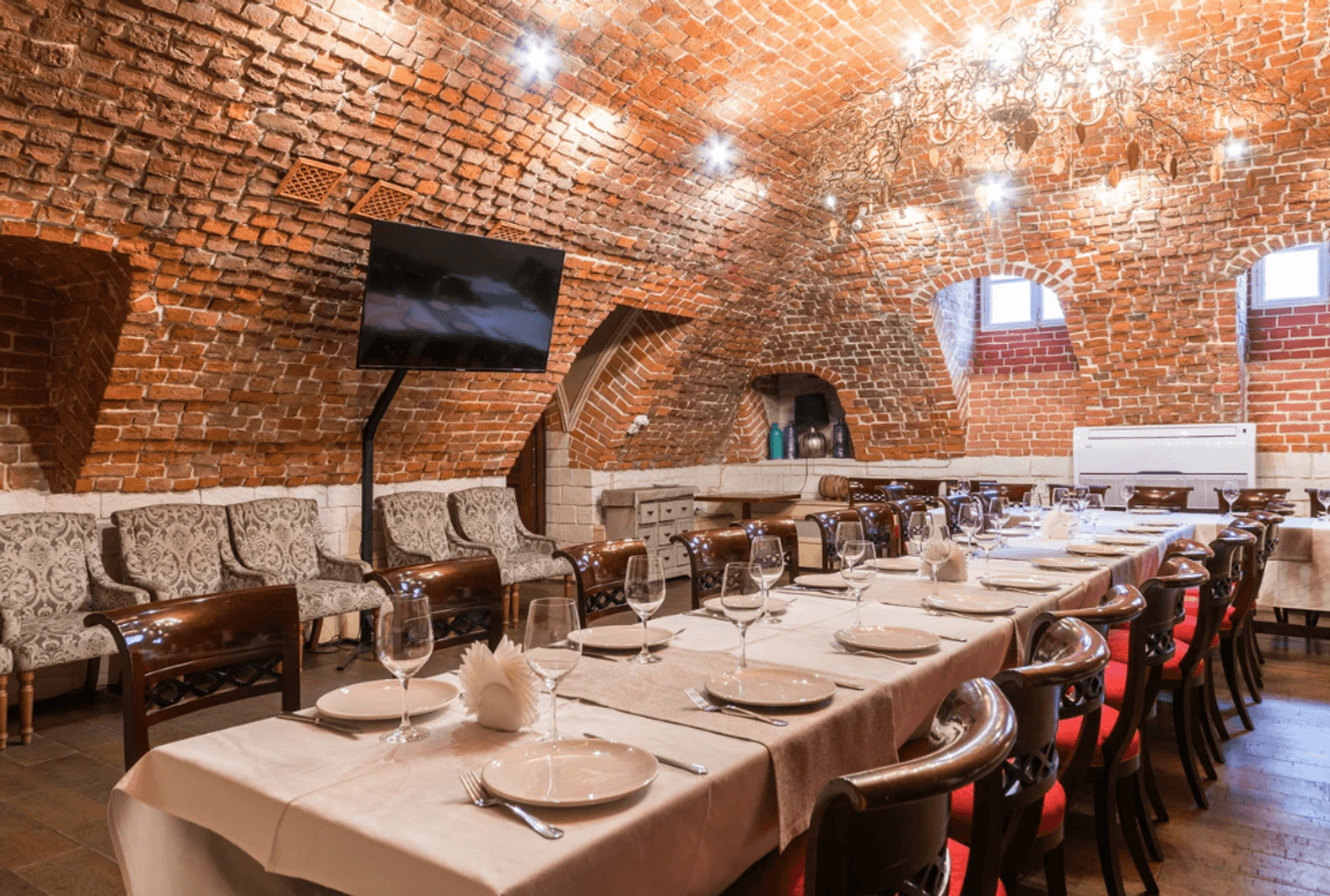 Атмосфера. Внутри настоящий особняк старинного стиля с кирпичными сводами, каминами и ажурными деревянными рамами на зеркалах. Здесь несколько залов, бар и VIP-комната.