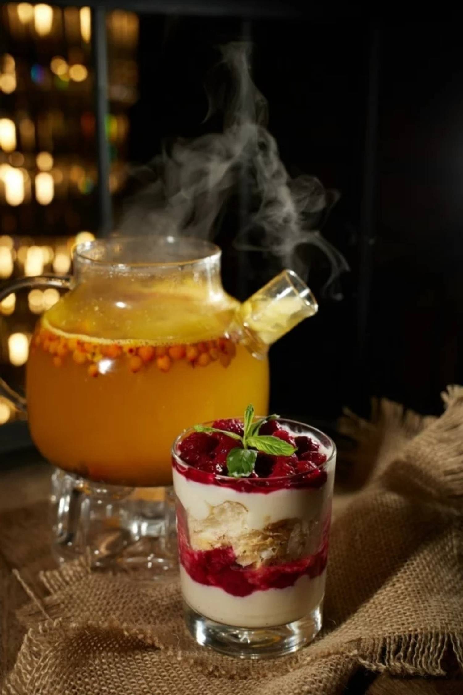Еда и напитки. В меню — армянские специалитеты: хинкали с семгой, люля-кебаб, ламаджо и жаркое из свиной шеи. Из европейской кухни представлены беф бургиньон и уха по-фински. К блюдам можно заказать вино из коллекции, насчитывающей более 300 разновидностей, армянский коньяк или фирменные коктейли.