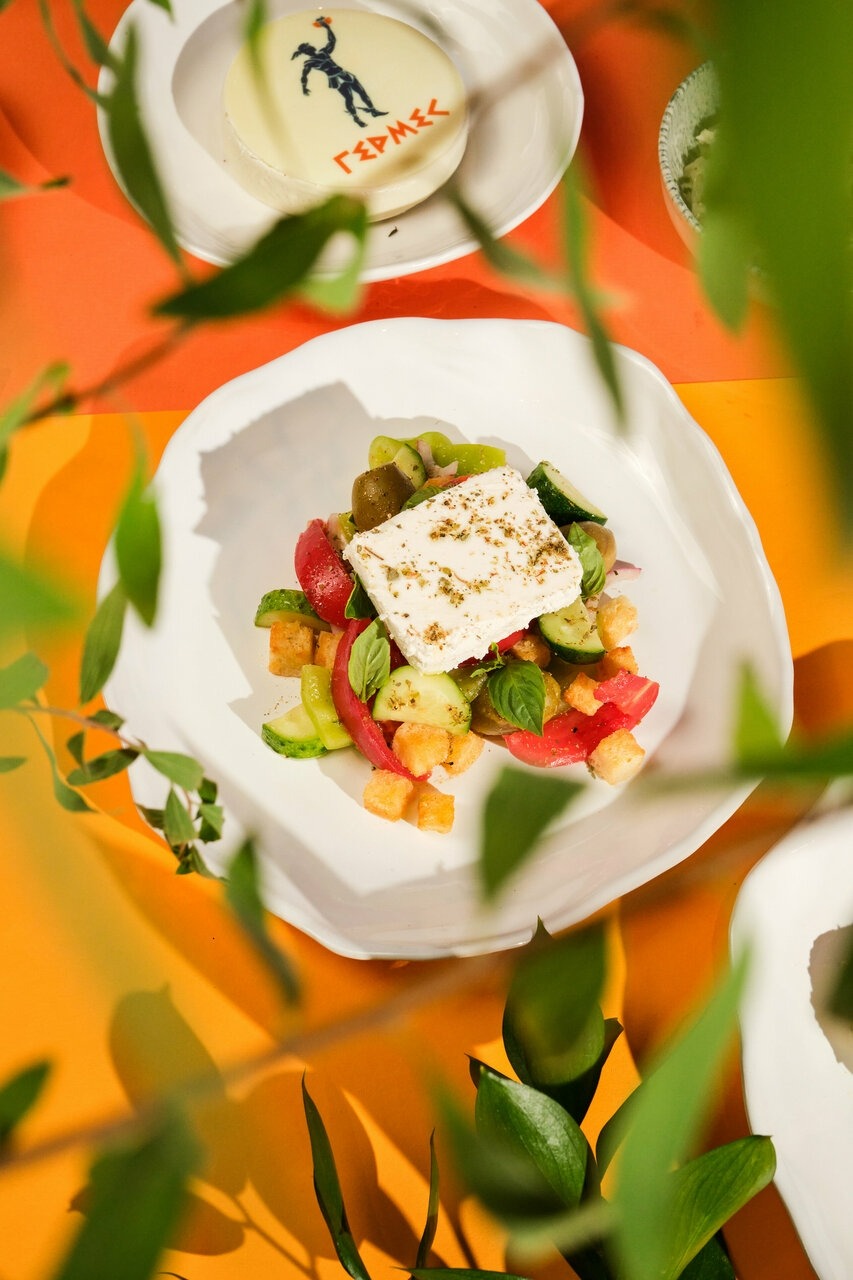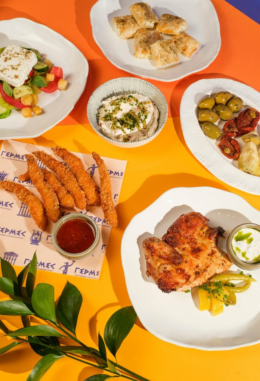 «Гермес» по адресу Нежинская, 11 — панорамный ресторан греческой кухни с фиксированной ценой на большинство блюд.