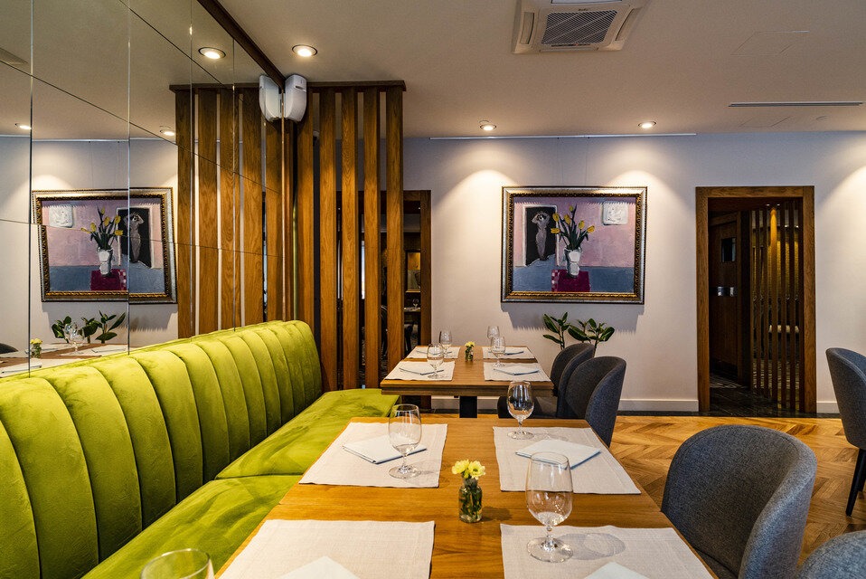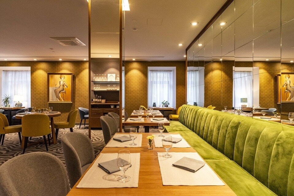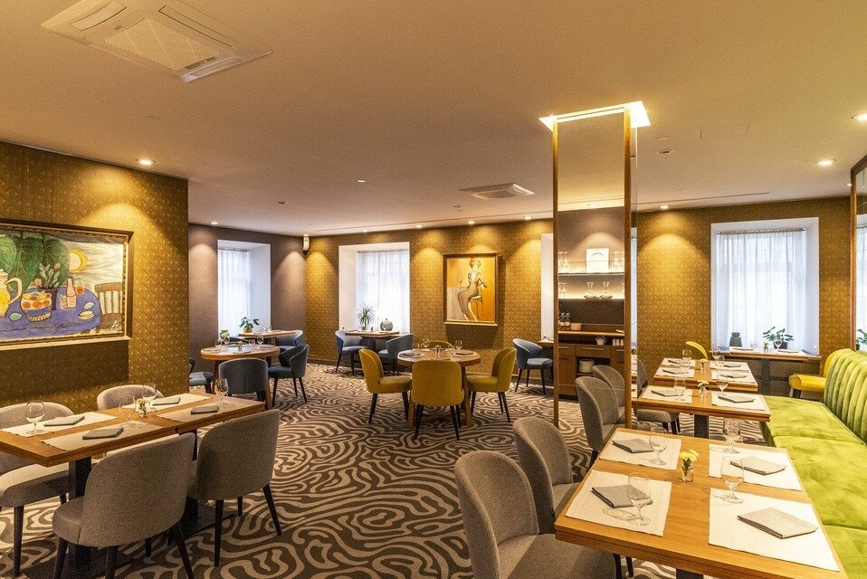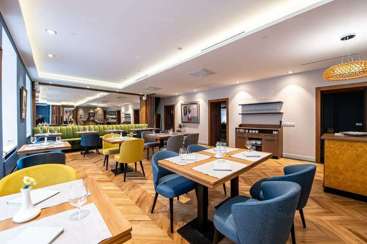 Еда и напитки. В меню — французская кухня от шефа Эрика ле Прово: луковый суп, турнедо из брянской говядины, тартар из черноморской форели, артишоки и устрицы. В кондитерской готовят профитроли с мороженым и шоколадным соусом, плавающий остров с кремом англез с миндалем. Винная карта включает бордо, мюскаде и шампанское.