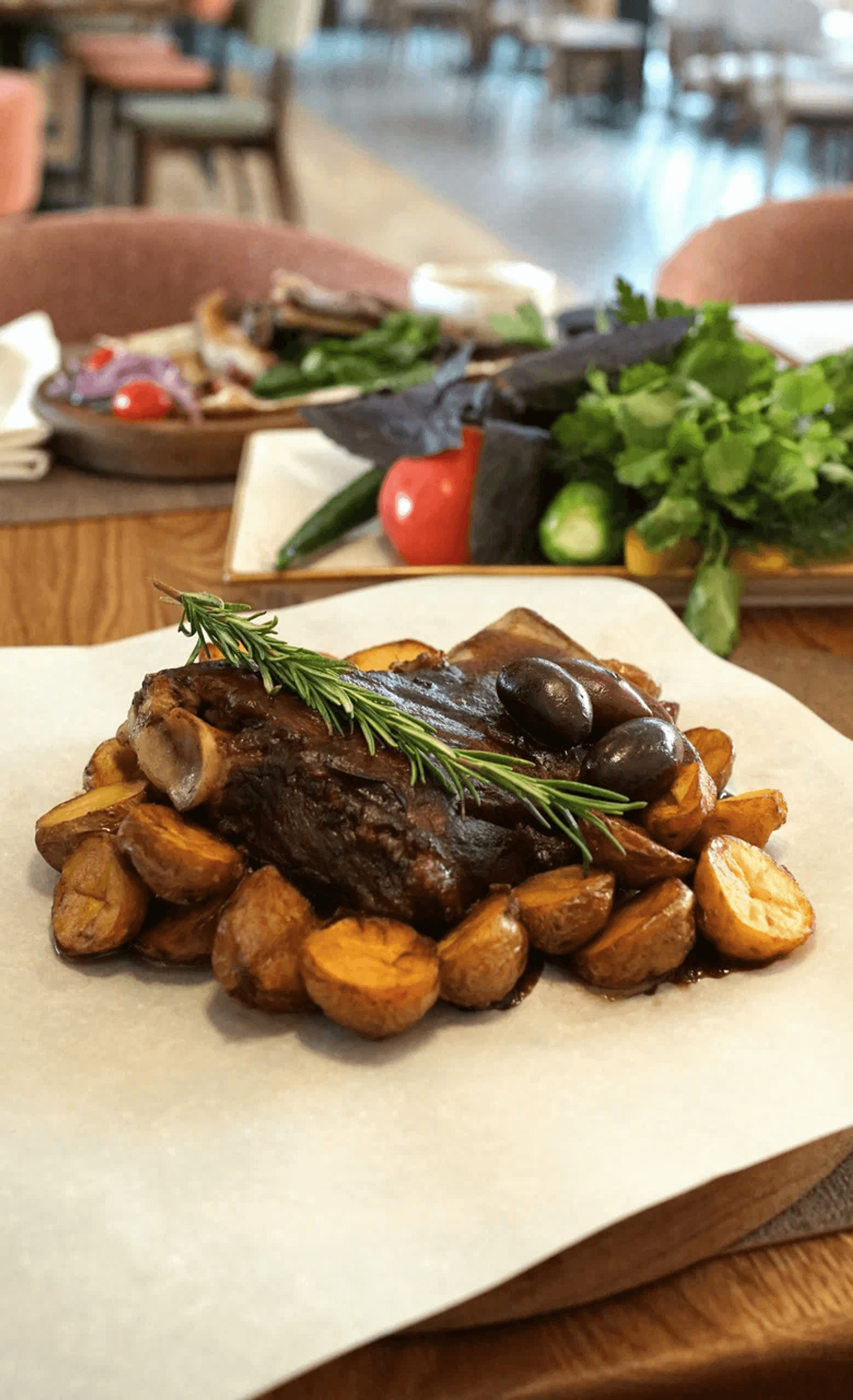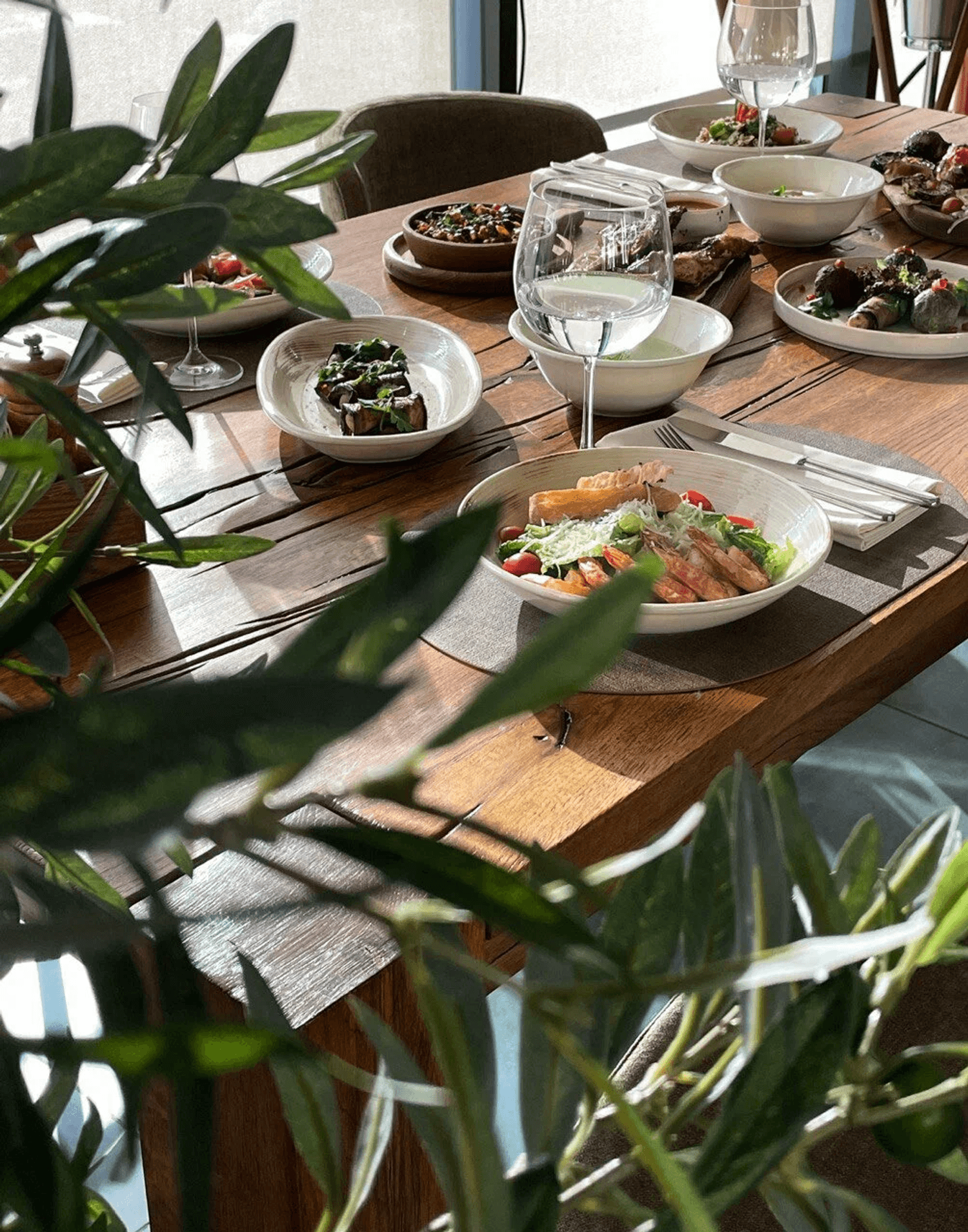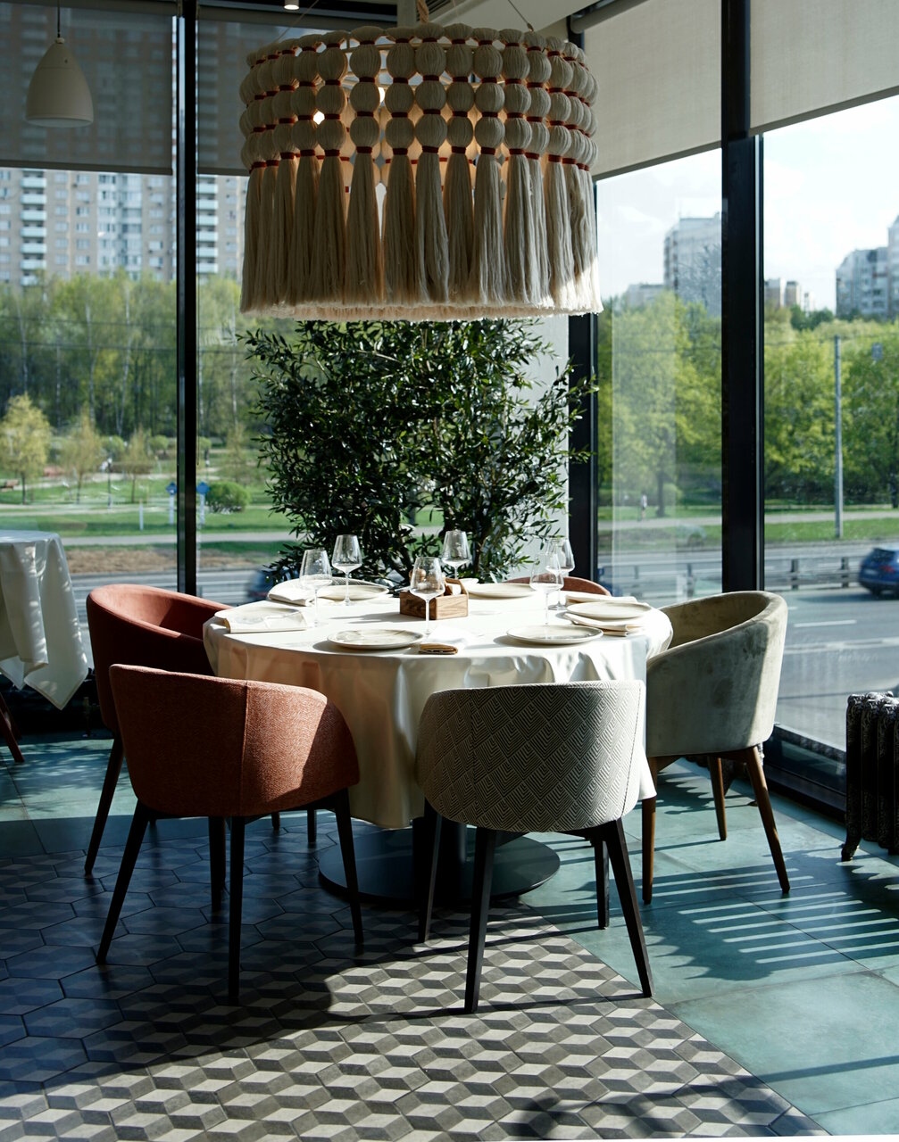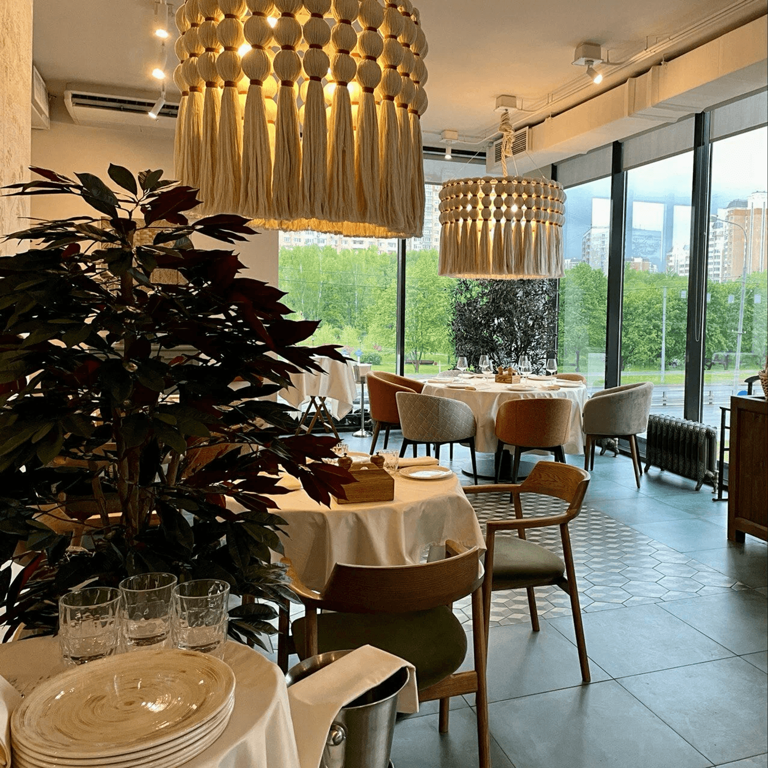Атмосфера. Интерьер сочетает сдержанную европейскую эстетику с яркими грузинскими деталями: деревянные балки, орнаменты и обилие зелени создают теплую, по-домашнему уютную обстановку. Пространство с мягкими диванами и отдельными зонами подходит как для камерных встреч, так и для масштабных праздников.