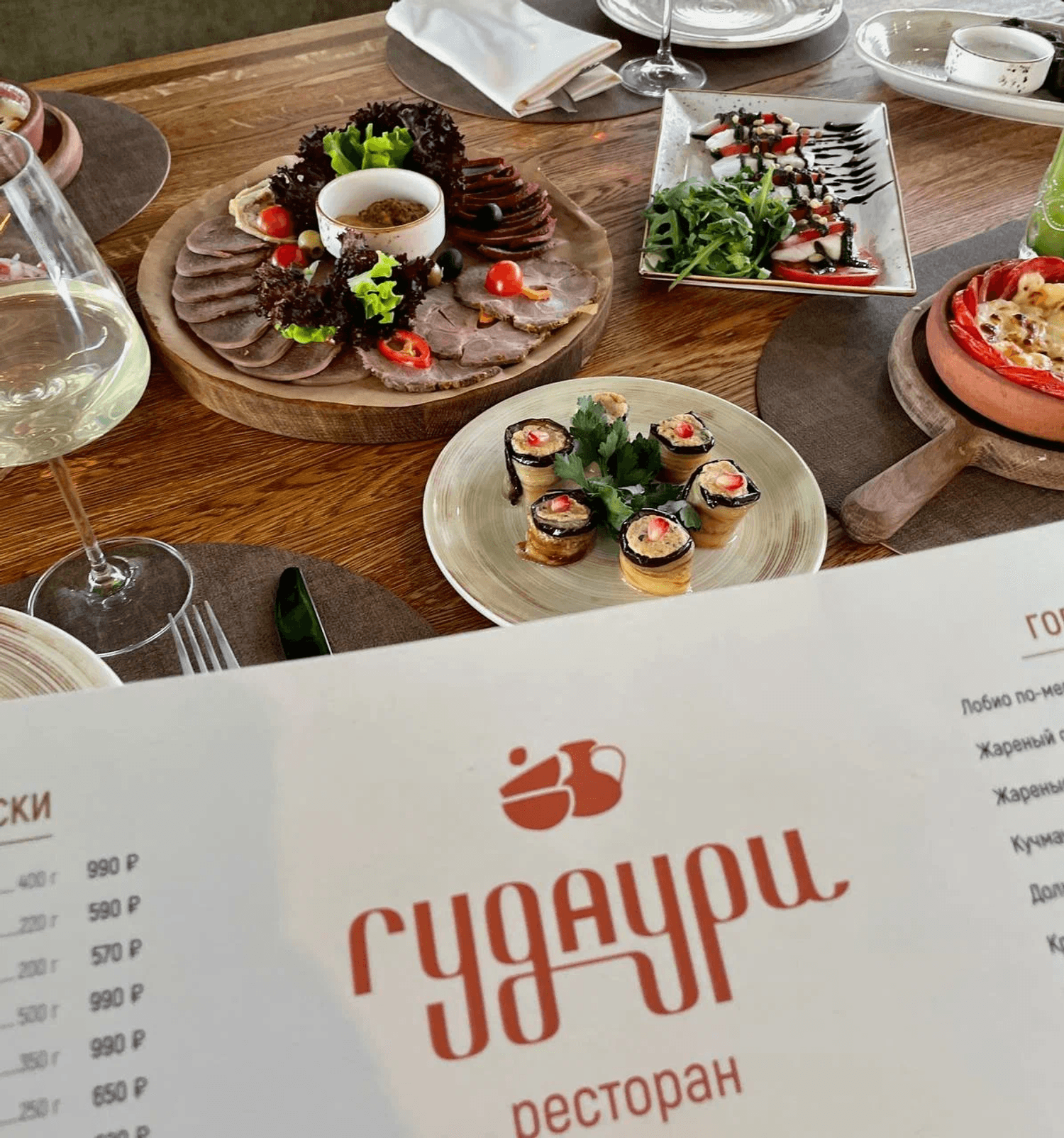 Еда и напитки. В меню — беспроигрышная классика: хачапури-лодочки, сочные хинкали, шашлыки из мяса и рыбы на мангале, а также лобио и пхали. Блюда готовят как по традиционным рецептам, так и в авторских интерпретациях. К трапезе идеально подойдут грузинские вина, авторские лимонады или крепкий кофе.