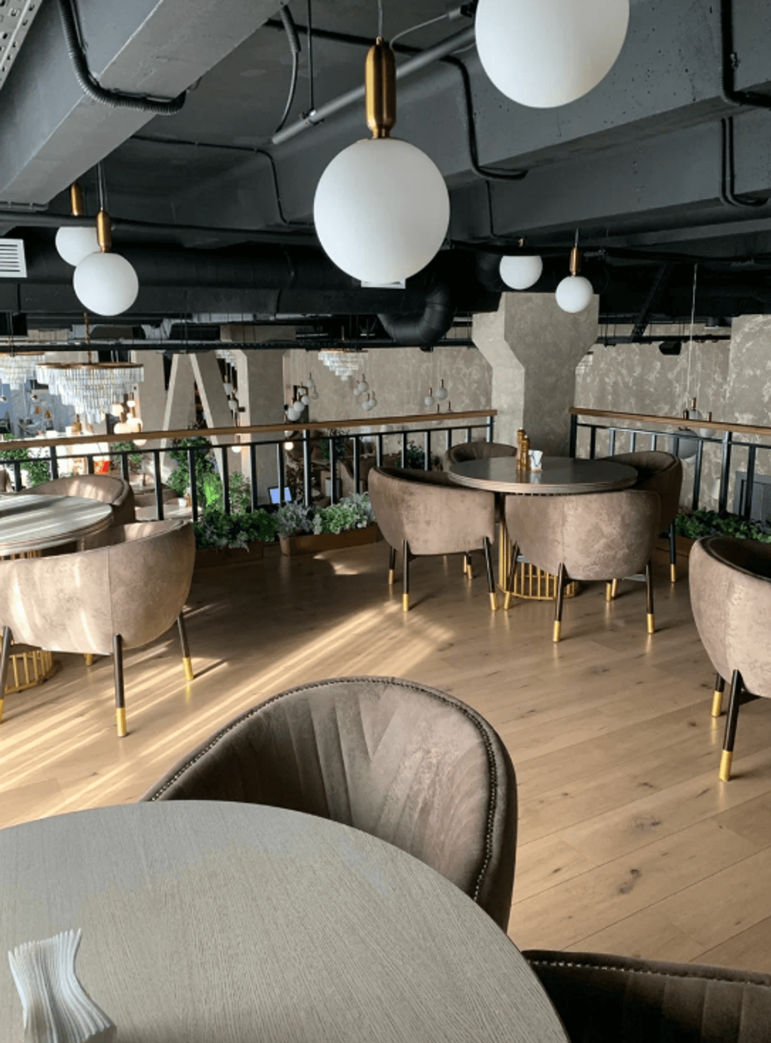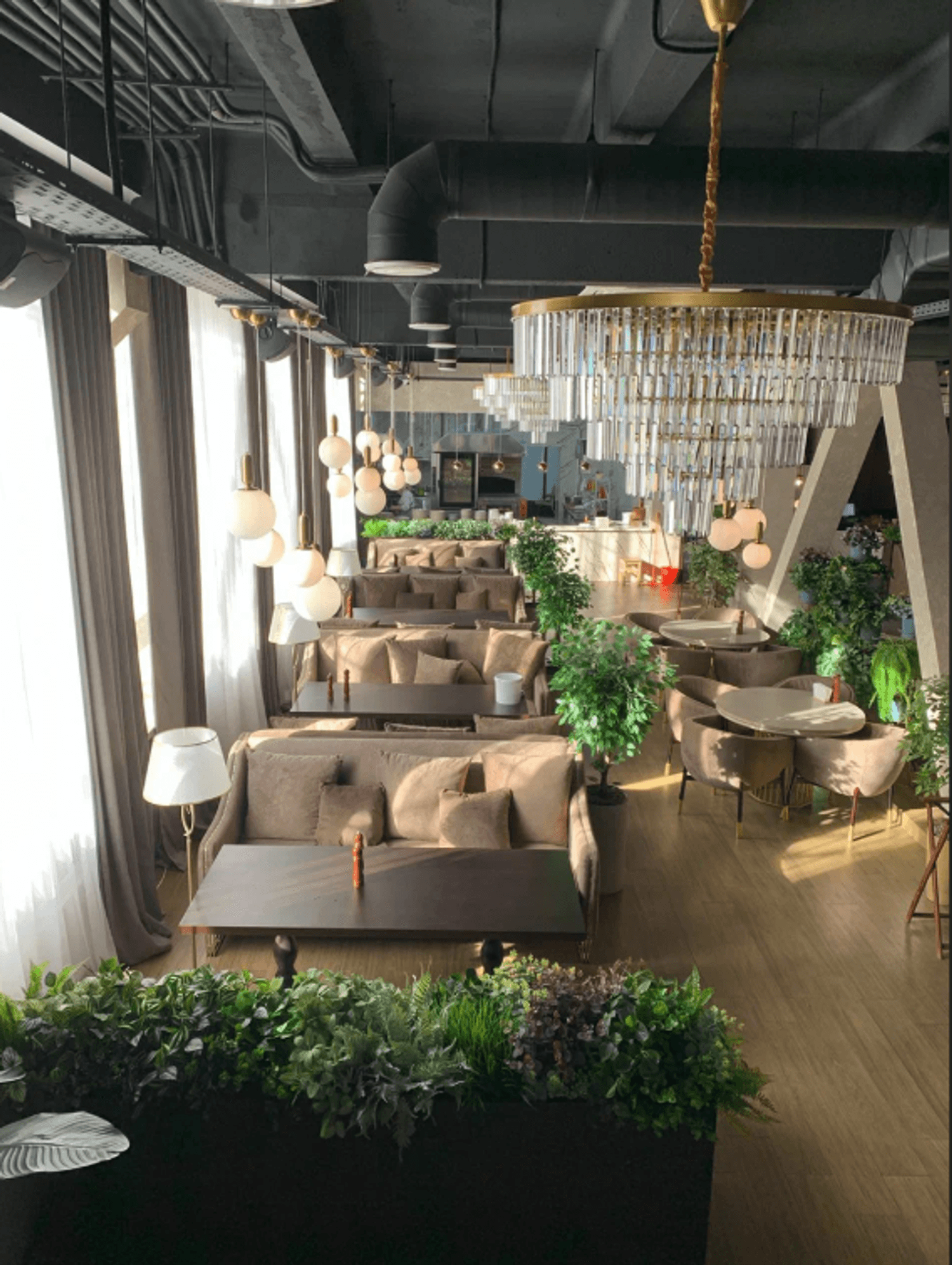 Атмосфера. Интерьер в современном стиле с восточными акцентами создает теплую и радушную обстановку. Мягкое освещение, теплые оттенки и уютная мебель делают пространство подходящим как для семейных обедов, так и для деловых встреч.