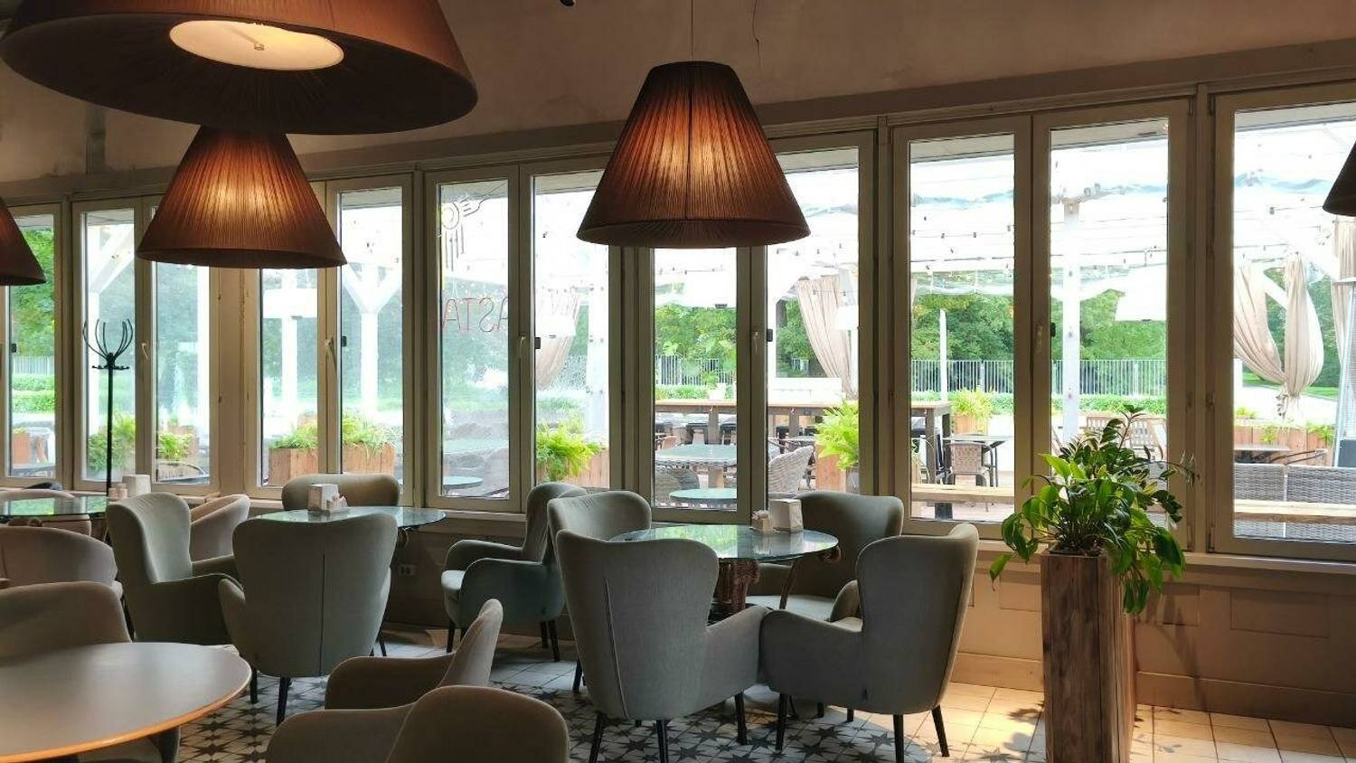 Атмосфера. Интерьер воссоздает атмосферу итальянской траттории через теплую цветовую гамму, деревянную мебель и уютное освещение.
