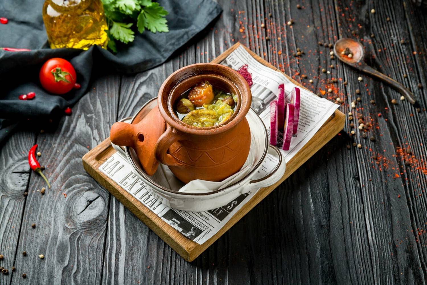 Еда и напитки. В меню — классические блюда кавказской кухни: салат по-деревенски, жюльен с креветками, буглама с бараниной, овощная долма, жаркое из свинины, хинкали по-грузински, курица в соусе терияки. Здесь готовят шашлык не только из мяса, но и грибов, баклажанов, семги. На десерт приносят бакинскую пахлаву и шоколадный чизкейк.