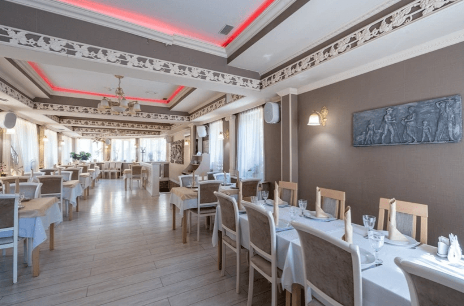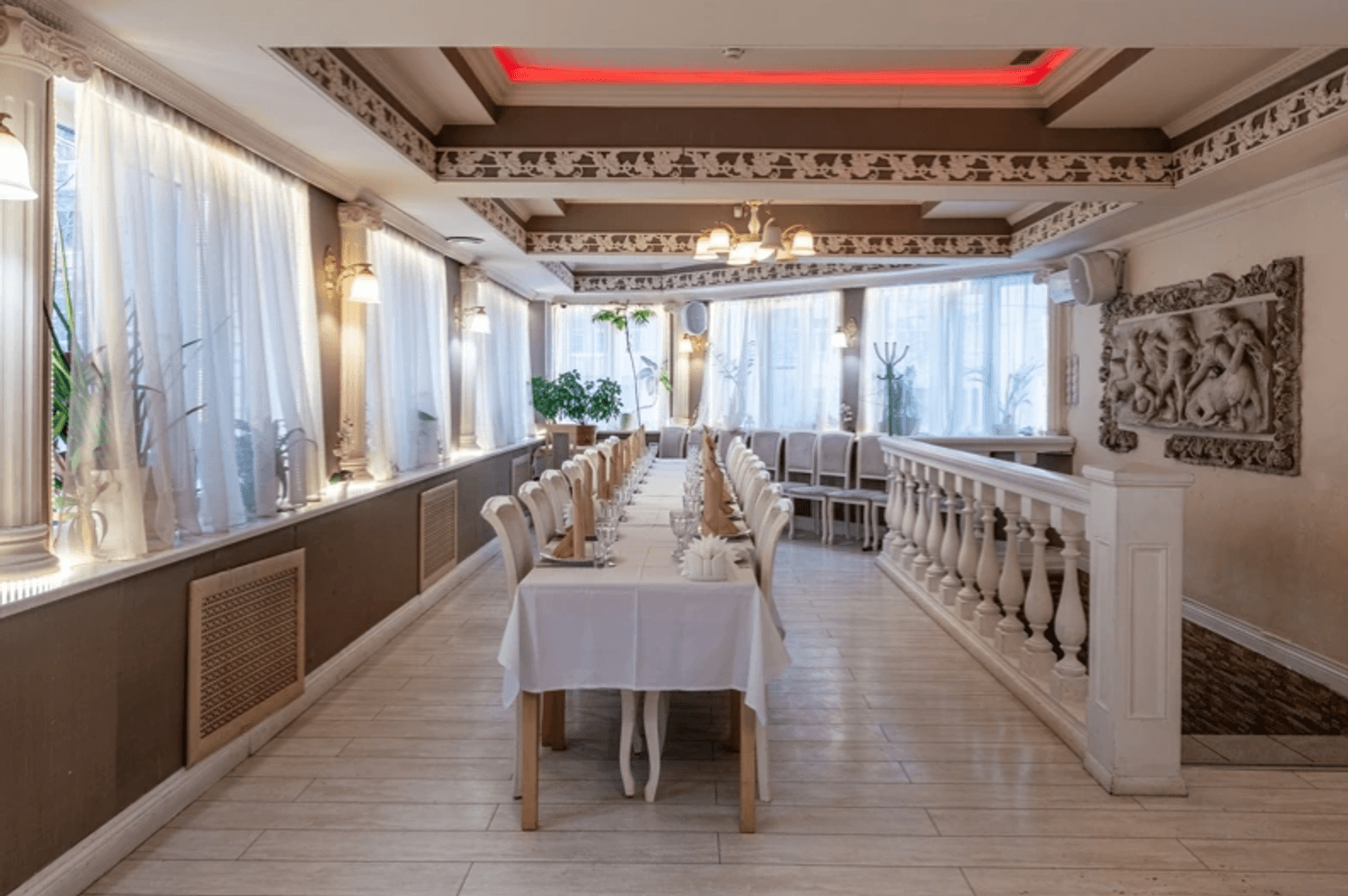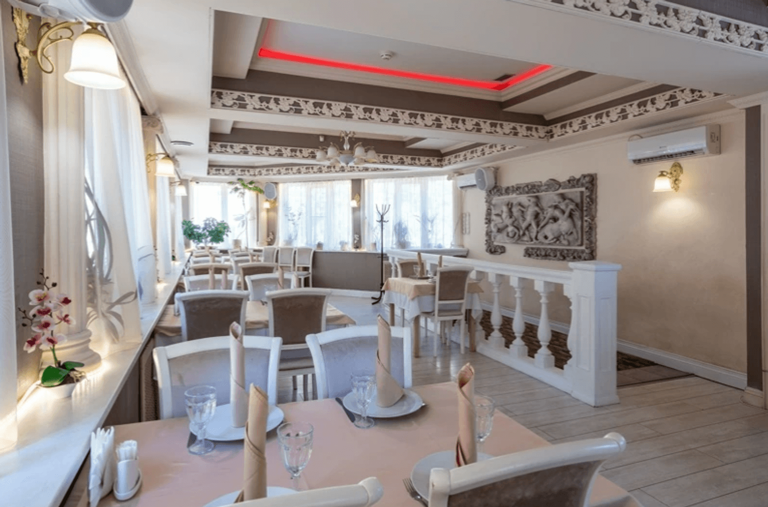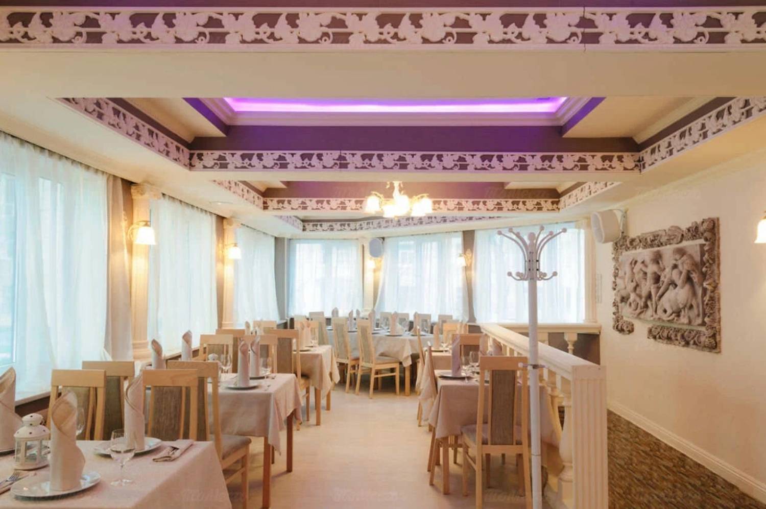 Атмосфера. Светлый зал в пастельных тонах сочетает в себе комфорт и уют, а продуманный интерьер и традиционный кавказский колорит создают атмосферу настоящего грузинского застолья.