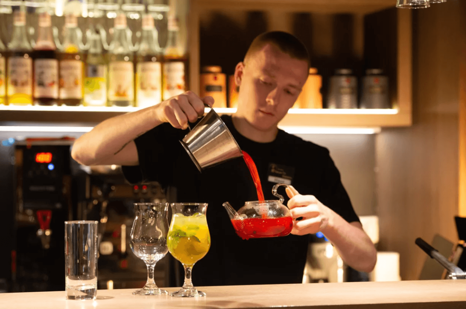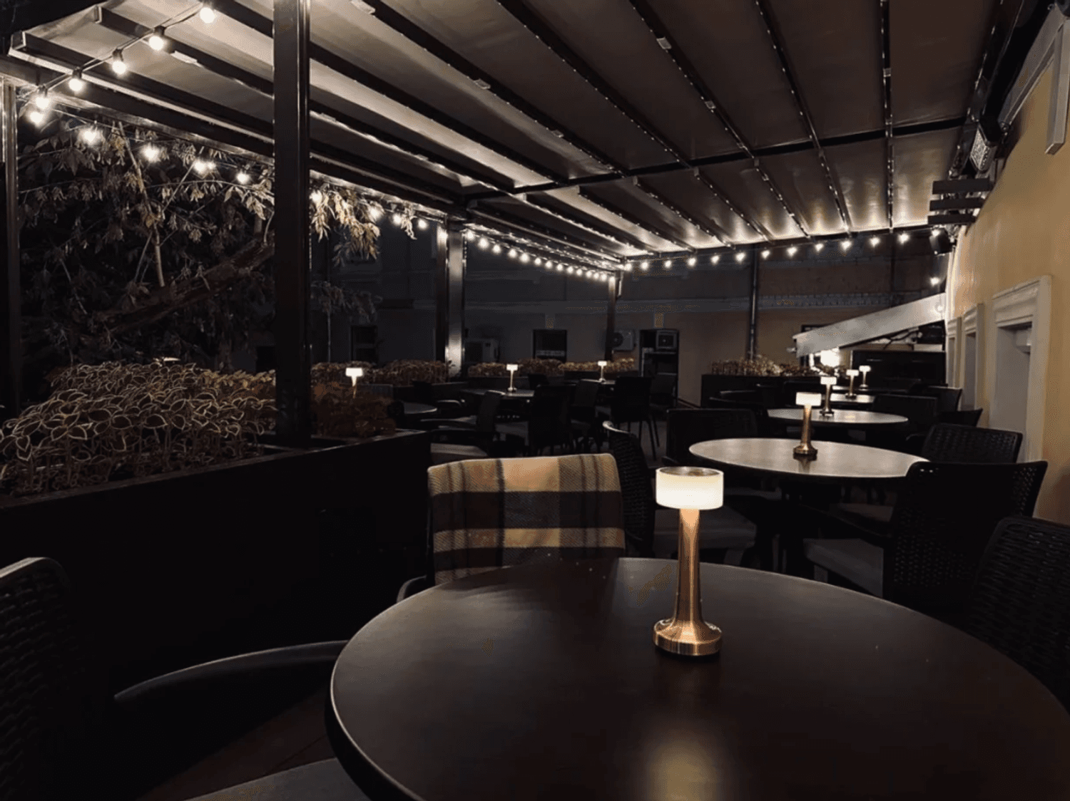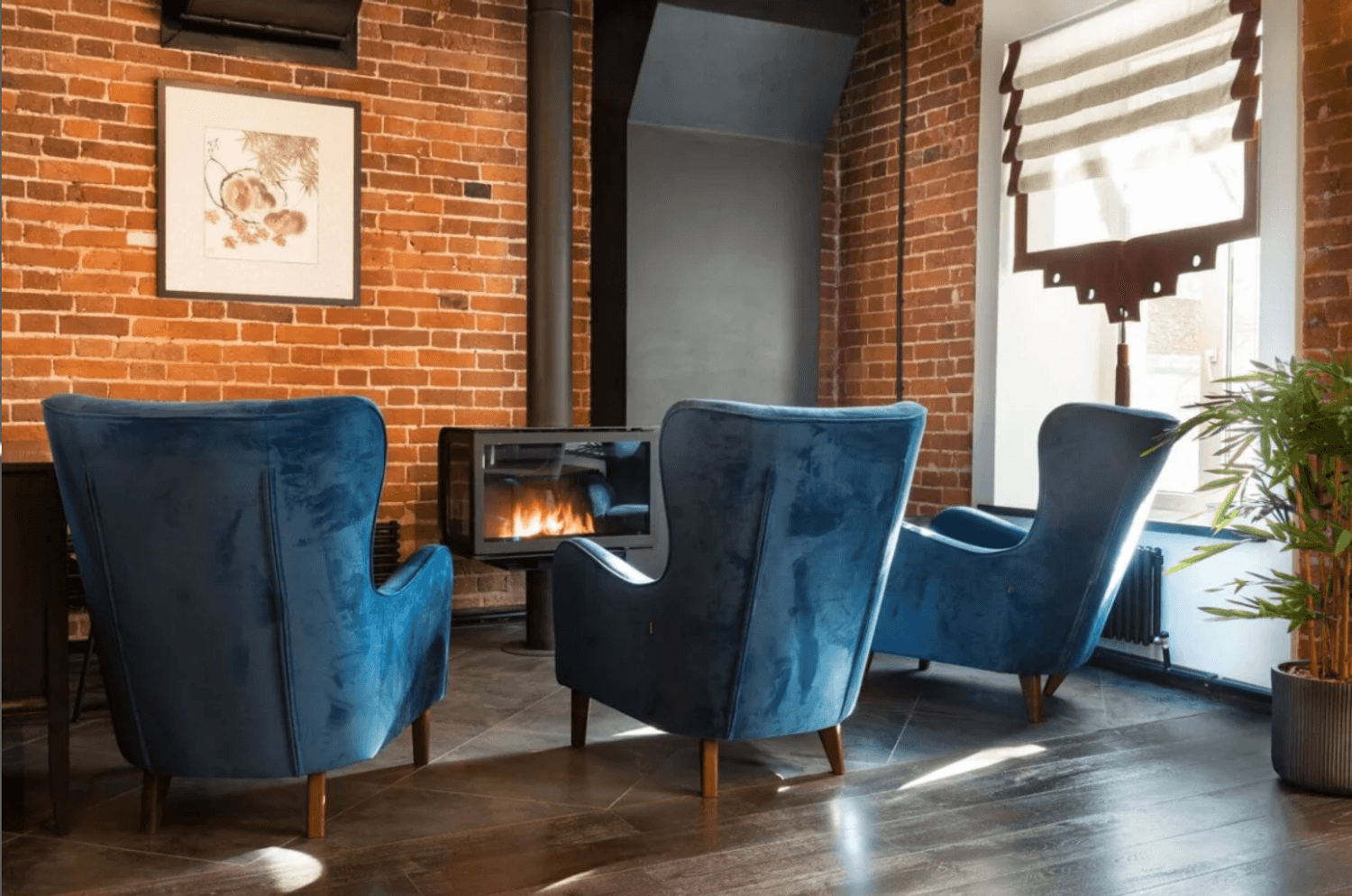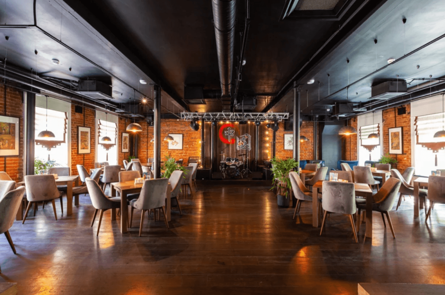 Атмосфера. В пространстве сочетаются кирпичные стены, уют от камина, мягкие кресла и классические вращающиеся столы, которые добавляют аутентичности обстановке. В теплое время года открывается веранда, а для мероприятий предусмотрен отдельный вип-зал с профессиональным светом и звуком.