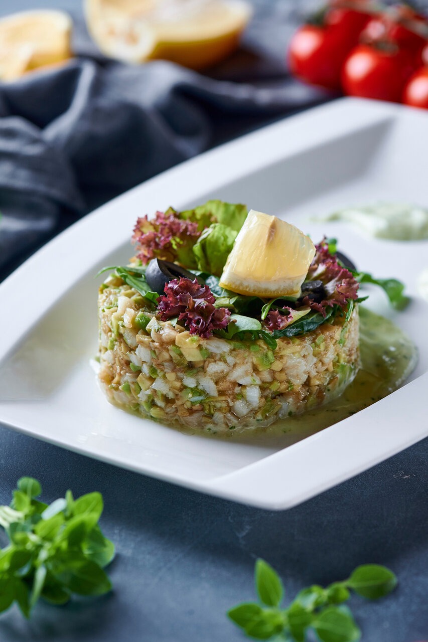 Еда и напитки. В меню — манты по-андижански, каре ягненка, стейк из свинины, стейк из палтуса на подушке из лука порея, фрикасе из лосося. В детском меню собрали куриные котлеты с пюре, наггетсы, кесадилья с курицей, оливье. На десерт террин, штрудель и сорбет.