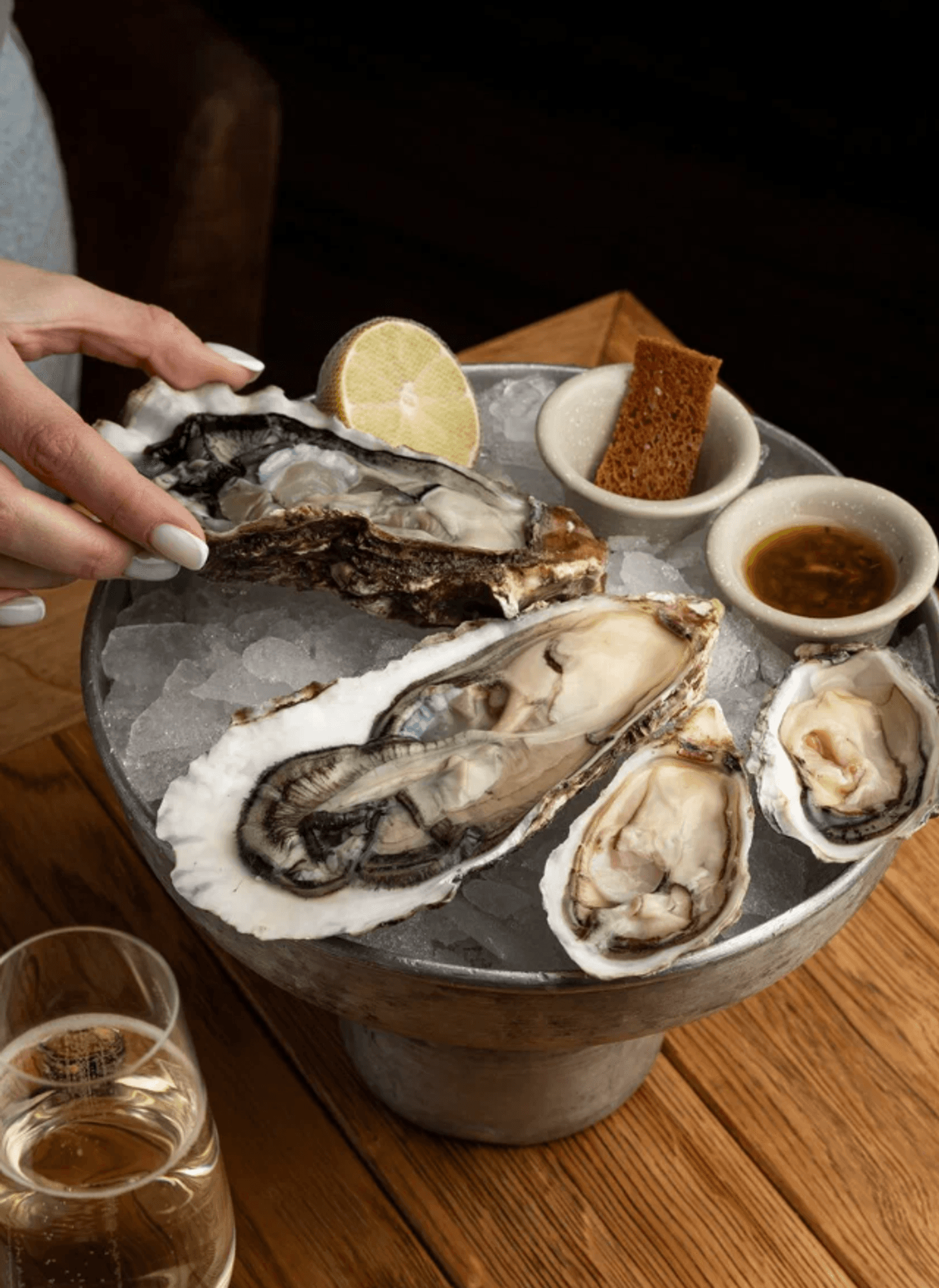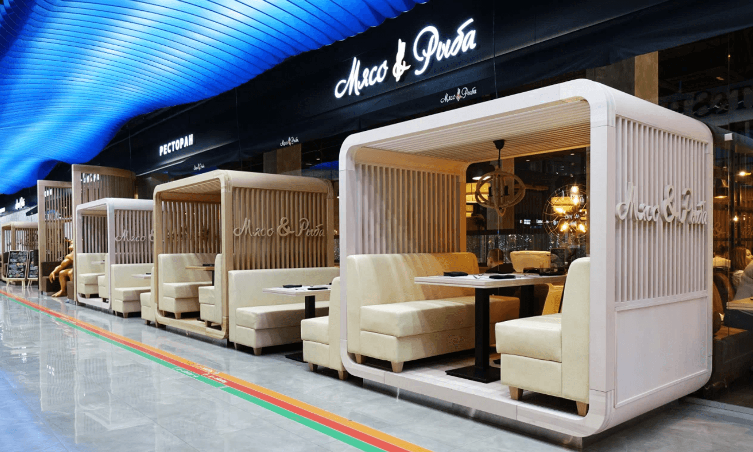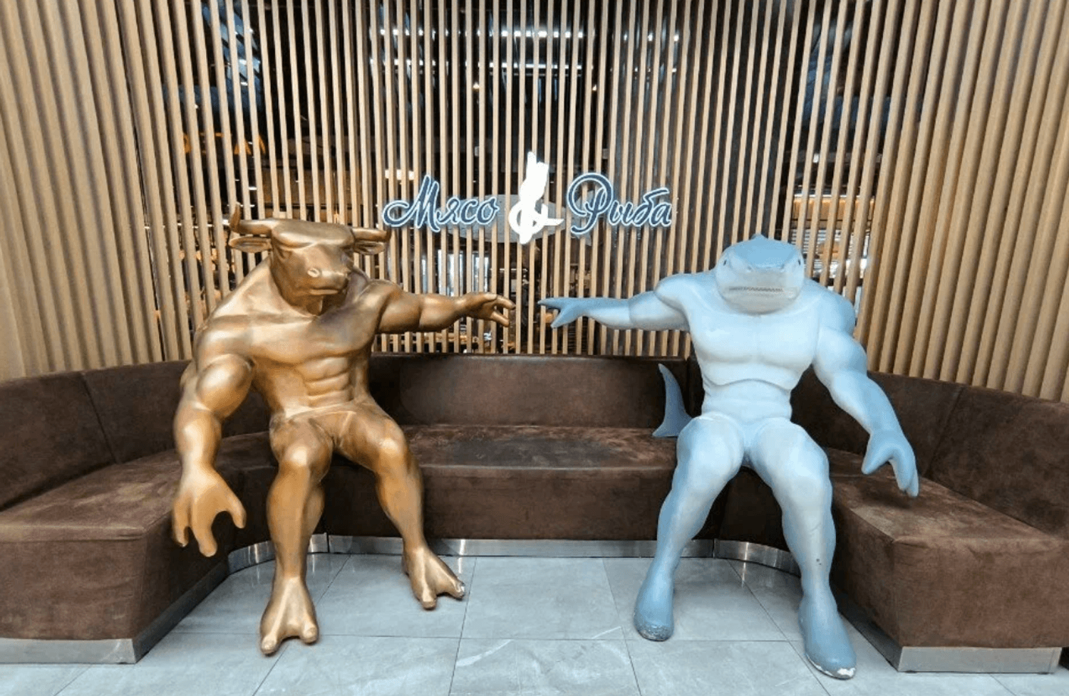 Еда и напитки. В меню — блюда из отечественной говядины зернового откорма, а также морепродукты с Камчатки, из Якутии и Мурманска. Здесь подают жареную, запеченную и приготовленную на пару рыбу, маринованные закуски и стейки. Среди позиций — стейк из говядины Black Angus, свежий кижуч с Камчатки, севиче, а также богатая винная карта с более чем 200 наименованиями, включая редкие коллекционные сорта.