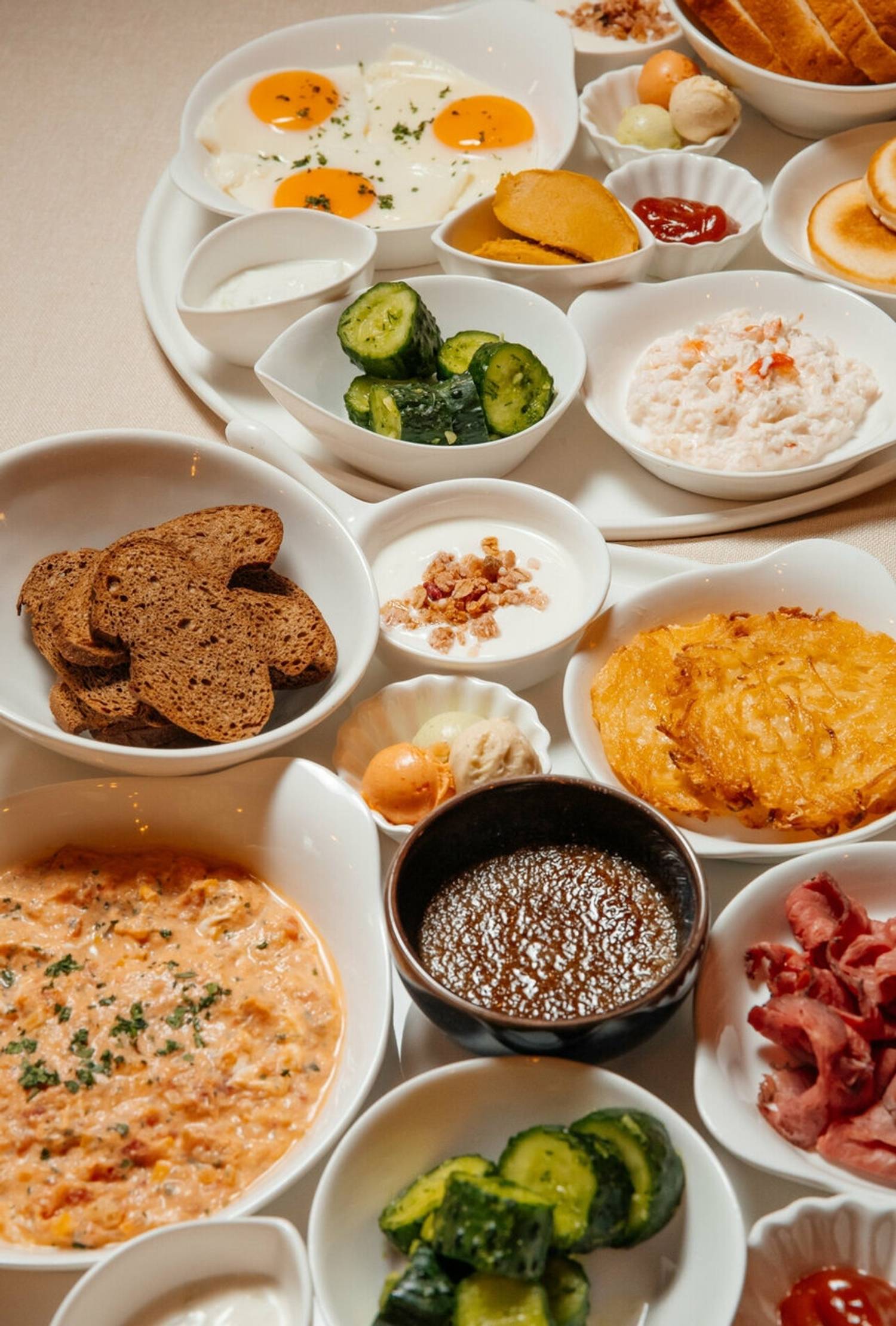 Еда и напитки. В меню — стейки из отечественной мраморной говядины и морепродукты из северных регионов, которые готовят на пару, гриле или запекают. Винная карта на 200+ позиций включает коллекционные экземпляры, специально подобранные к блюдам из мяса и рыбы.