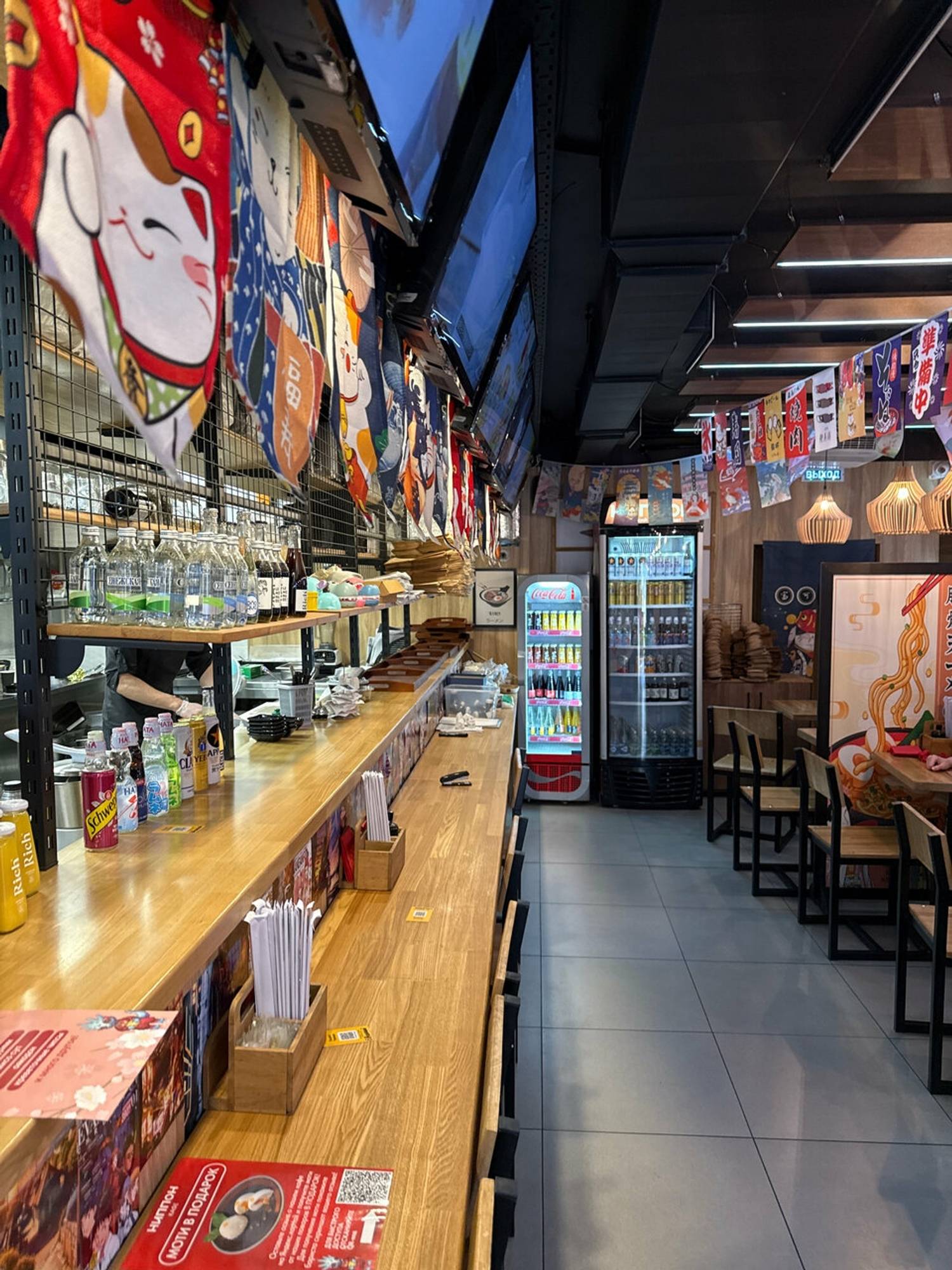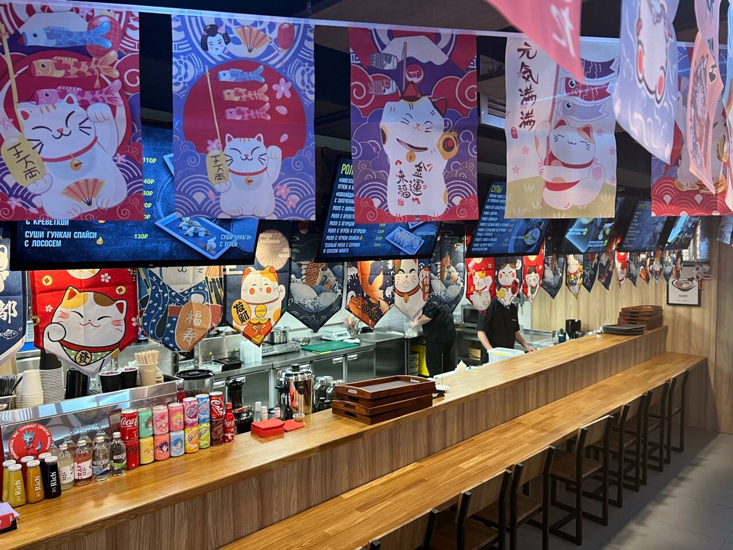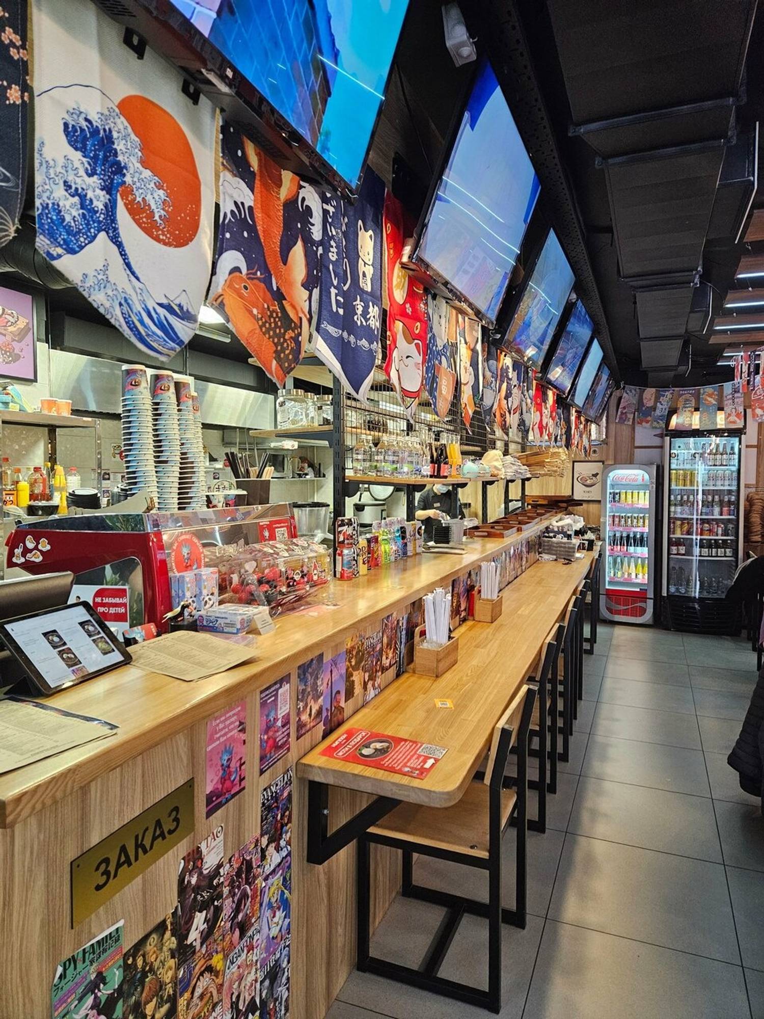 Еда и напитки. Основу меню составляют разнообразные рамены: от классического мисо-супа до пряных вариантов по-сычуаньски или насыщенного тонгкацу. Суши и роллы готовят с акцентом на свежесть морепродуктов, предлагая как традиционные сочетания, так и авторские, вроде теплого ролла «Киото» с угрем. Отдельного внимания заслуживают поке с лососем и горячие закуски, такие как курица «Карааге» или тофу «Агедаши».