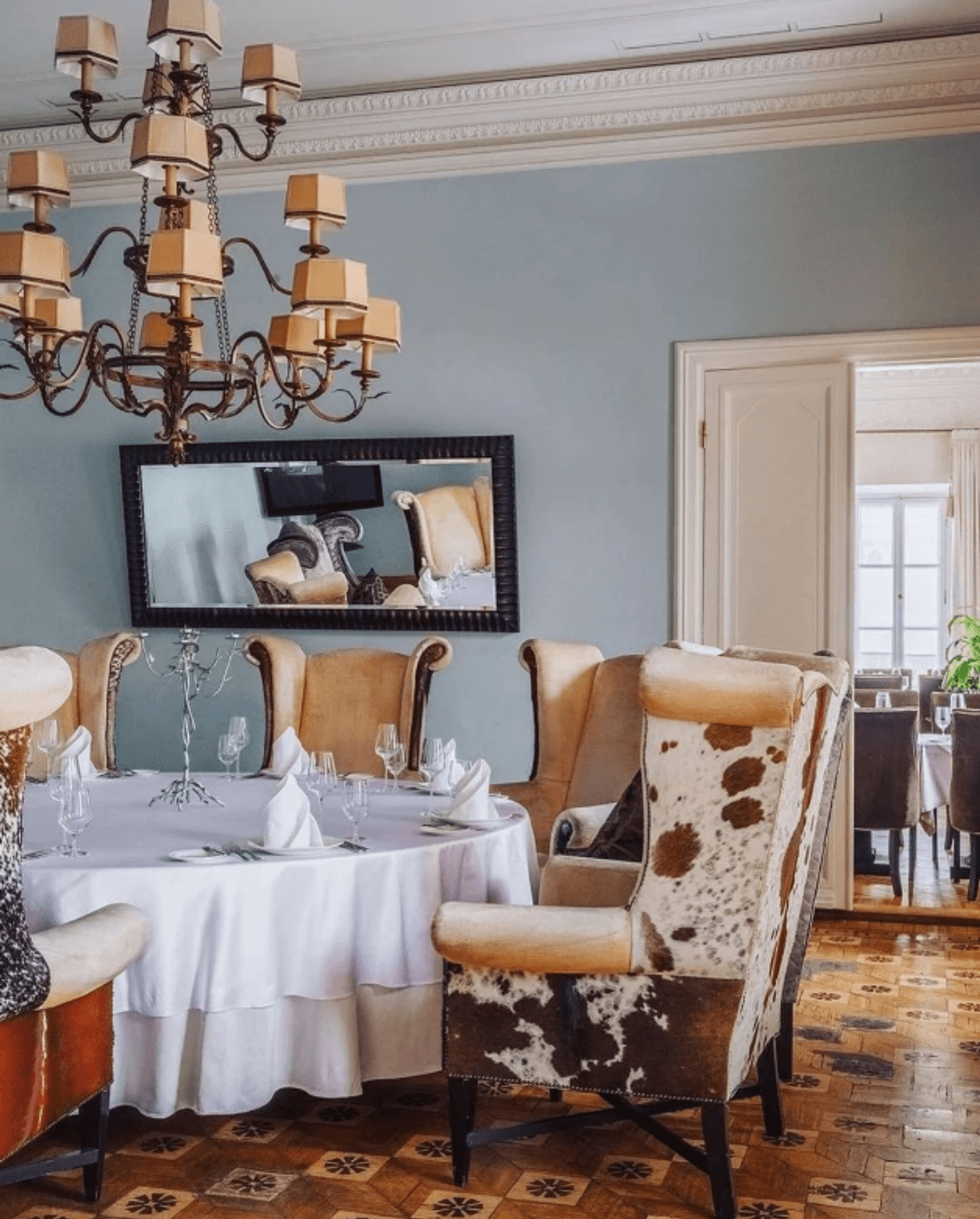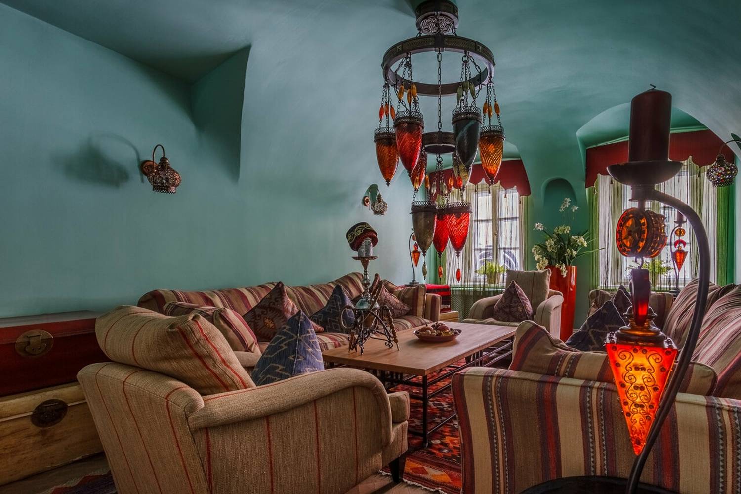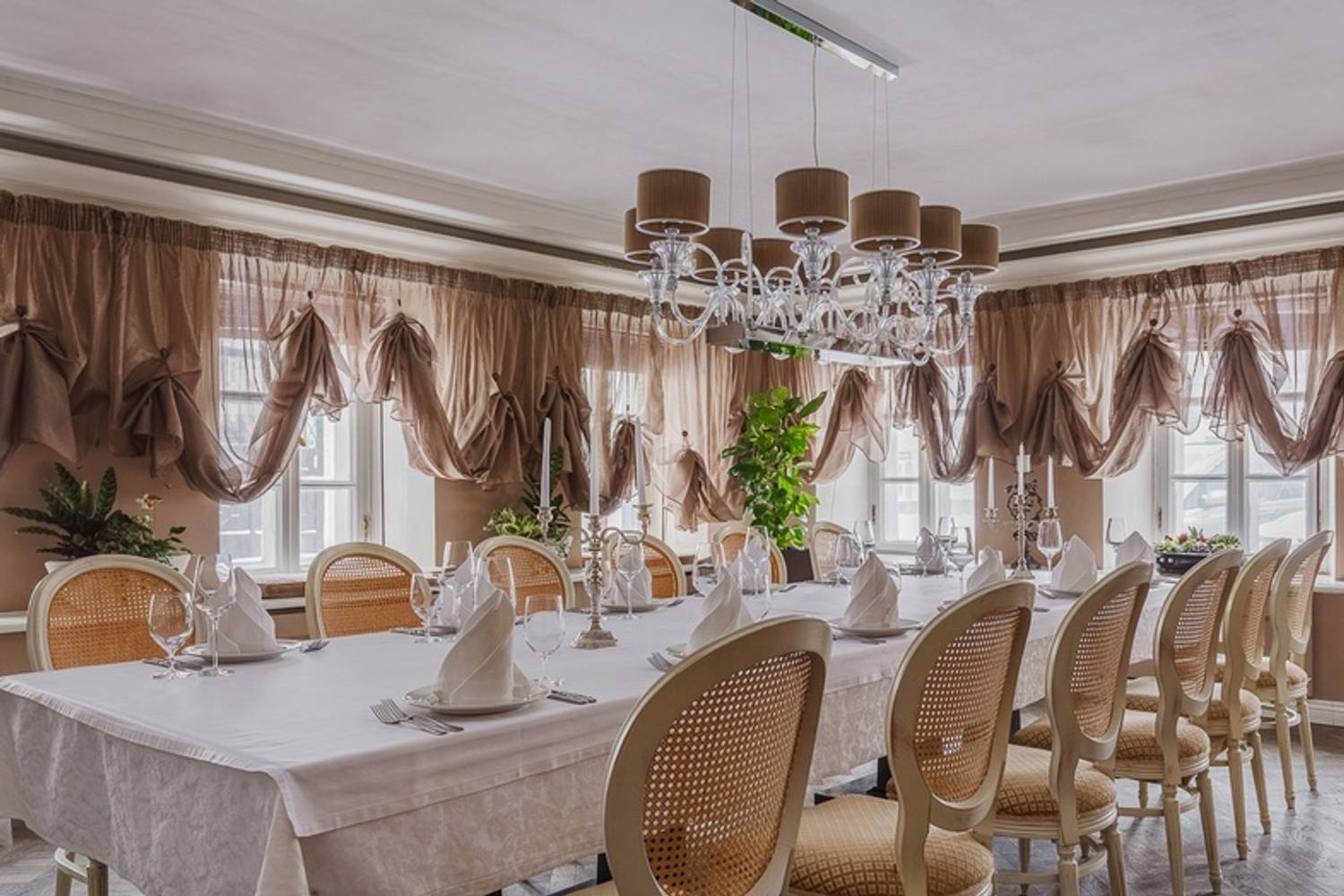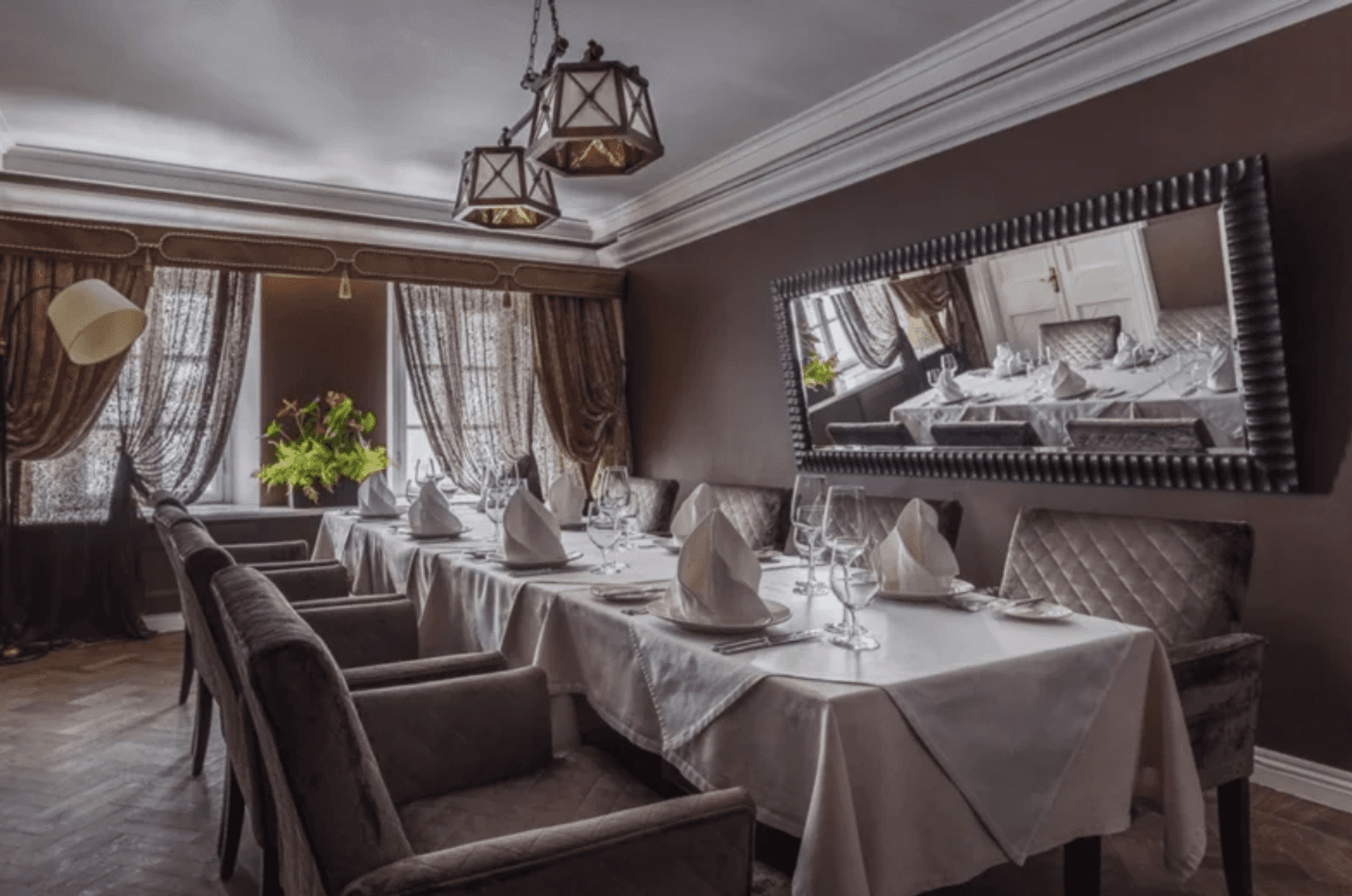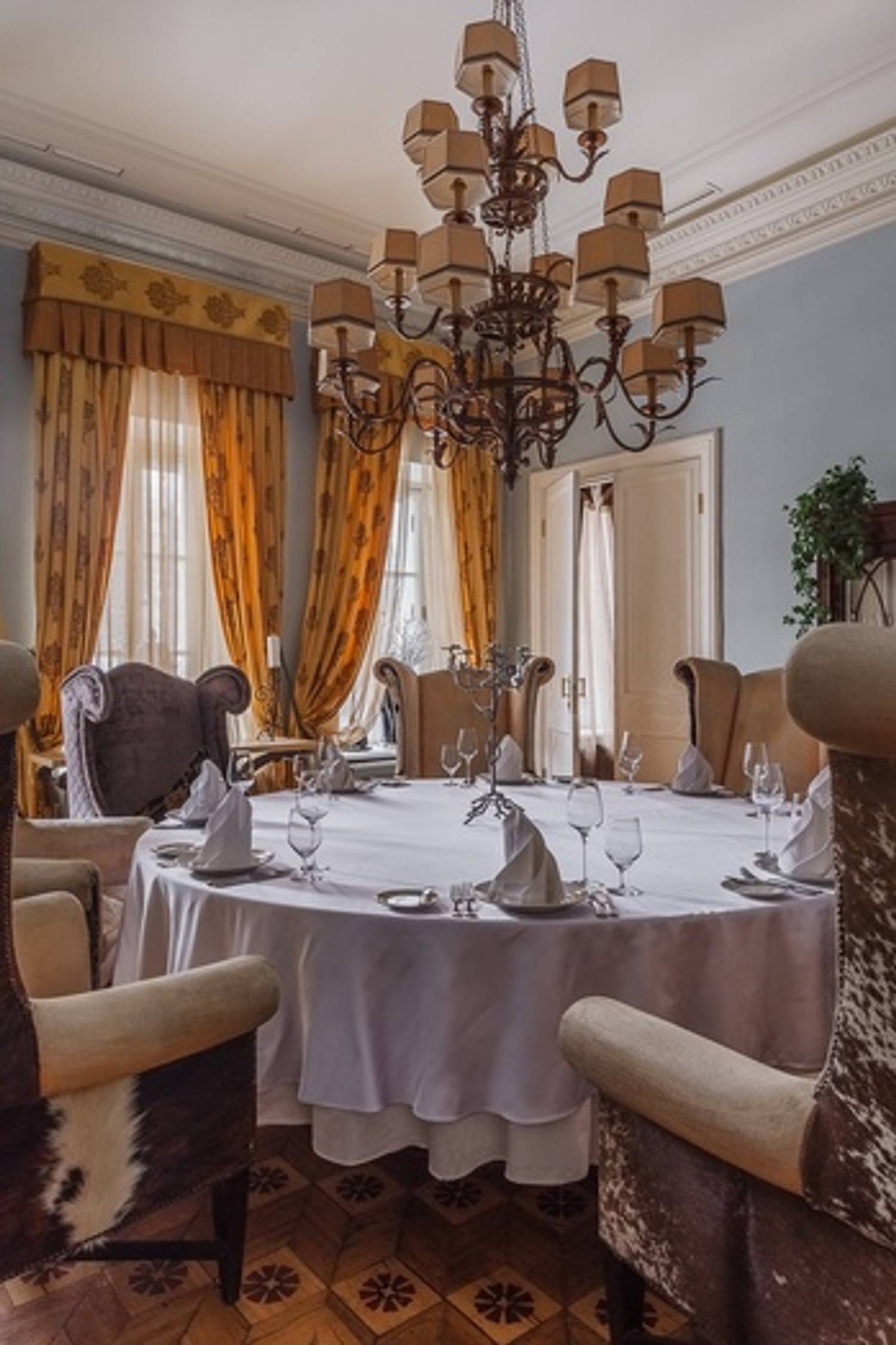 Атмосфера. В трехэтажном здании девять залов ресторана украшены дизайнерскими люстрами с позолотой, зеркалами в золоченых рамах, мебелью в стиле XIX века и фрагментами старинного паркета. По вечерам в ресторане проходят выступления цыганского ансамбля, джазовые концерты, караоке и танцевальные программы.
