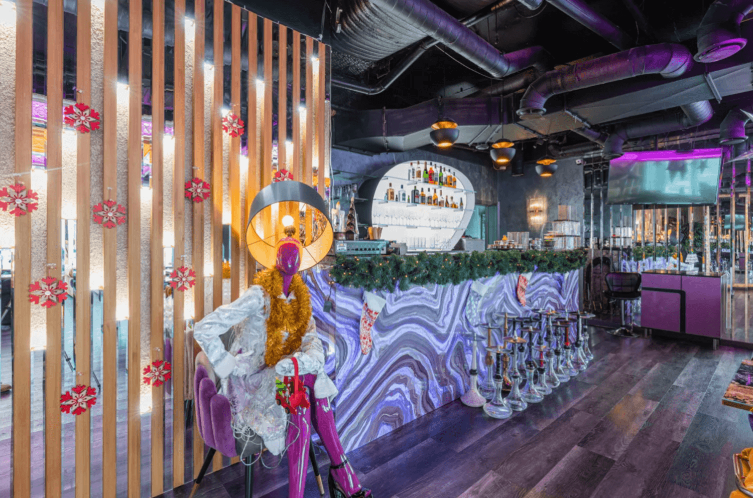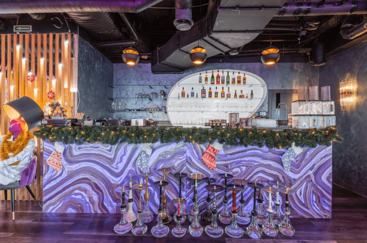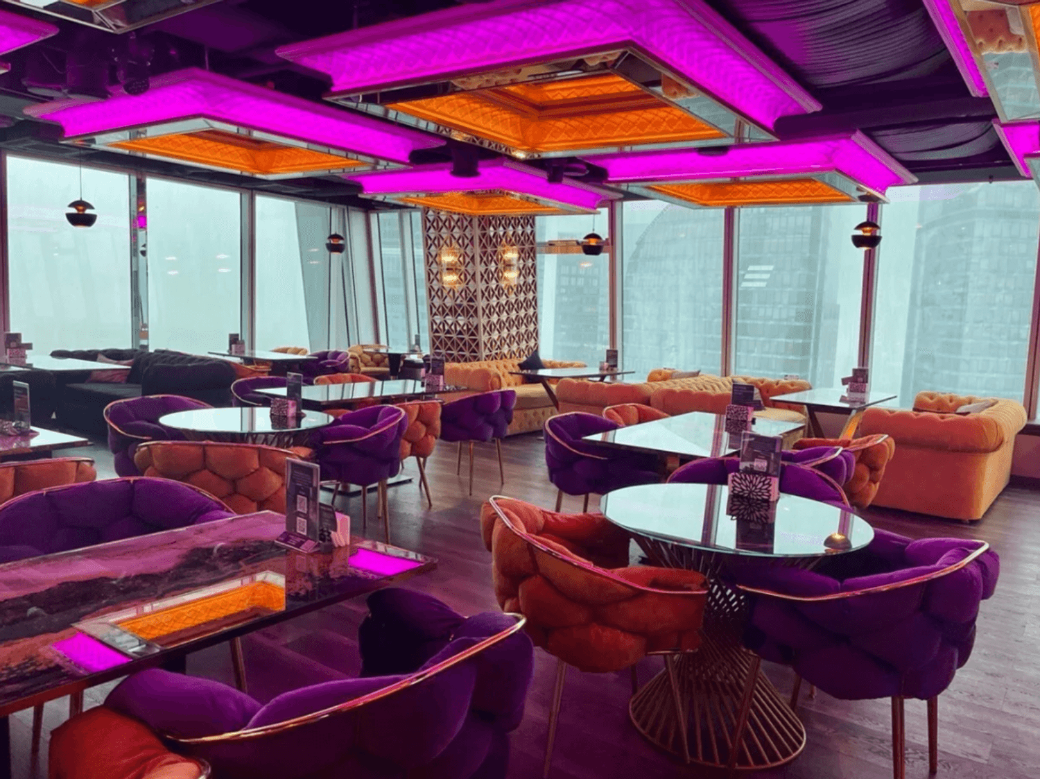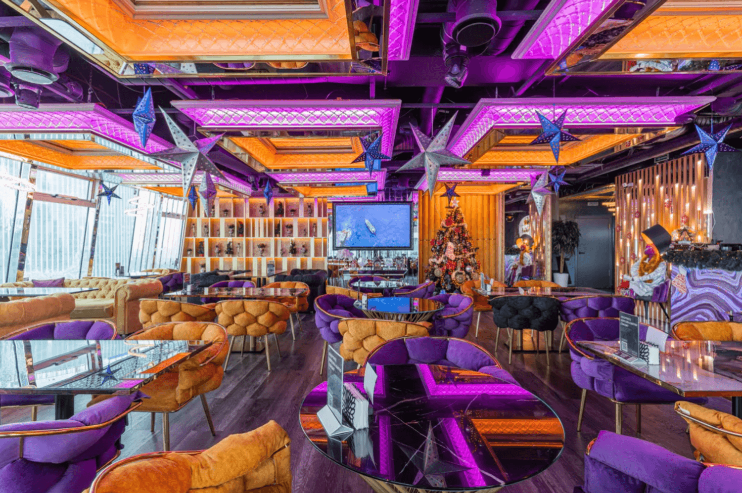 Атмосфера. Пространство с современным дизайном и панорамными окнами создает ощущение пребывания прямо над облаками. Стильная яркая мебель, продуманное освещение, вид на город и его огни — все это формирует ощущение того, что ты на вершине мира и вся Москва принадлежит тебе.