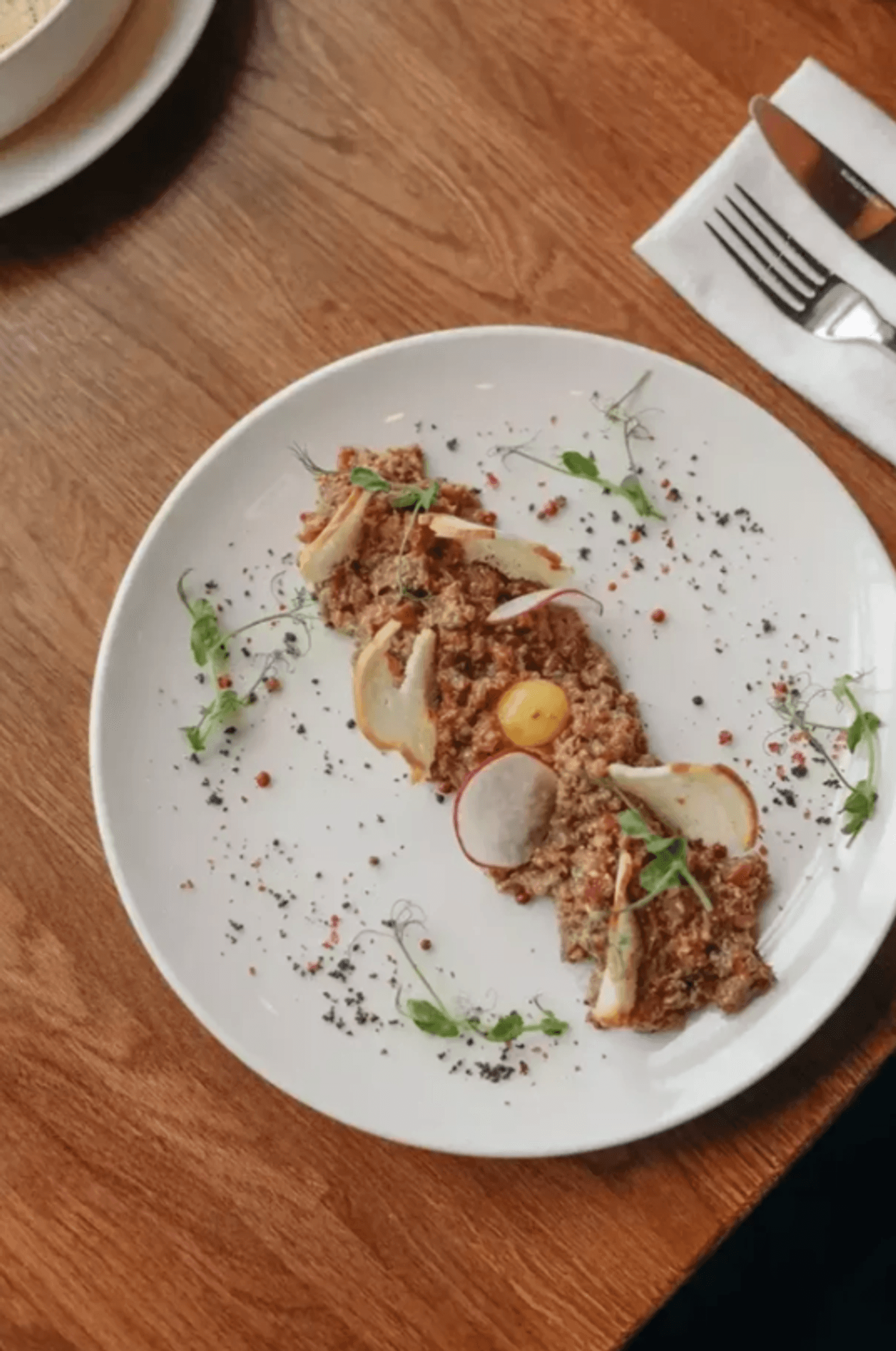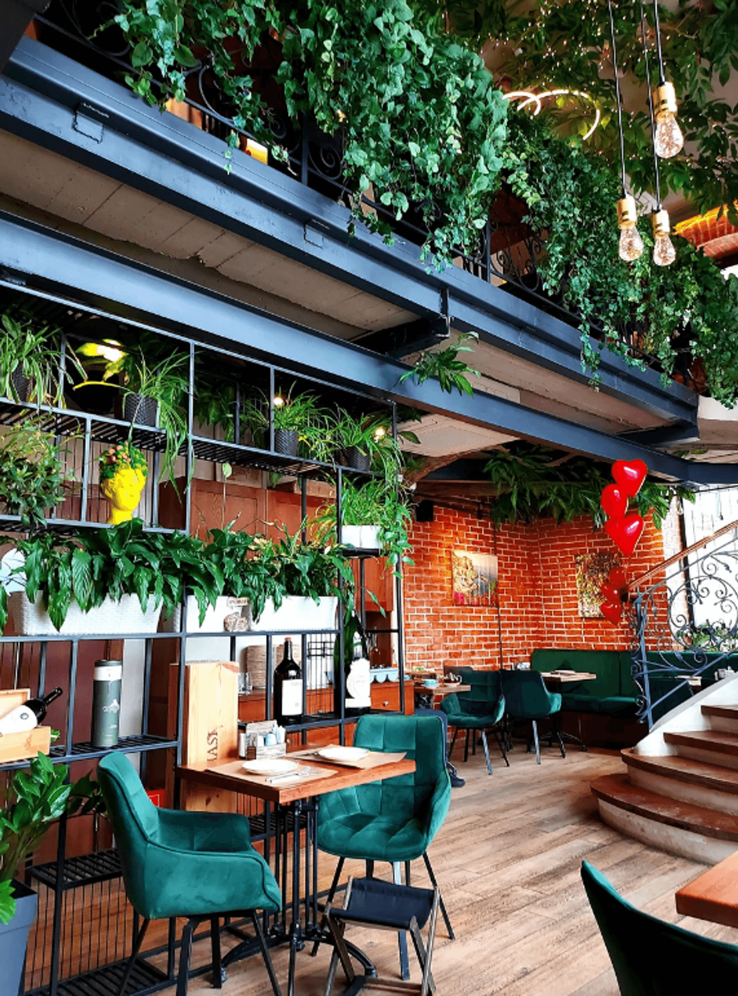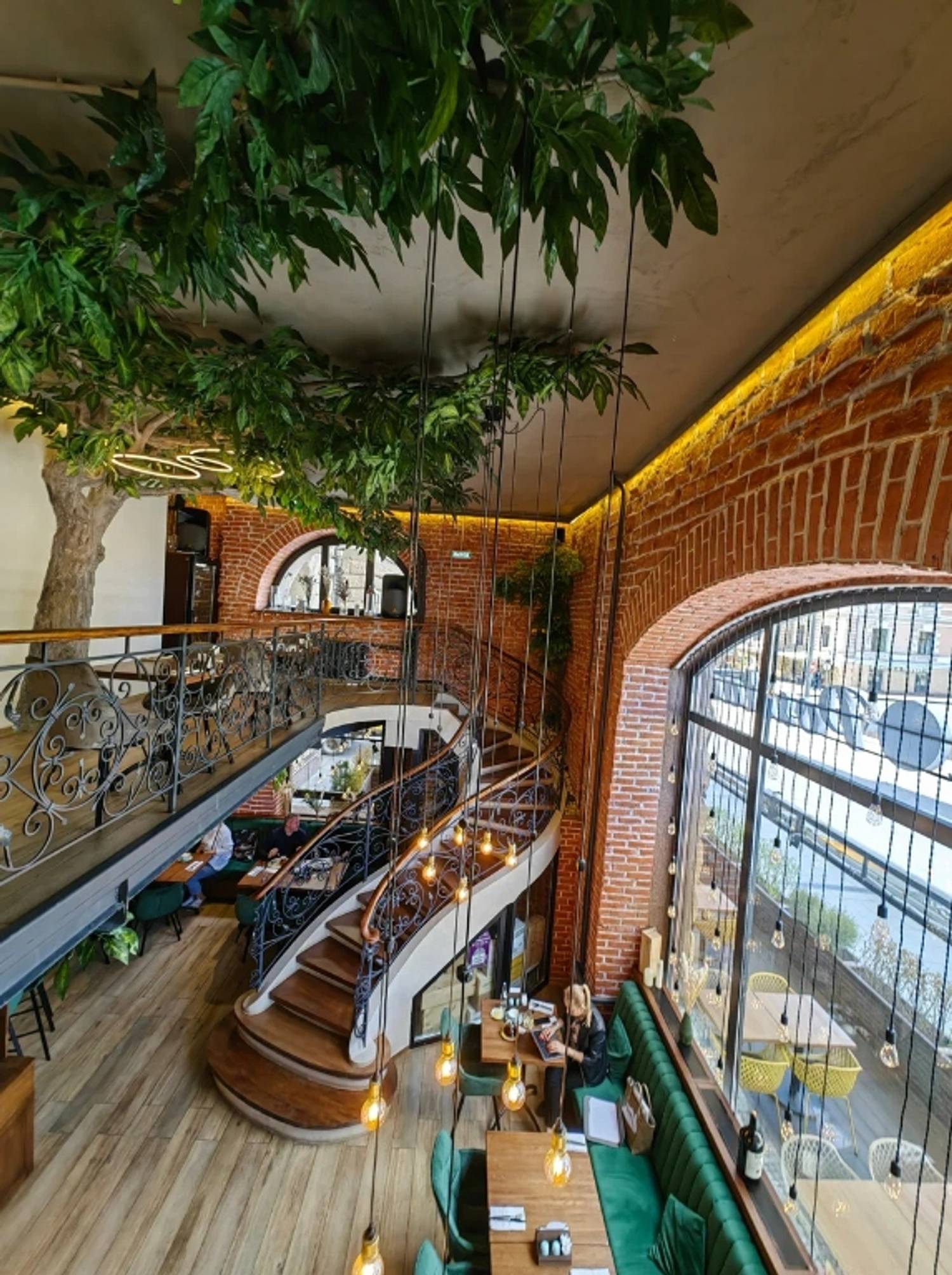 Атмосфера. Пространство с теплыми тонами и кирпичными стенами создает одновременно современную и камерную обстановку. Взгляд сразу притягивает лестница с резными перилами: она ведет на второй этаж, где можно уютно расположиться как за столиками на двоих, так и за большим общим столом. По вечерам пятницы и субботы здесь звучит живая музыка, усиливая ощущение того, что вы в Италии.